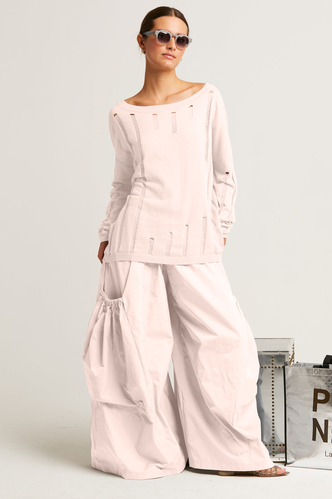 Pima Cotton Metallic Crochet Boatneck Sweater