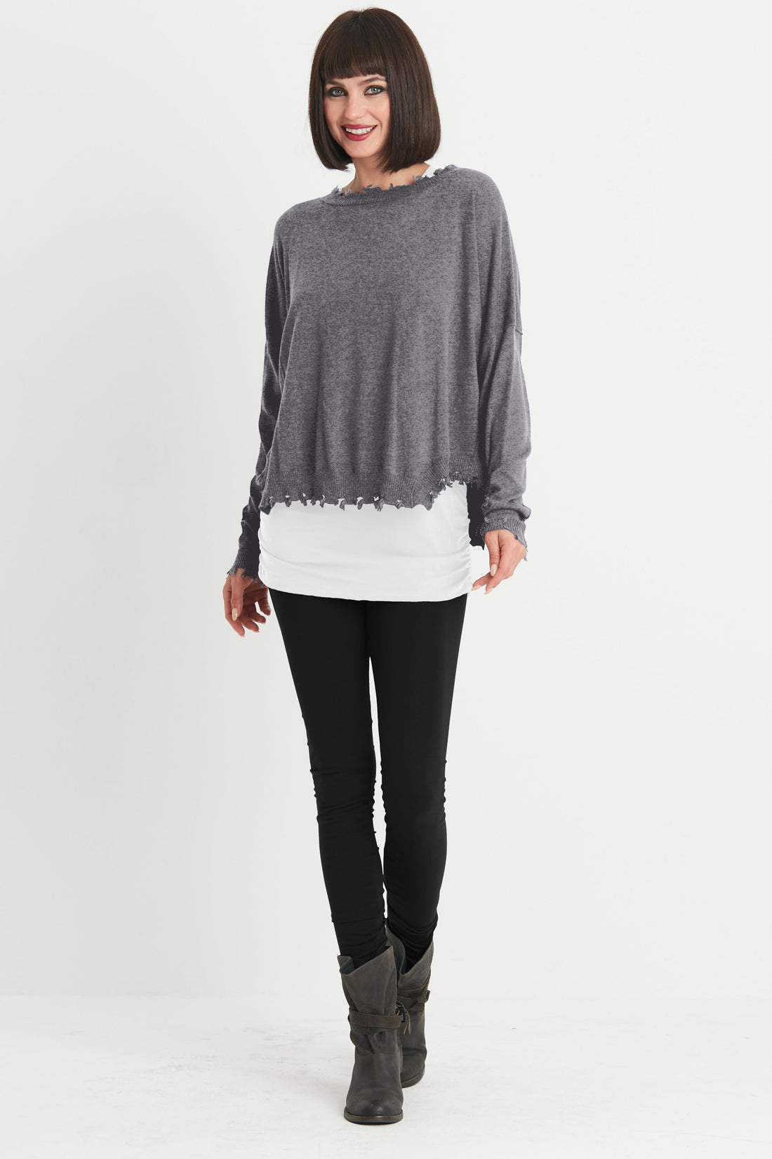 Pima Cotton Bled Out Tattered Crewneck Sweater