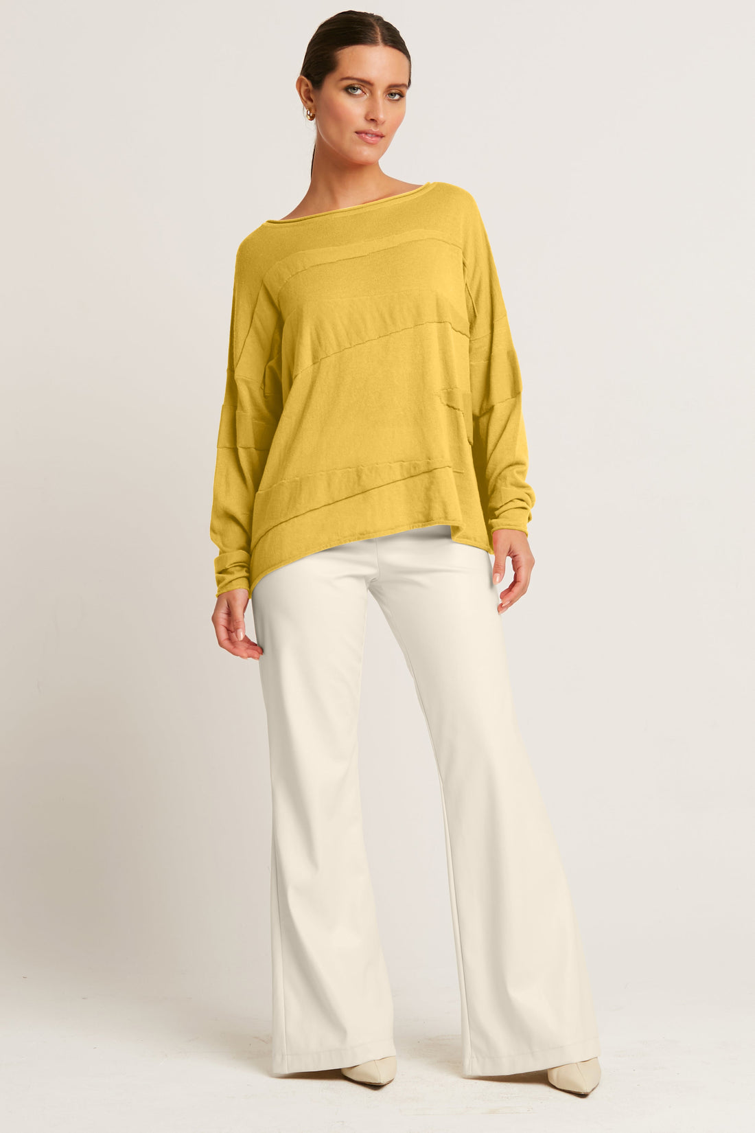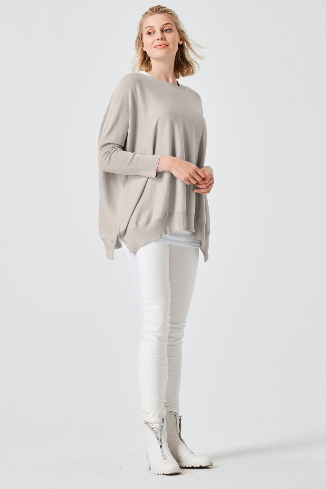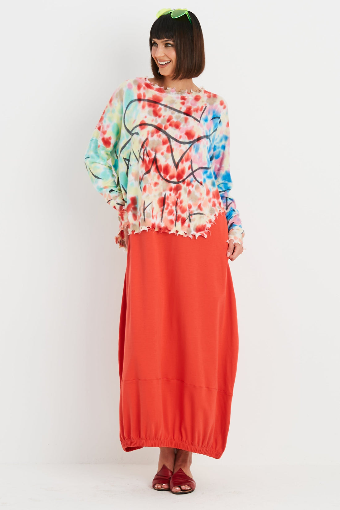 Pima Cotton Long Spray Can Tattered Crewneck Sweater