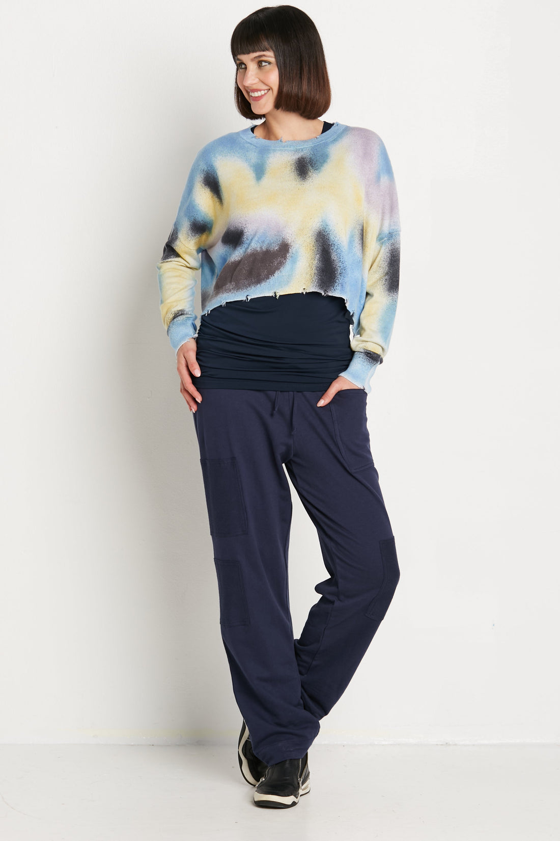 Pima Cotton Spray Can Tattered Crewneck Sweater