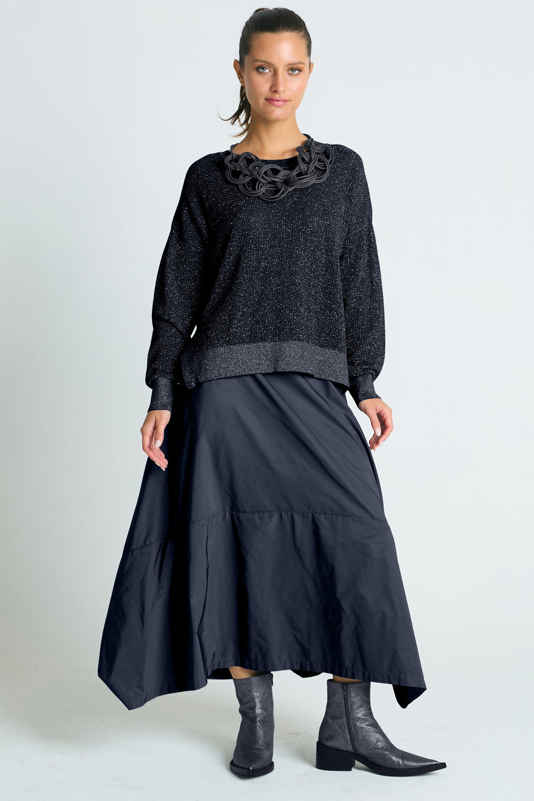 Pima Cotton Mini Foil Cable Crewneck Sweater