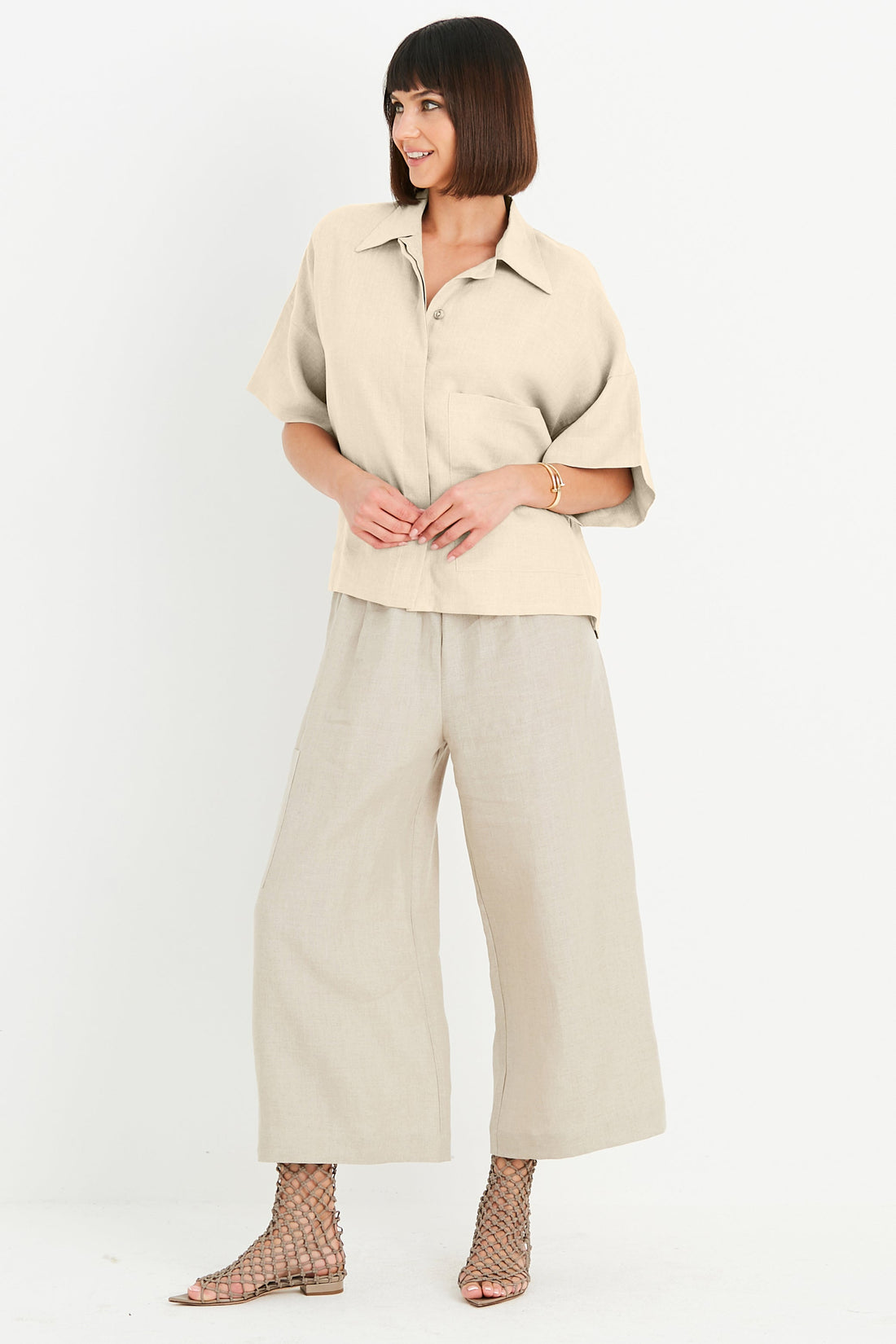Handkerchief Linen Crop Gaucho Pants
