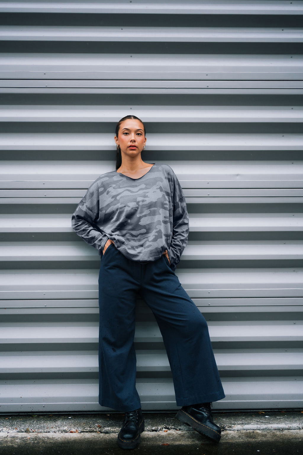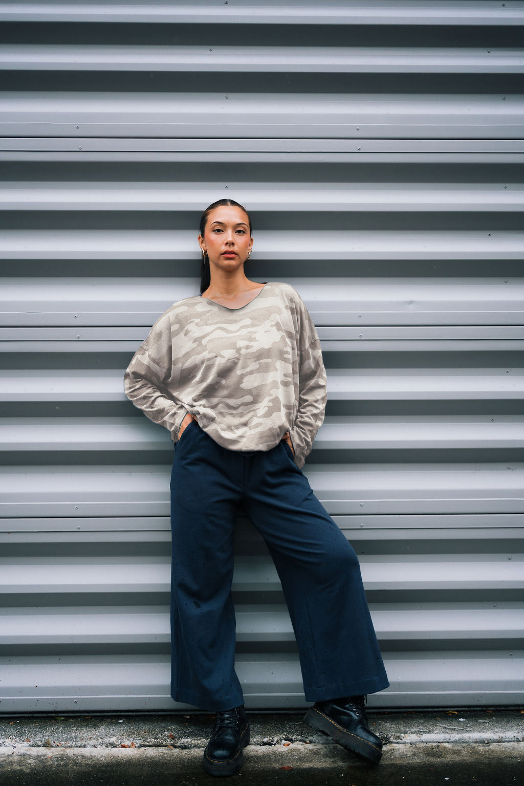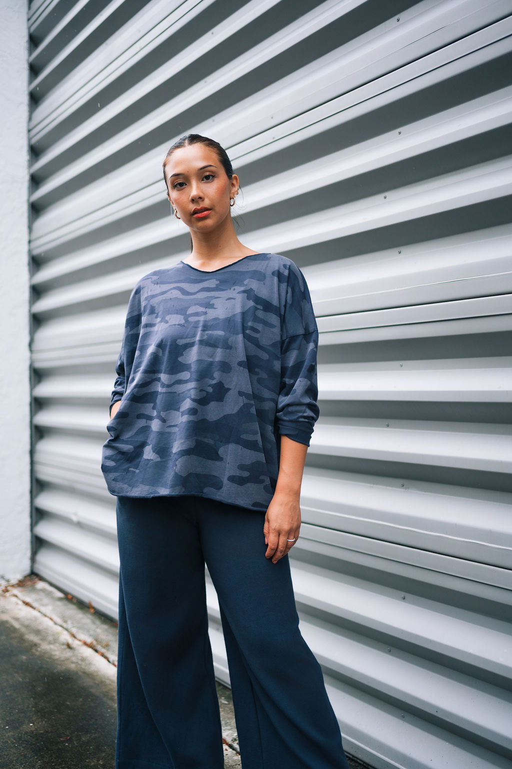 An effortlessly cool drape meets luxe comfort in this easygoing silhouette. The Camo Swing Turtle is cut from buttery-soft Pima cotton and designed with a relaxed, asymmetrical hem that moves with you. A loose turtleneck gives it that cozy, cocooned feel¡ªwithout adding bulk¡ªwhile the tonal camo print keeps things elevated and modern.