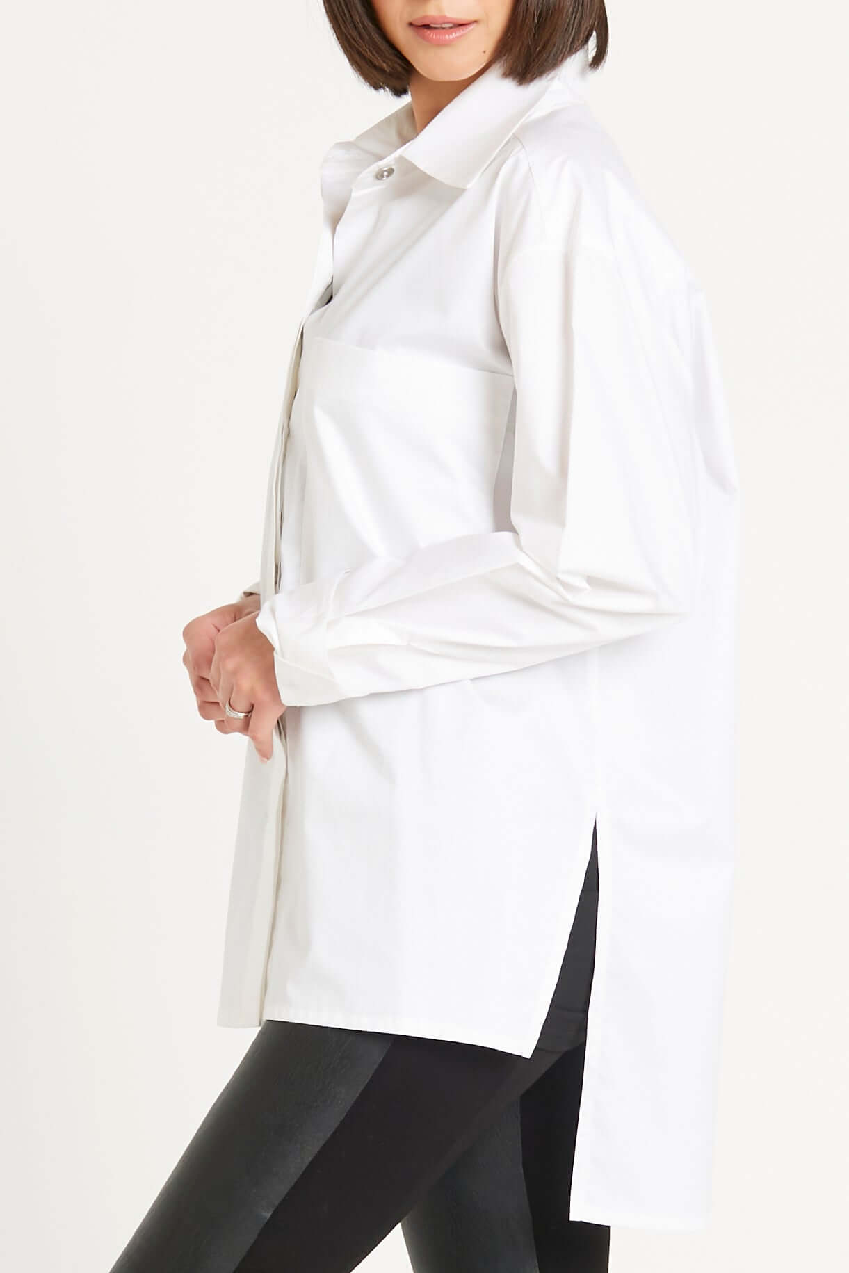 When COOL is KOOL, we turn to our cotton shirt that's a bit EXTRA FAB!? The high-low crisp cotton shirt has a bi-level hem, patch pocket and room for style attitude! Whether you pop your collar or just let it drape naturally, you will feel good and look good!