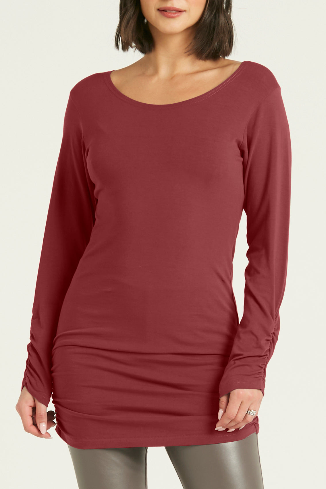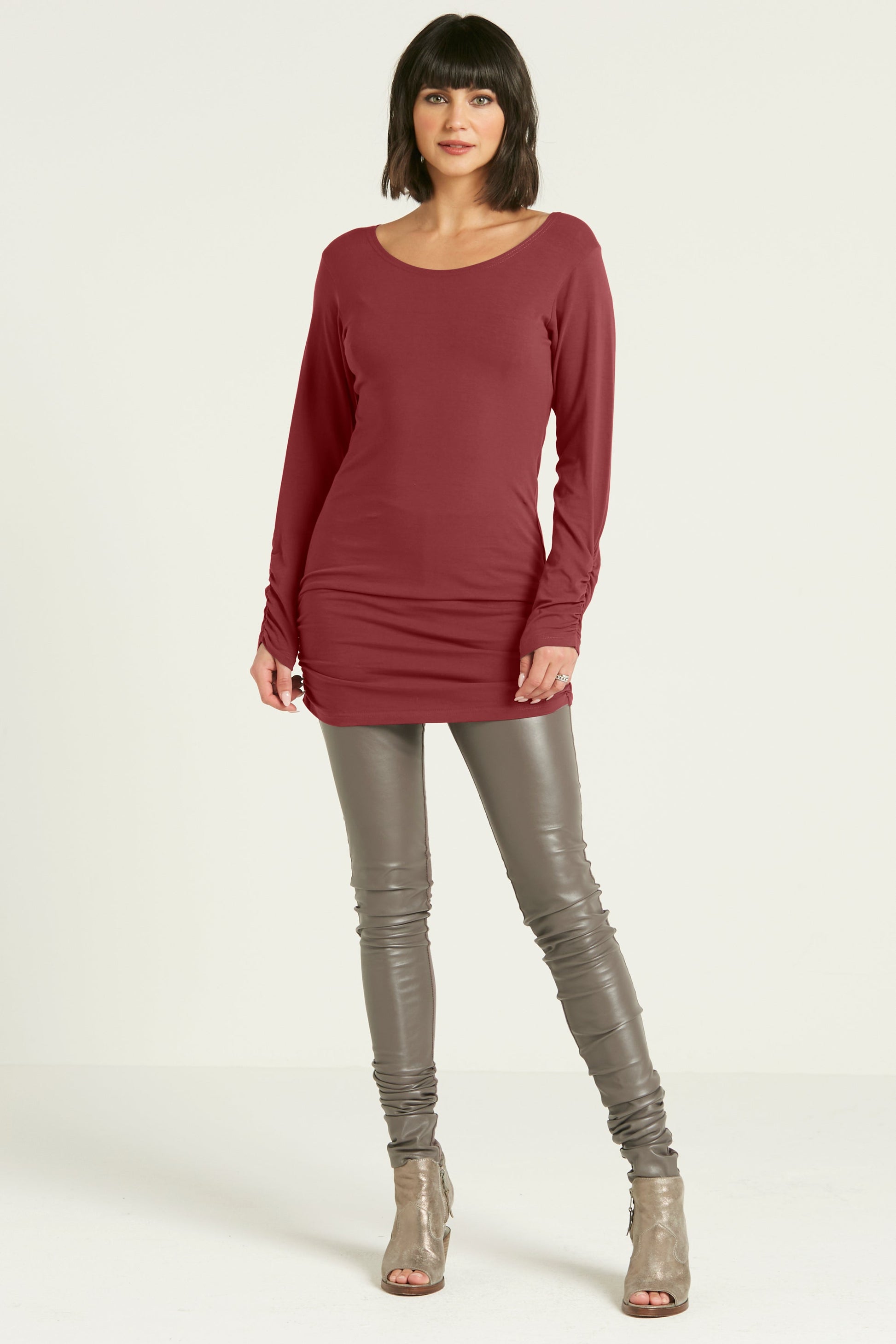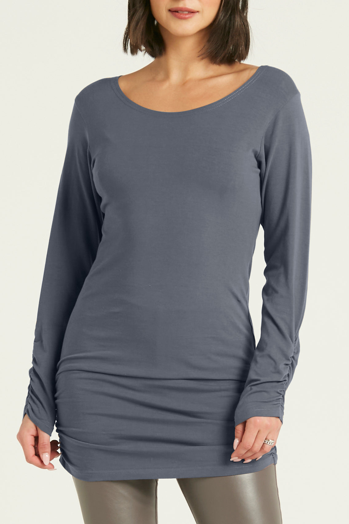 Get ready to fall in love! Taking the elegance of our star ruche tank and adding the allure of long sleeves, this top is the perfect wardrobe update. Crafted with the perfect blend of cotton and Lycra, it promises comfort while the ruched design adds a fashionable twist. Ideal for layering under a PLANET Chic Cape or Jacket, this top brings sophistication and versatility to your closet. Whether for a chic daytime look or an evening out, it's a must-have piece that will elevate any outfit with ease.!?