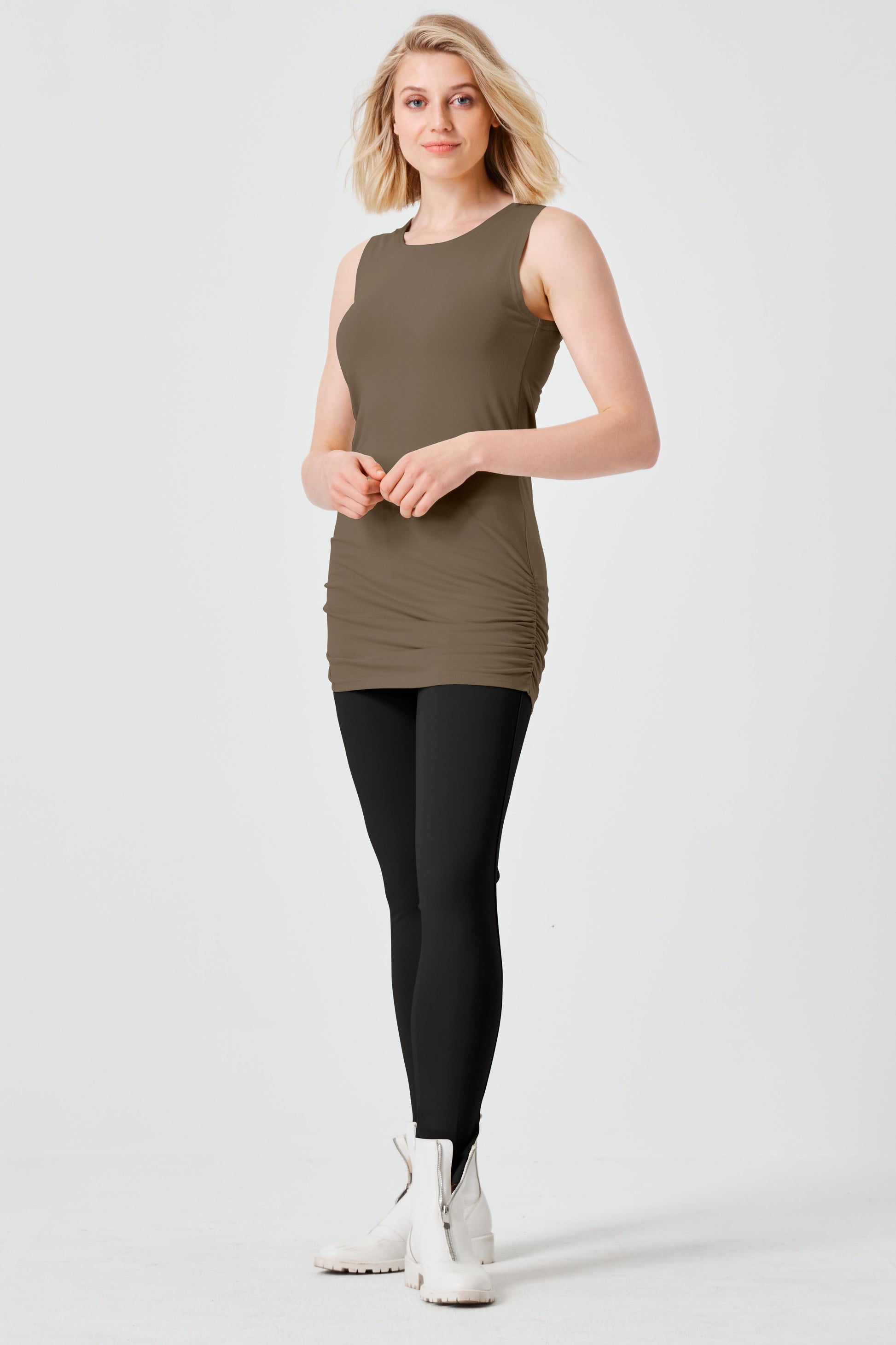 Dive into the epitome of elegance with our Cotton Lycra Ruche Tank. A harmonious blend of organic comfort and adaptive elegance, this piece offers a sculpted silhouette with ruched details, elevating everyday chic. Embrace timeless style where sophistication meets unparalleled comfort. Your essential layer of luxury awaits.??