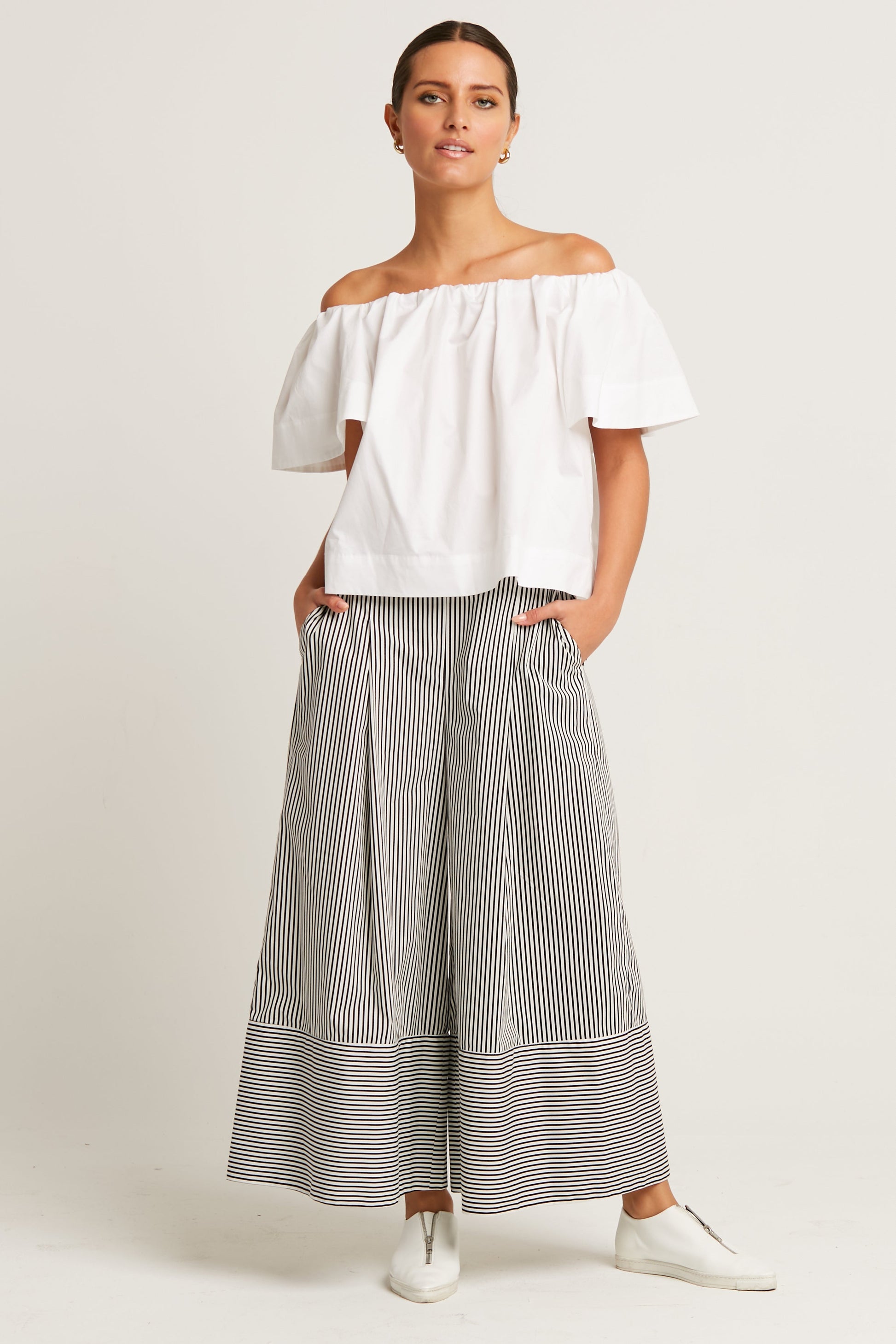 Timeless Elegance in a Breezy Off-Shoulder Style.