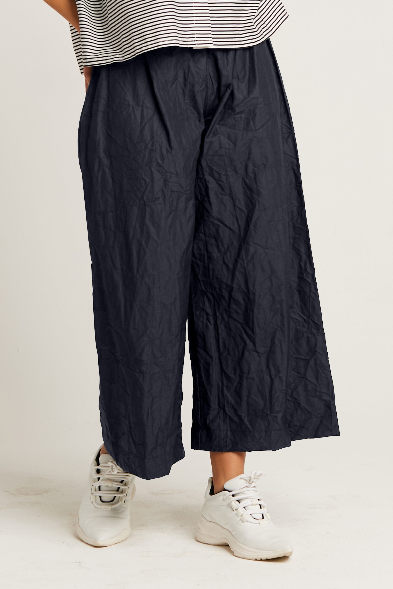 Elevate your wardrobe with these lightweight, textured gauchos, offering effortless sophistication and unmatched comfort. Designed with a flattering cropped silhouette, functional side pocket, and an elastic waistband, they¡¯re perfect for casual outings or polished pairings. The crushed nylon fabric brings an edgy yet refined touch, making these pants a go-to staple for everyday versatility and style.