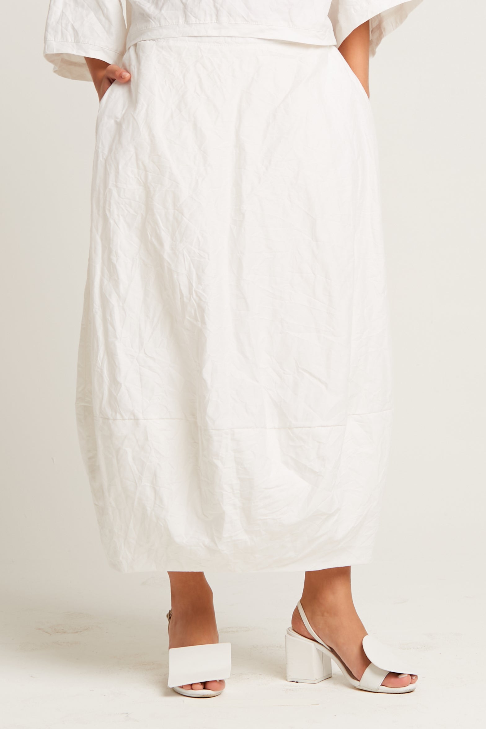 Add a touch of avant-garde elegance to your wardrobe with this skirt. The distinctive crinkled texture not only catches the eye but also provides a soft, tactile experience that feels luxurious against the skin. Its lightweight yet durable fabric ensures ease of movement, making it a versatile piece that transitions seamlessly from casual days to sophisticated evenings.
