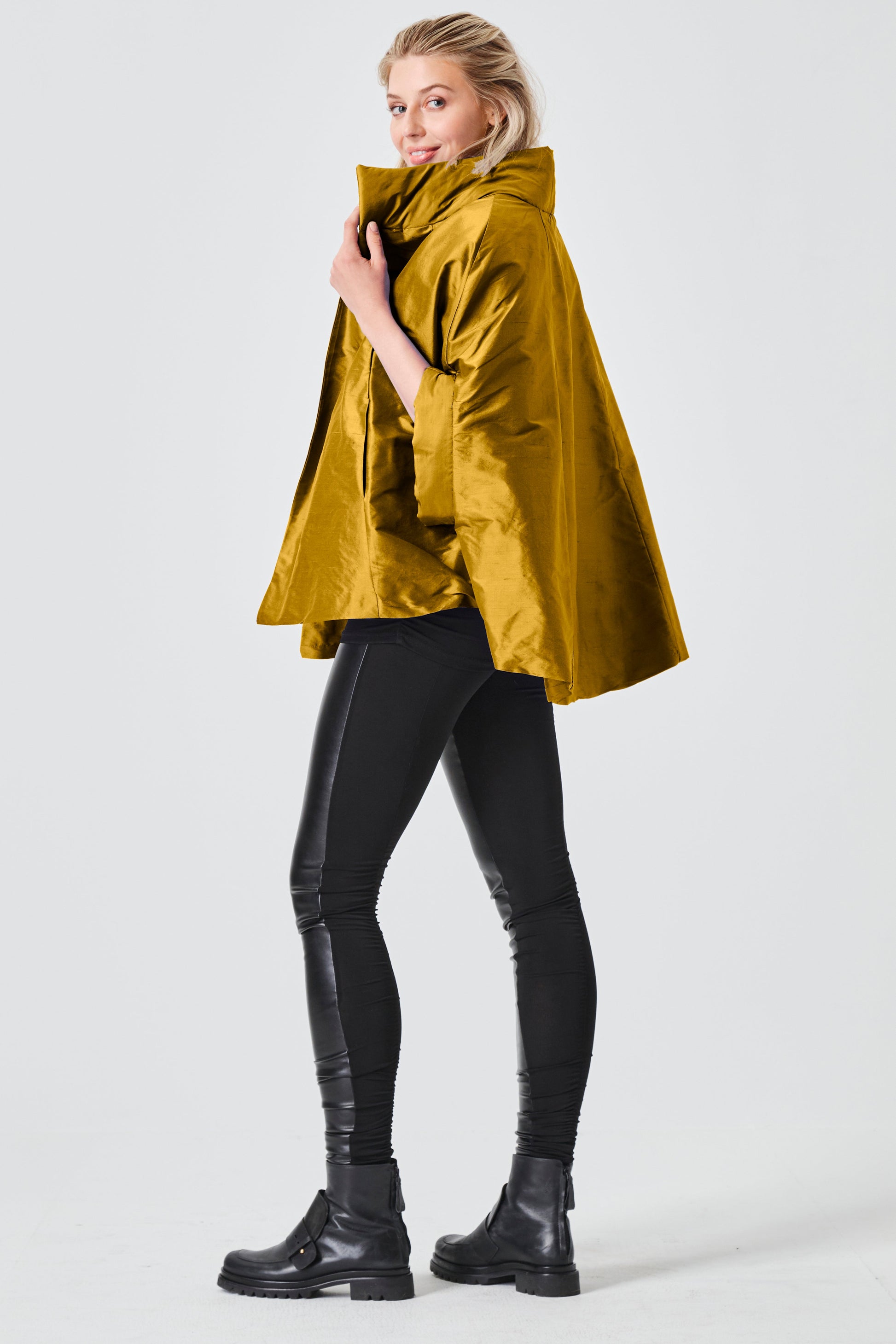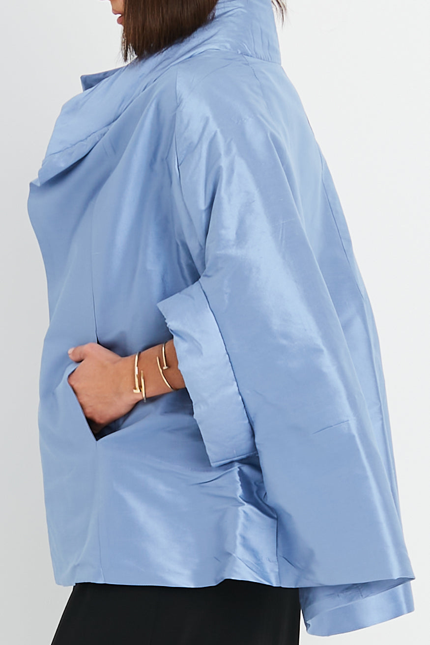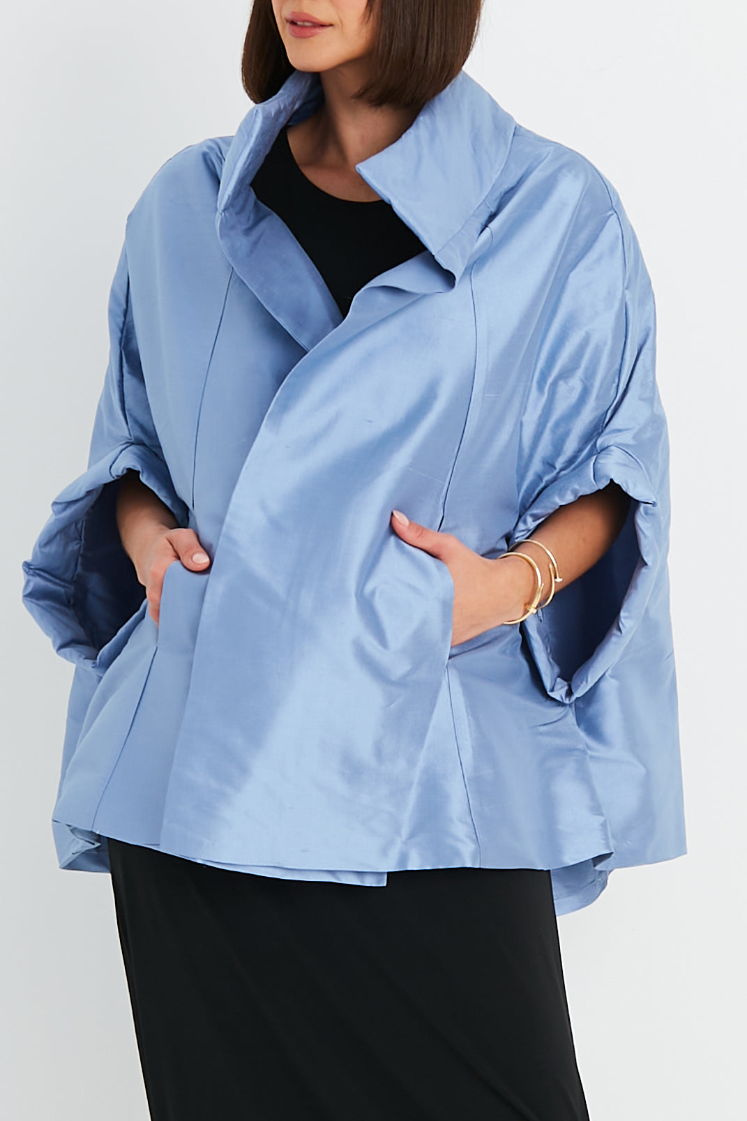 Elevate your wardrobe with PLANET's Dupioni Chic Cape, a masterpiece of luxury and design. Crafted from exquisite silk dupioni, this cape is a symphony of elegance and architectural finesse. Its tailored silhouette and functional pockets blend sophistication with practicality, making it the perfect overlay for any outfit that demands a touch of grandeur.