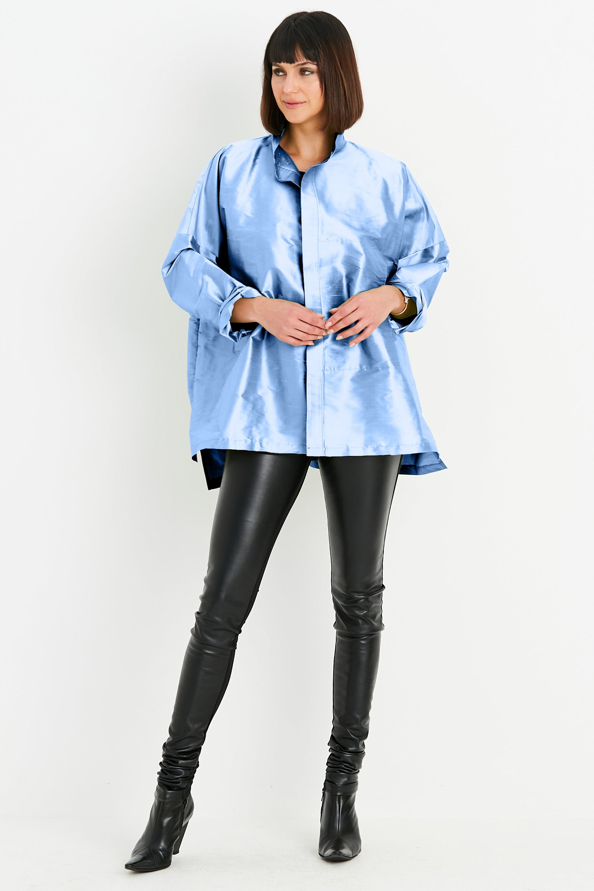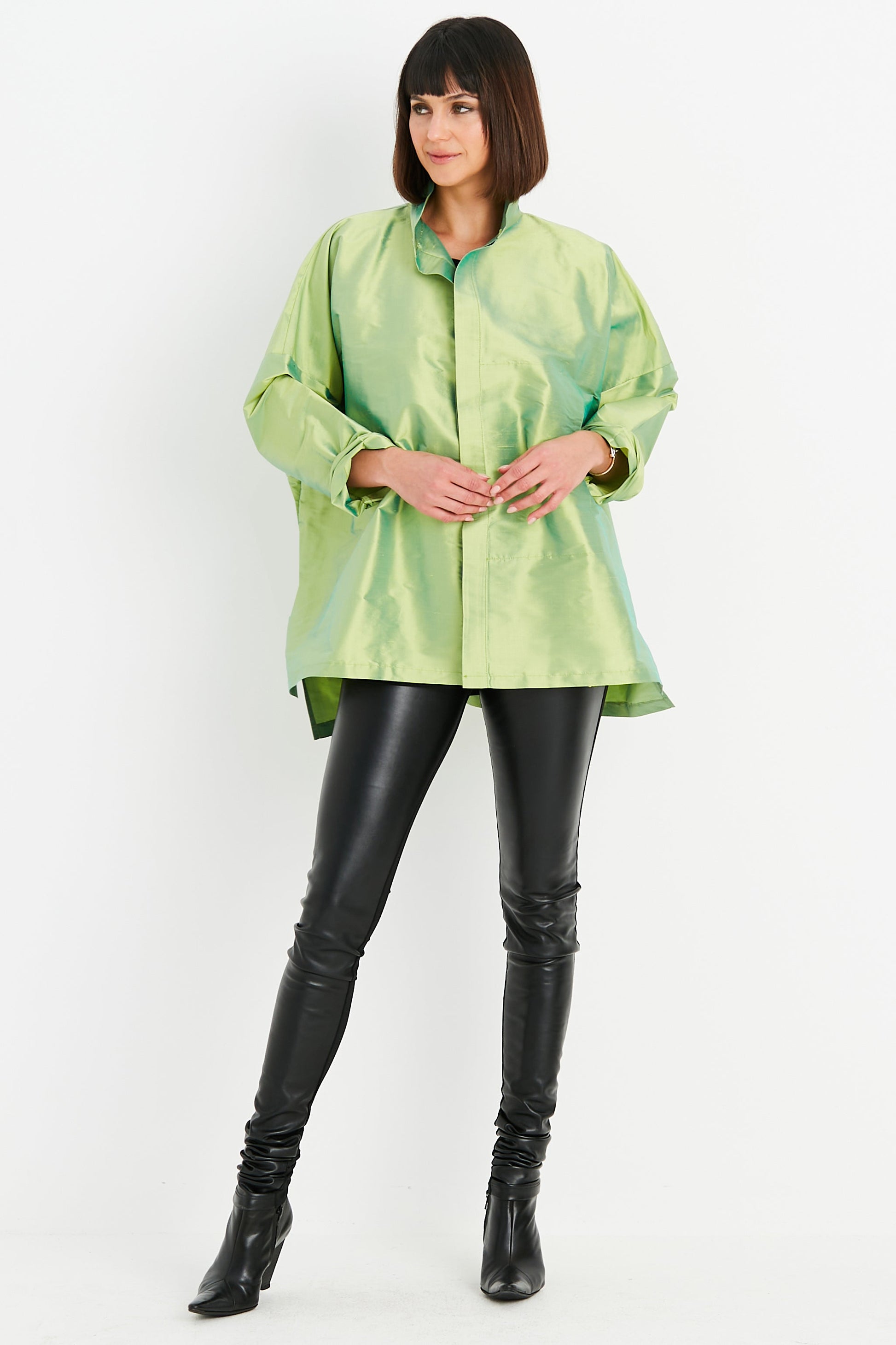 Embrace the lustrous allure of our Dupioni Signature Shirt, where traditional tailoring meets modern sensibility. The subtle sheen of Dupioni silk graces this design, featuring a relaxed silhouette for an air of casual elegance. With a mandarin collar and a hidden pocket, it's a classic reinvented for today's dynamic woman. Perfect for transitioning from office poise to evening grace, it's a testament to enduring style.?
