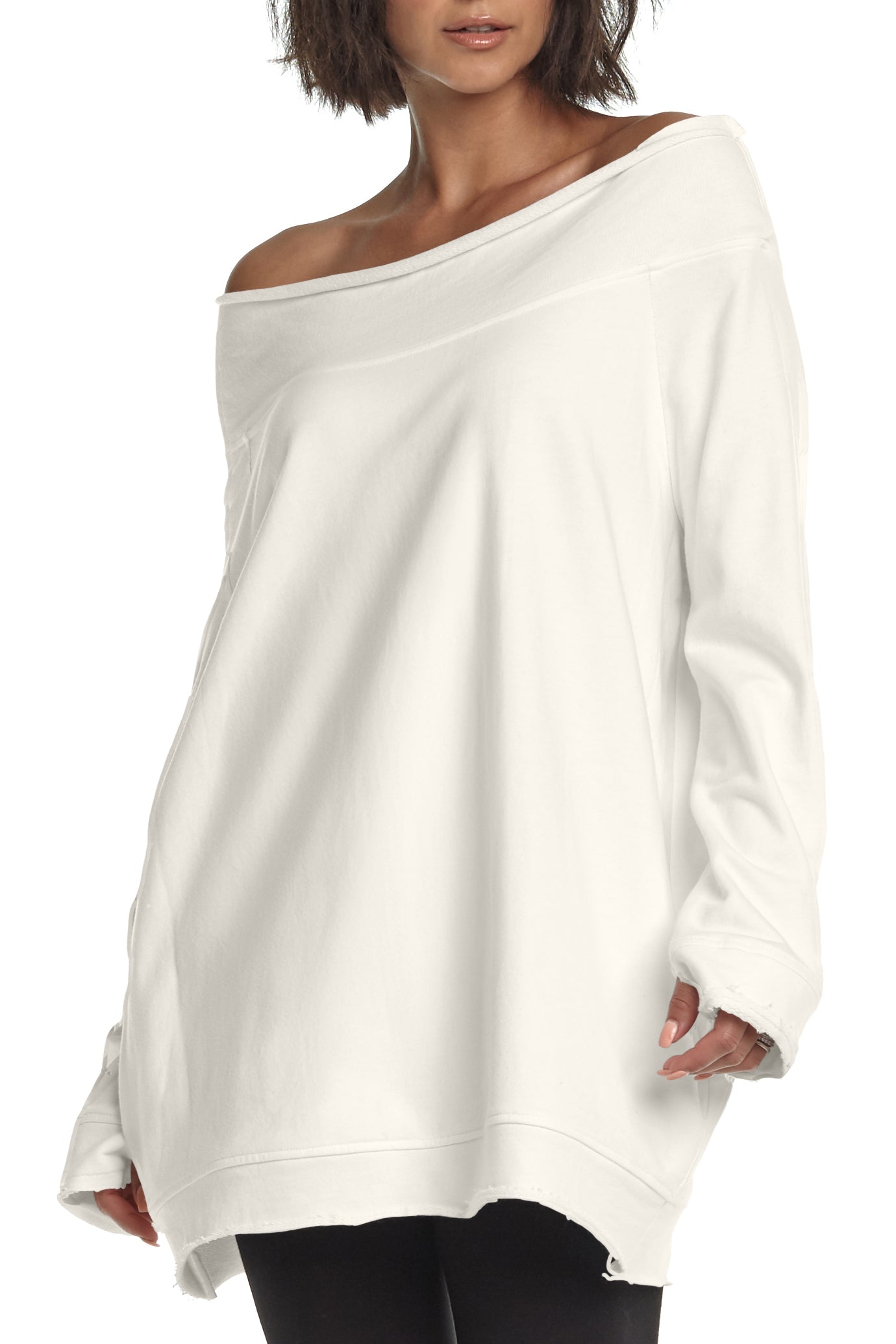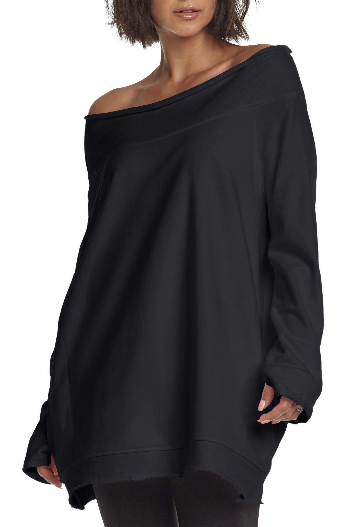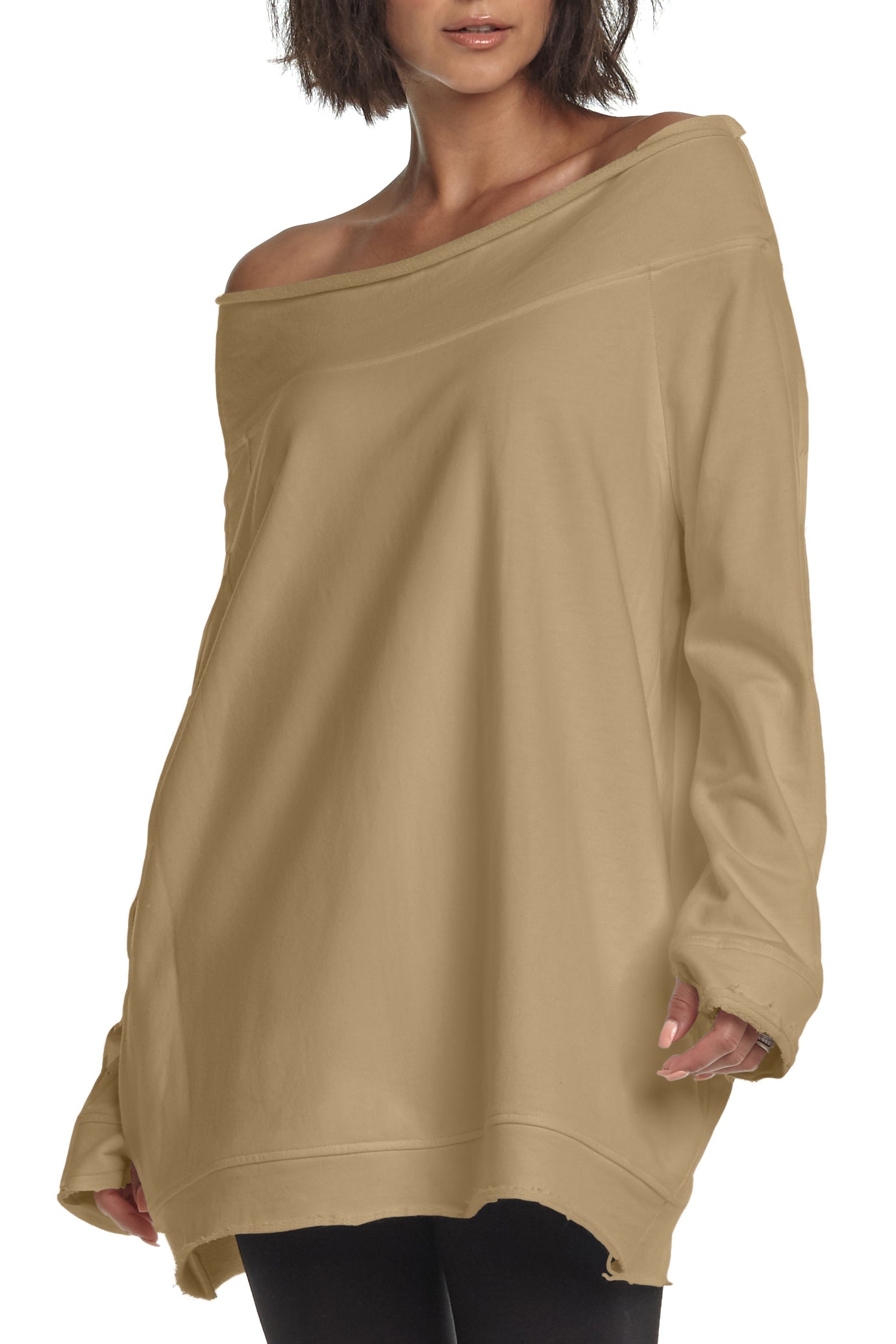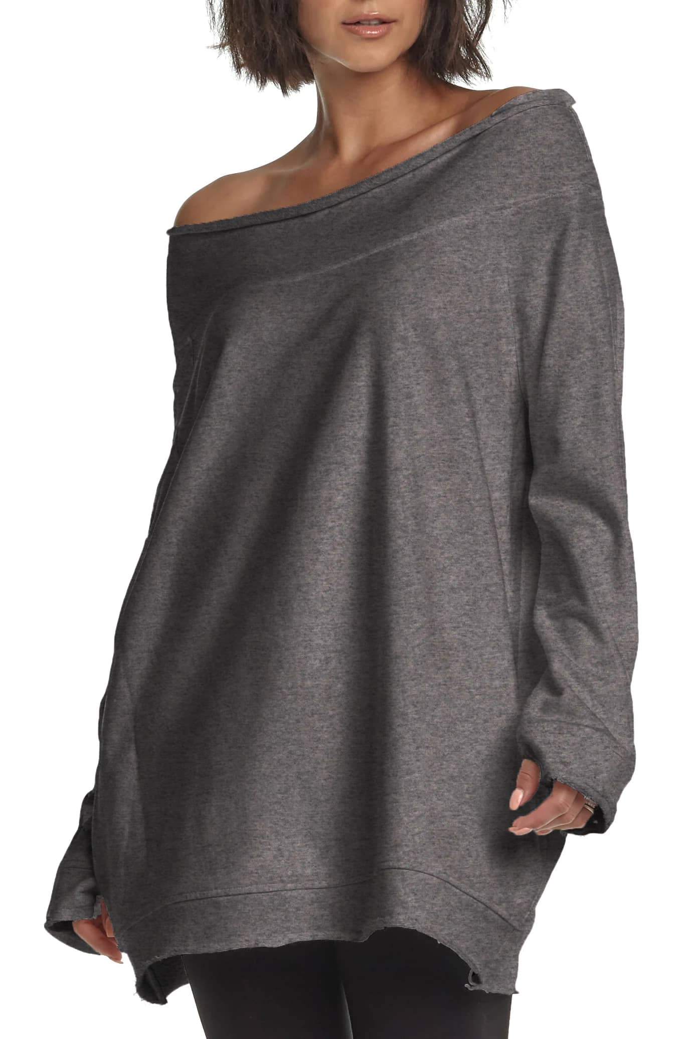 Wrap yourself in effortless sophistication with this ultra-soft French Terry tunic, designed for relaxed elegance. The fluid silhouette drapes with ease, while the off-the-shoulder neckline adds a hint of modern allure. Thoughtful details like raw edges and thumbholes create an understated edge, making this piece an everyday essential with a refined twist. Perfect for layering or wearing solo, it pairs seamlessly with sleek leggings for a look that¡¯s both comfortable and endlessly chic.