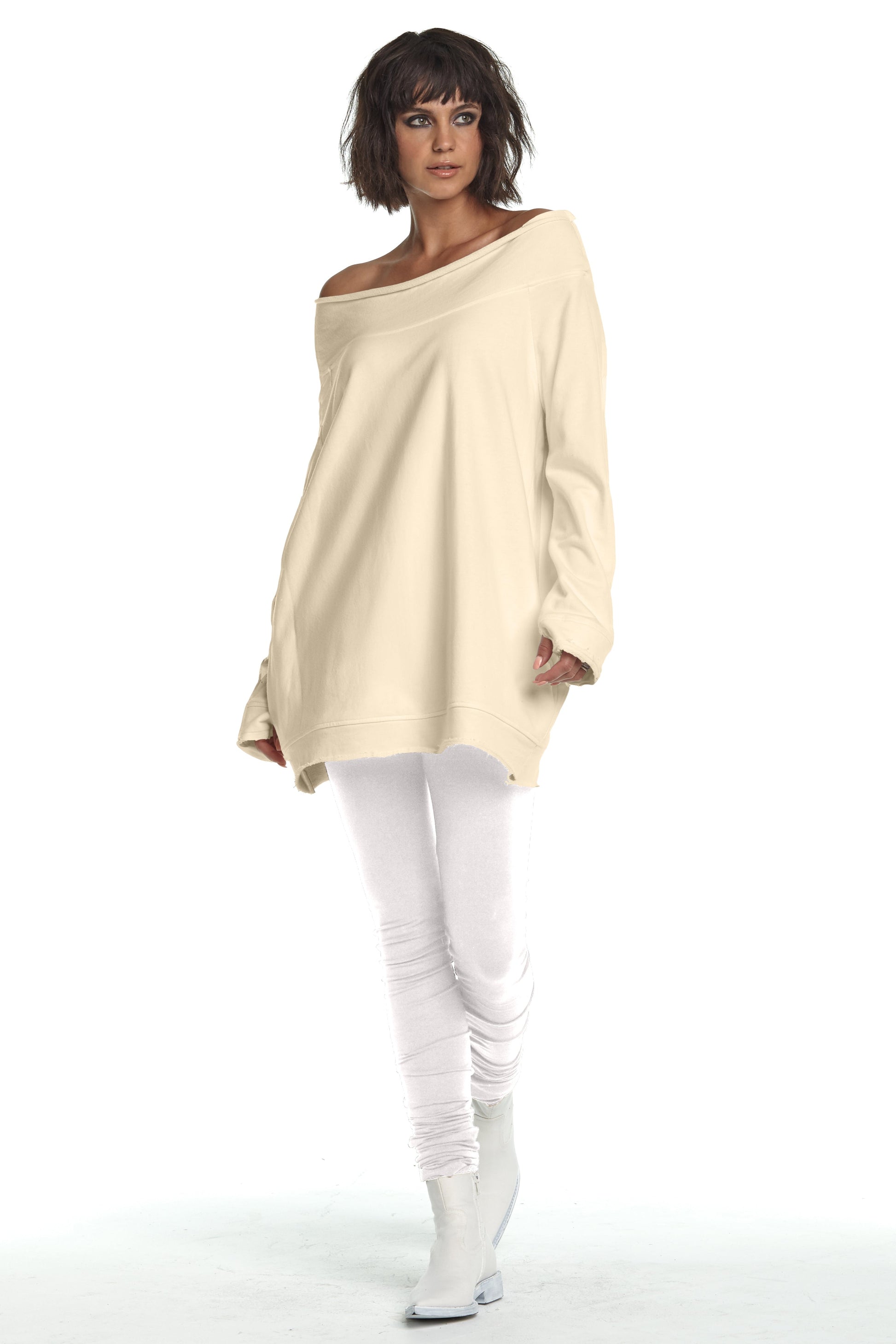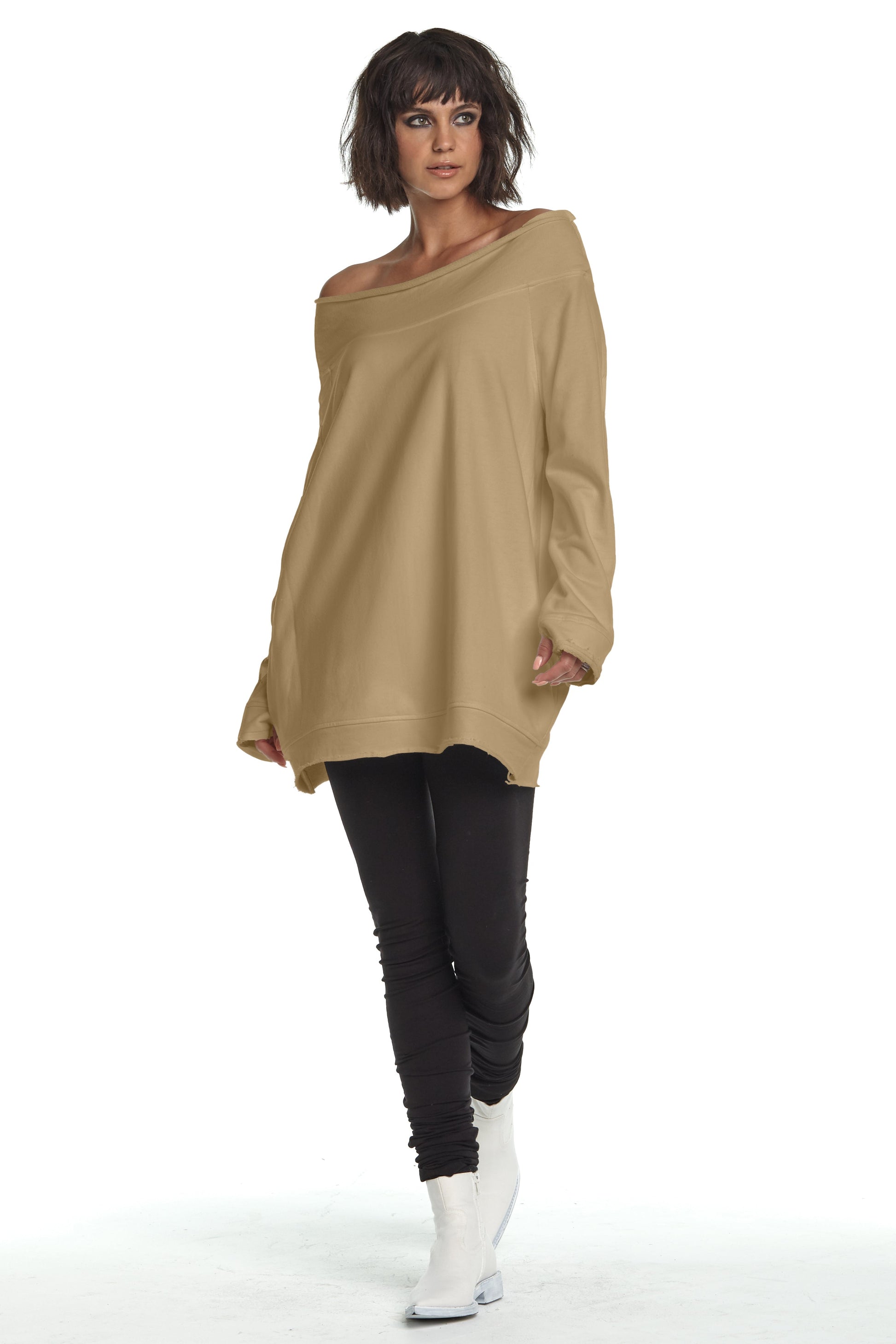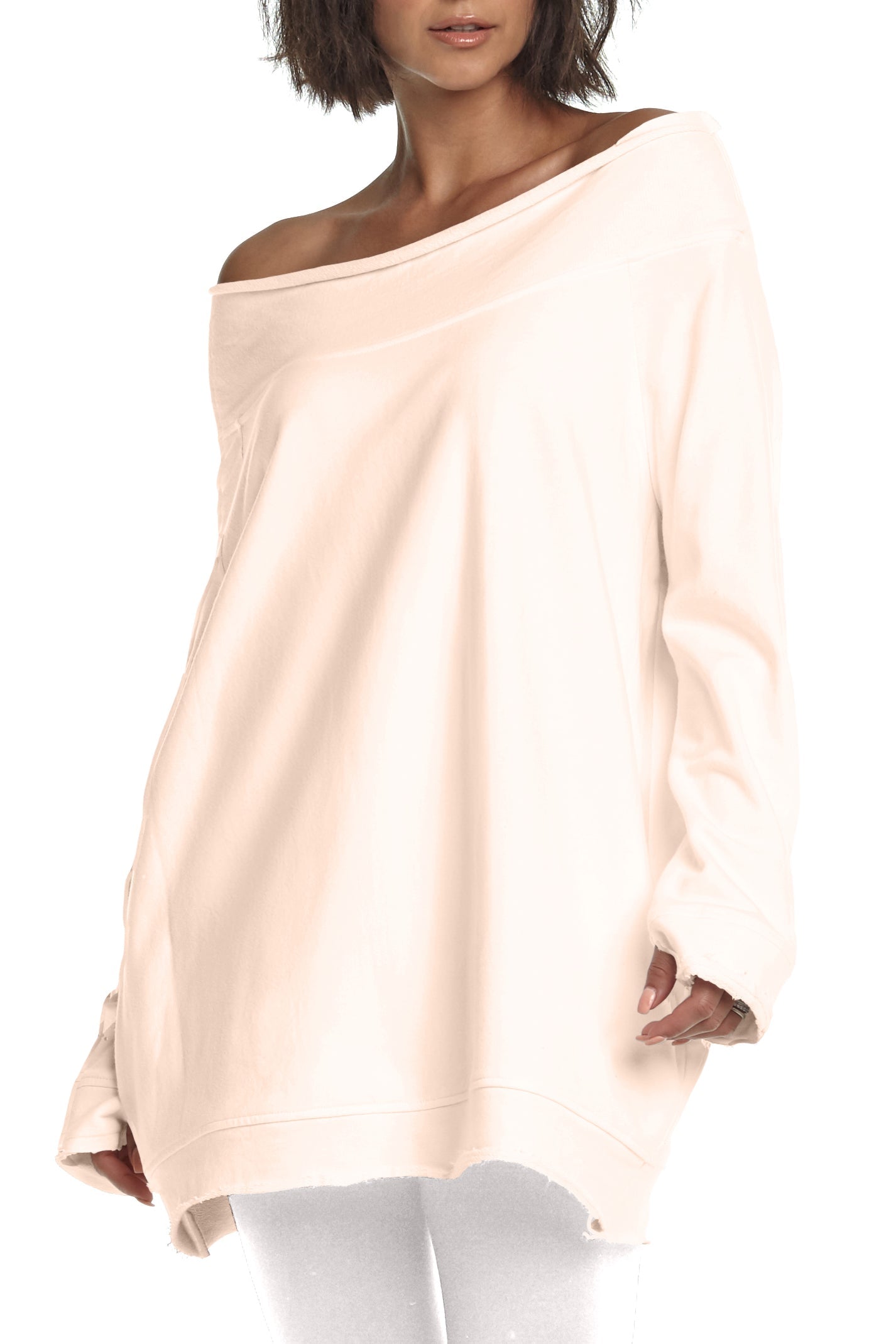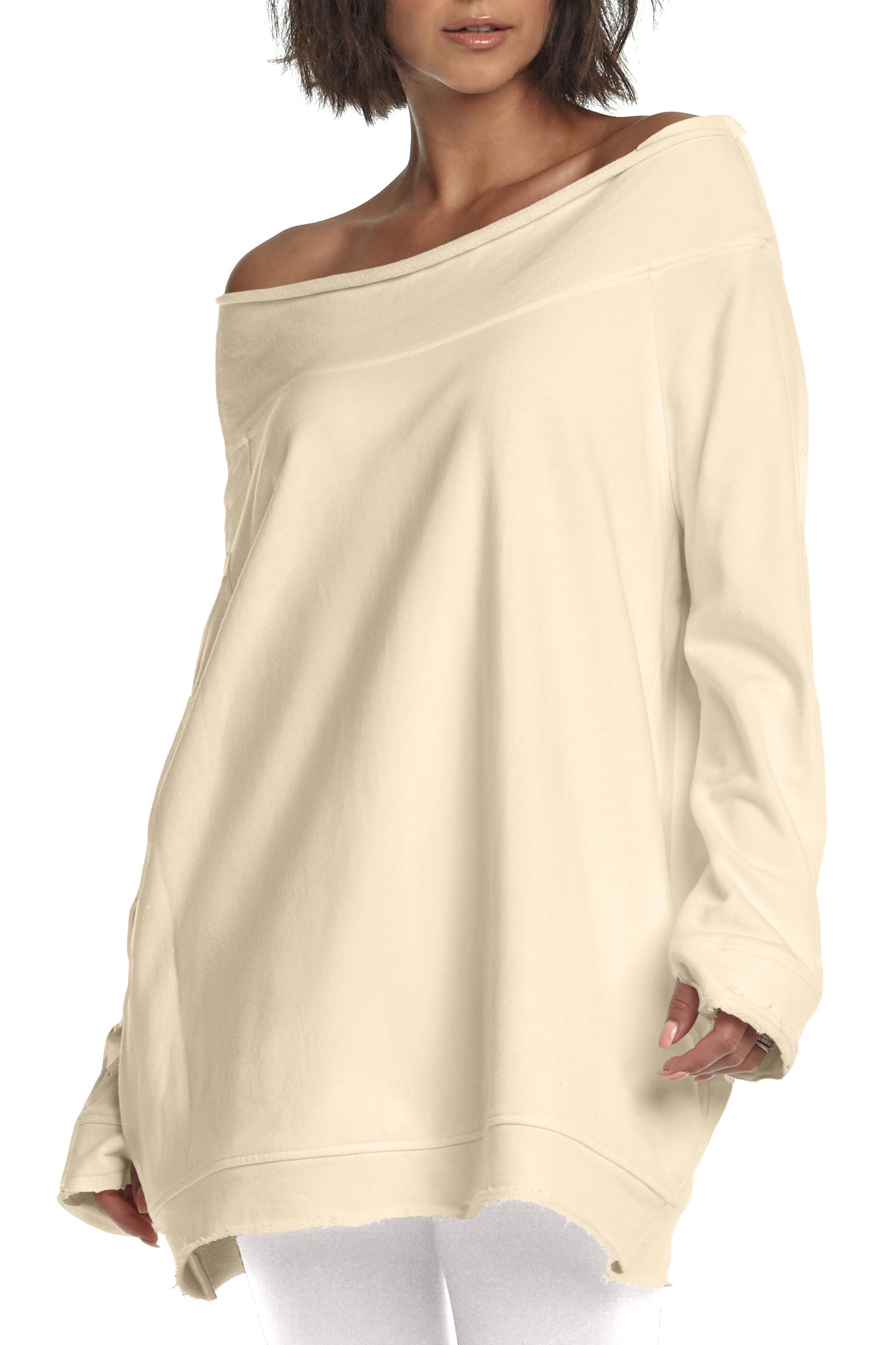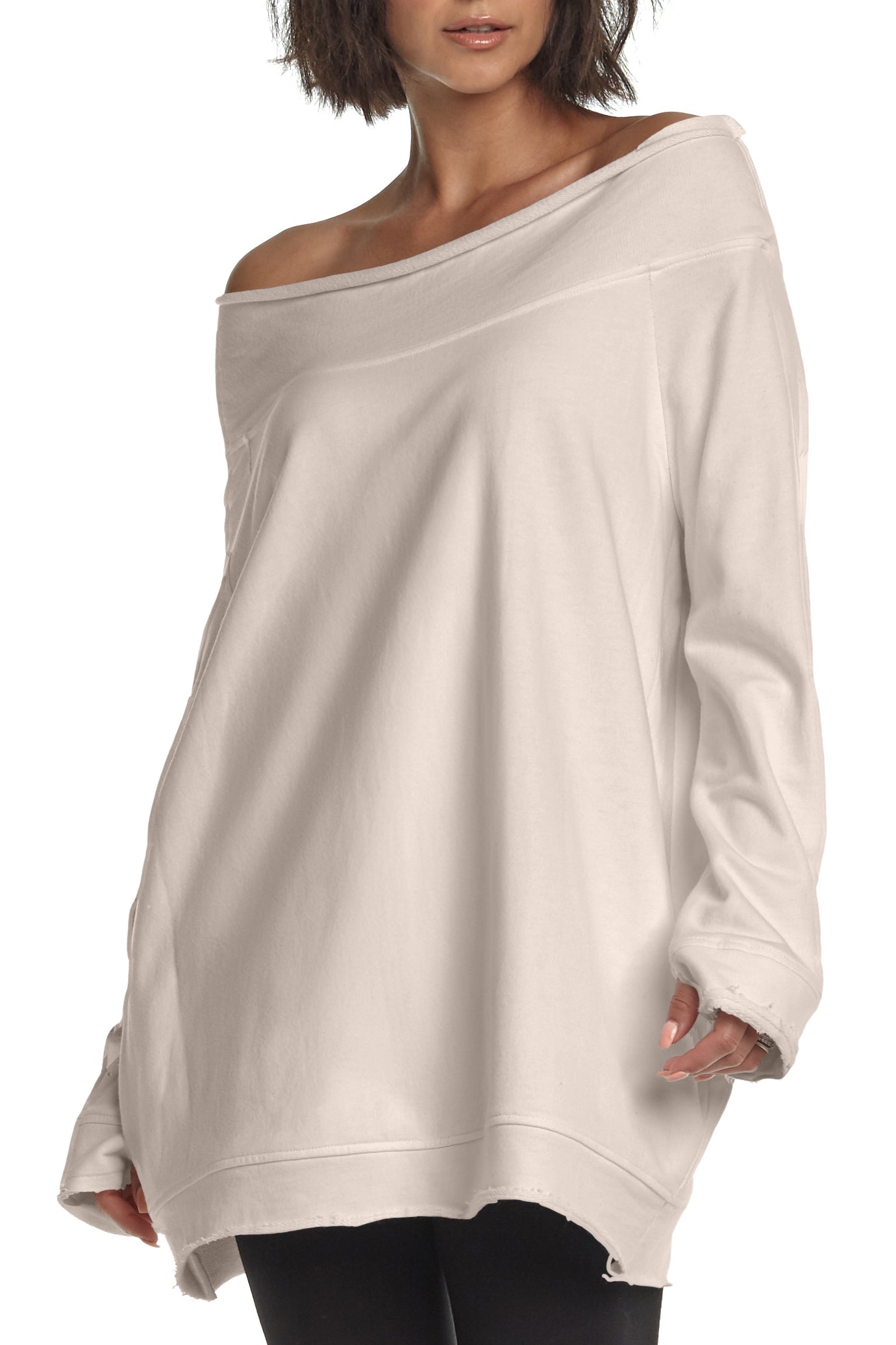 Wrap yourself in effortless sophistication with this ultra-soft French Terry tunic, designed for relaxed elegance. The fluid silhouette drapes with ease, while the off-the-shoulder neckline adds a hint of modern allure. Thoughtful details like raw edges and thumbholes create an understated edge, making this piece an everyday essential with a refined twist. Perfect for layering or wearing solo, it pairs seamlessly with sleek leggings for a look that¡¯s both comfortable and endlessly chic.
