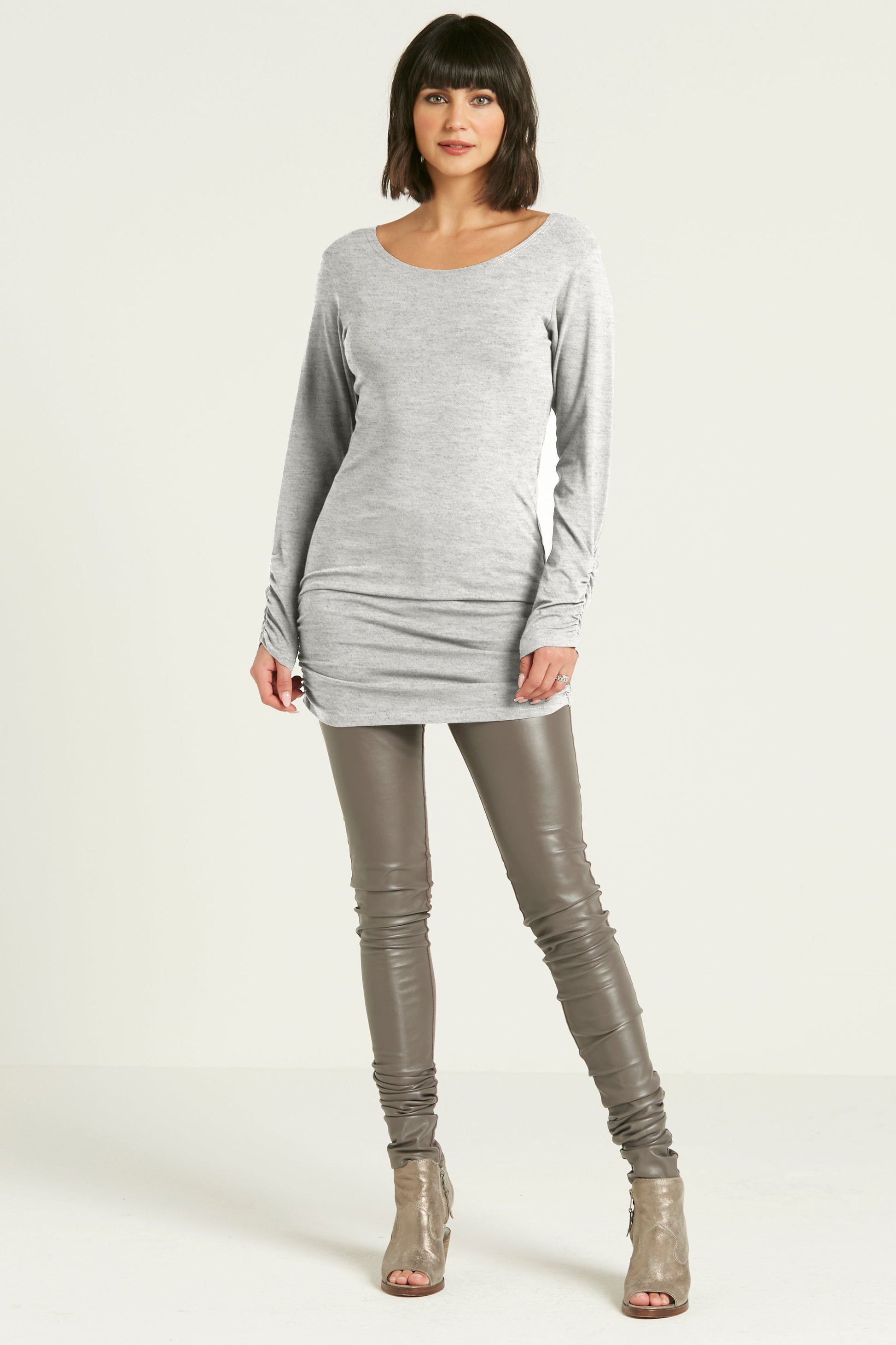 Get ready to fall in love! Taking the elegance of our star ruche tank and adding the allure of long sleeves, this top is the perfect wardrobe update. Crafted with the perfect blend of cotton and Lycra, it promises comfort while the ruched design adds a fashionable twist. Ideal for layering under a PLANET Chic Cape or Jacket, this top brings sophistication and versatility to your closet. Whether for a chic daytime look or an evening out, it's a must-have piece that will elevate any outfit with ease.!?