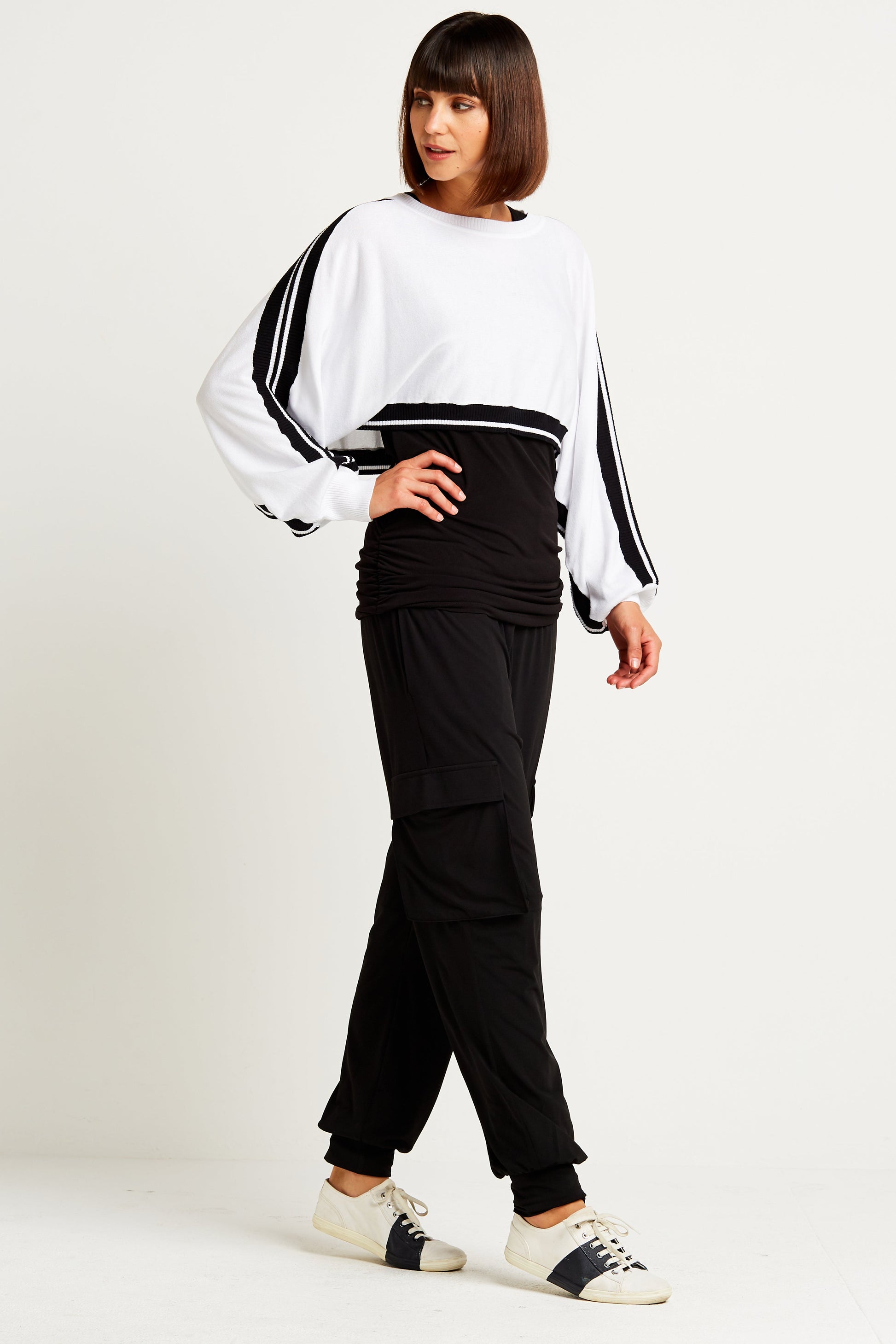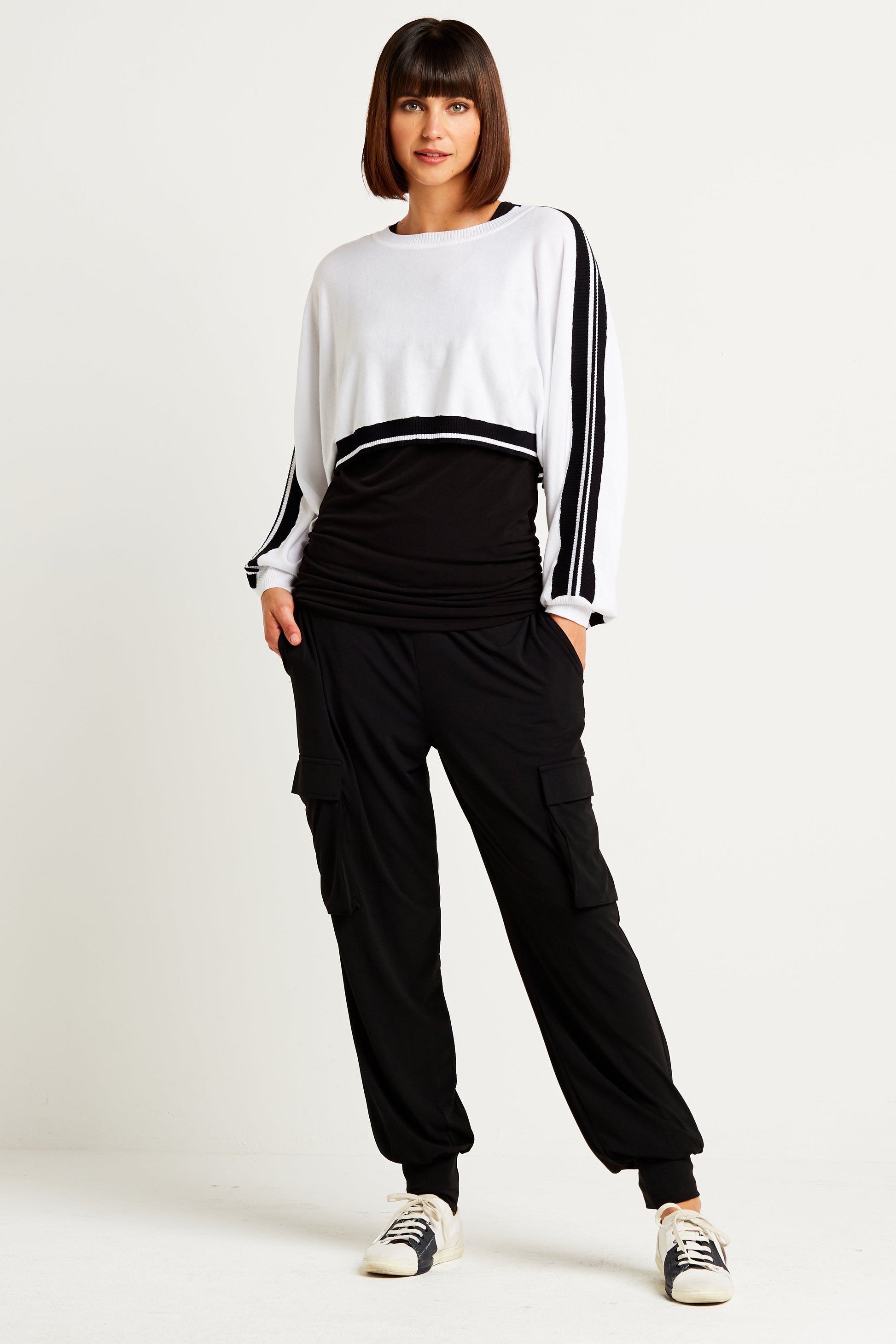 Maximize your new cargos and wear it with any of our spa tees.??Add on any of our knits or matte jersey tops to make this a chic new 'go-to' athleisure outfit.