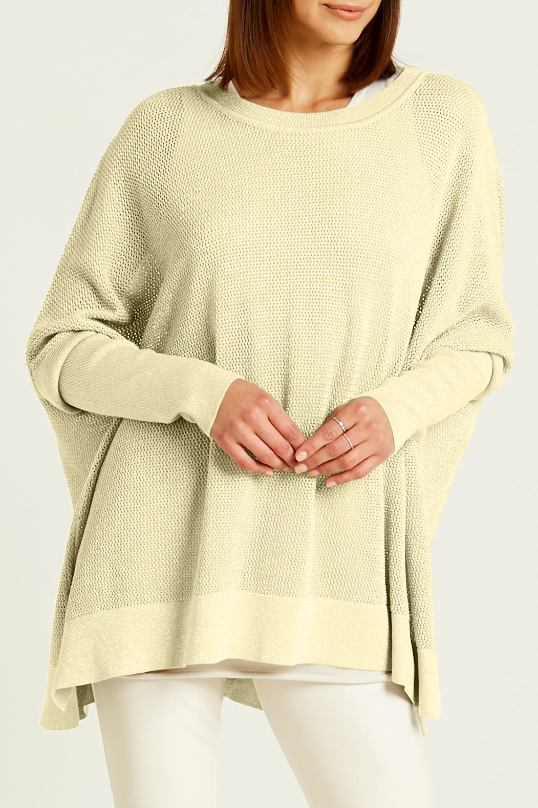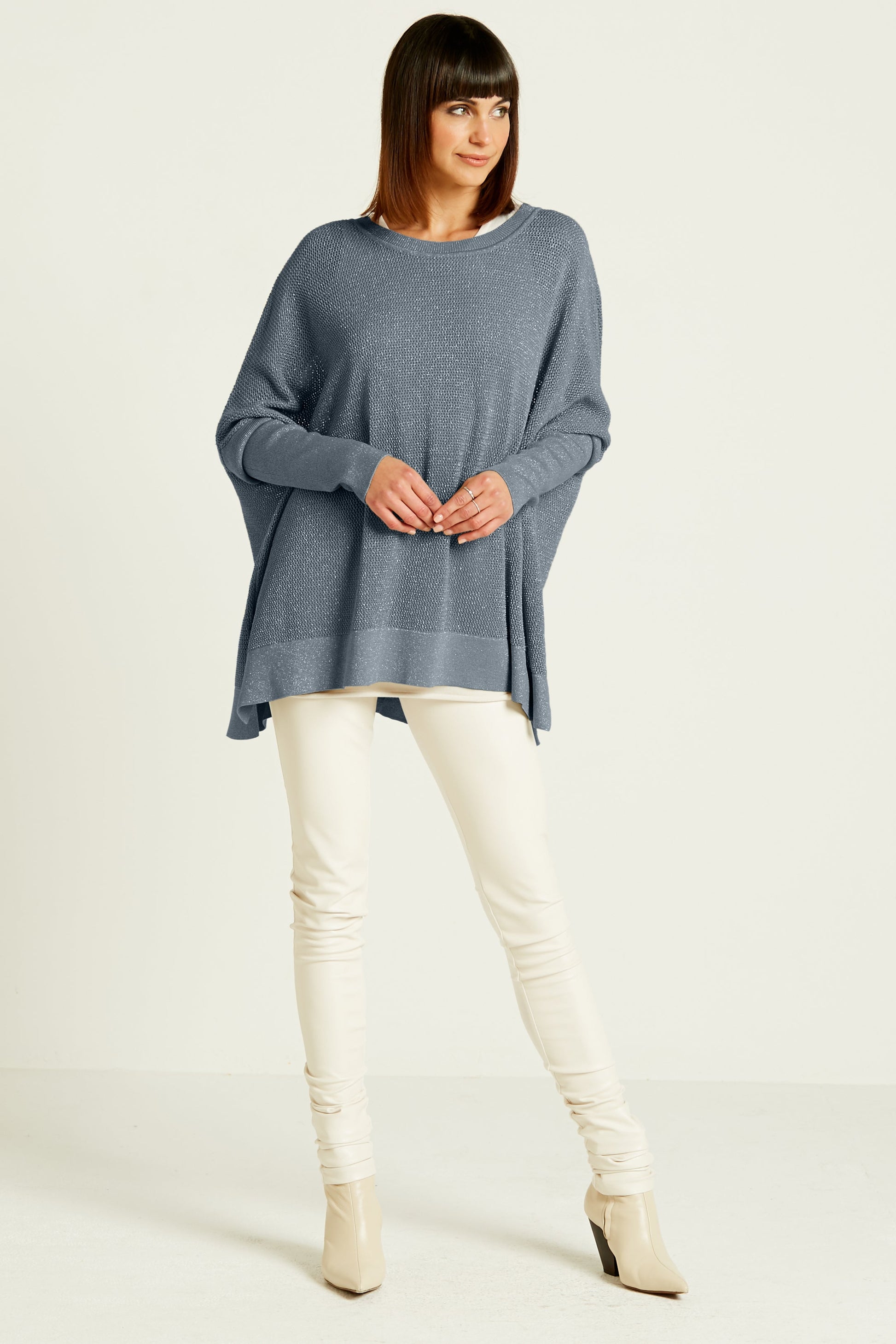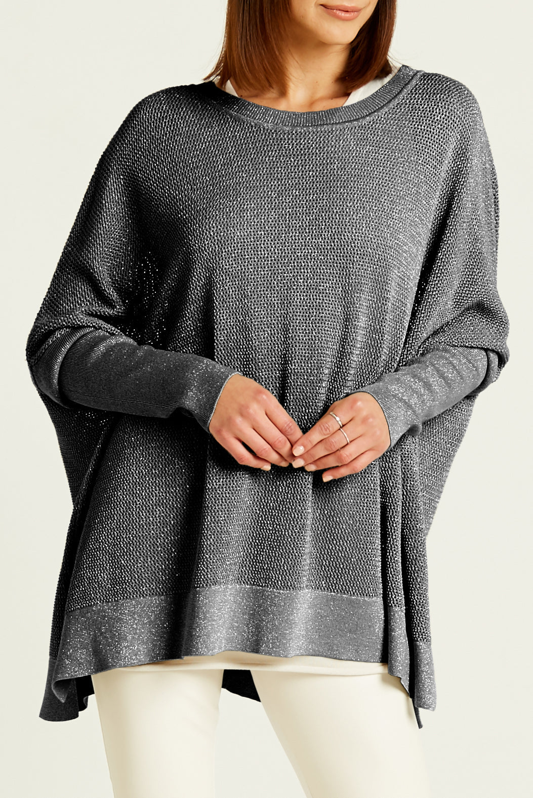 Indulge in the subtle elegance of our shimmer-styled crewneck knit. Infused with understated metallic flecks, this sweater blends sophistication with a touch of glamour. The dress-up casual classic offers the freedom to be styled on or off the shoulder, adapting to your unique flair. With features like drop shoulders and an extended fitted cuff, it's a luxurious piece that will elevate any look.