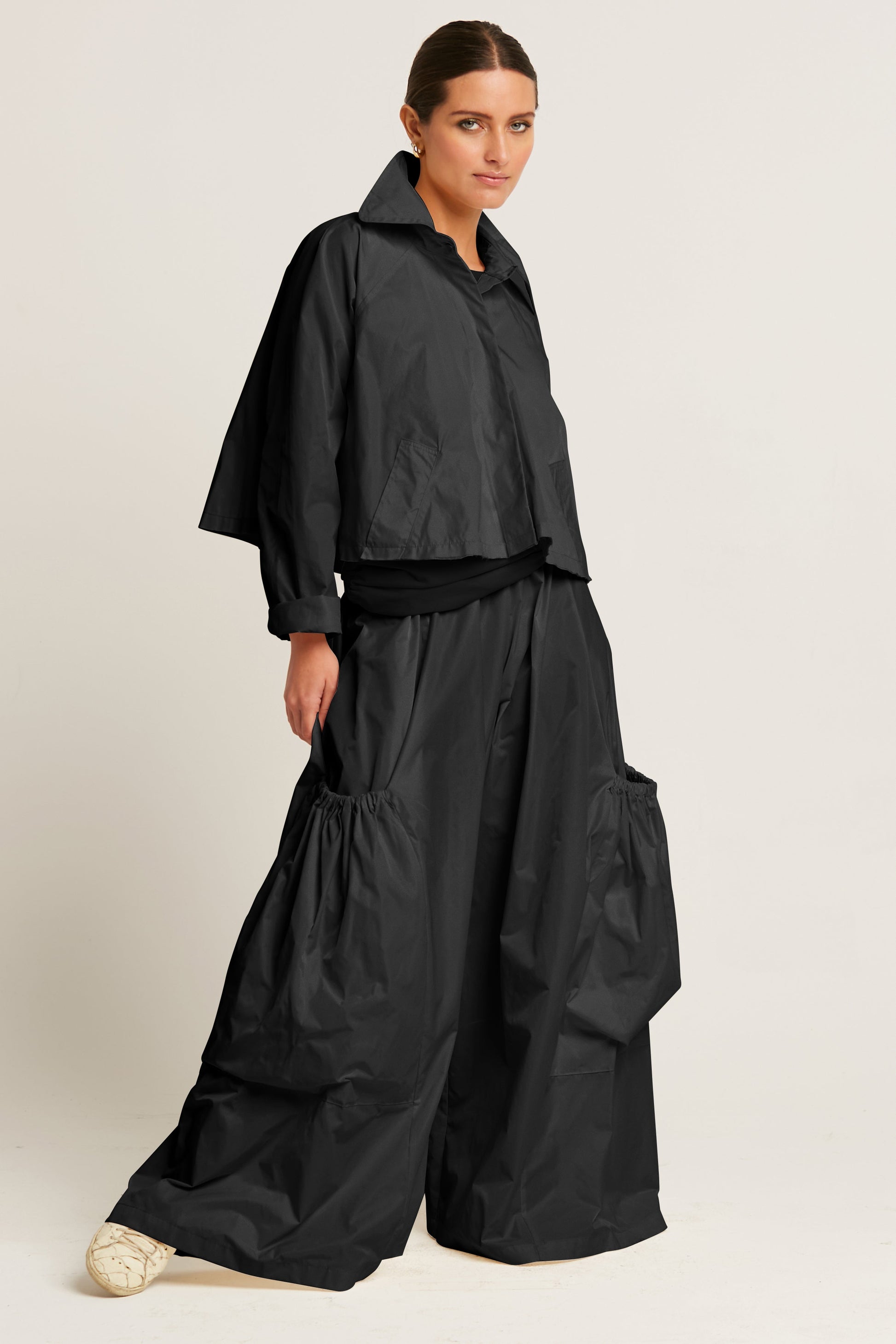 Nylon Cropped Swing Jacket