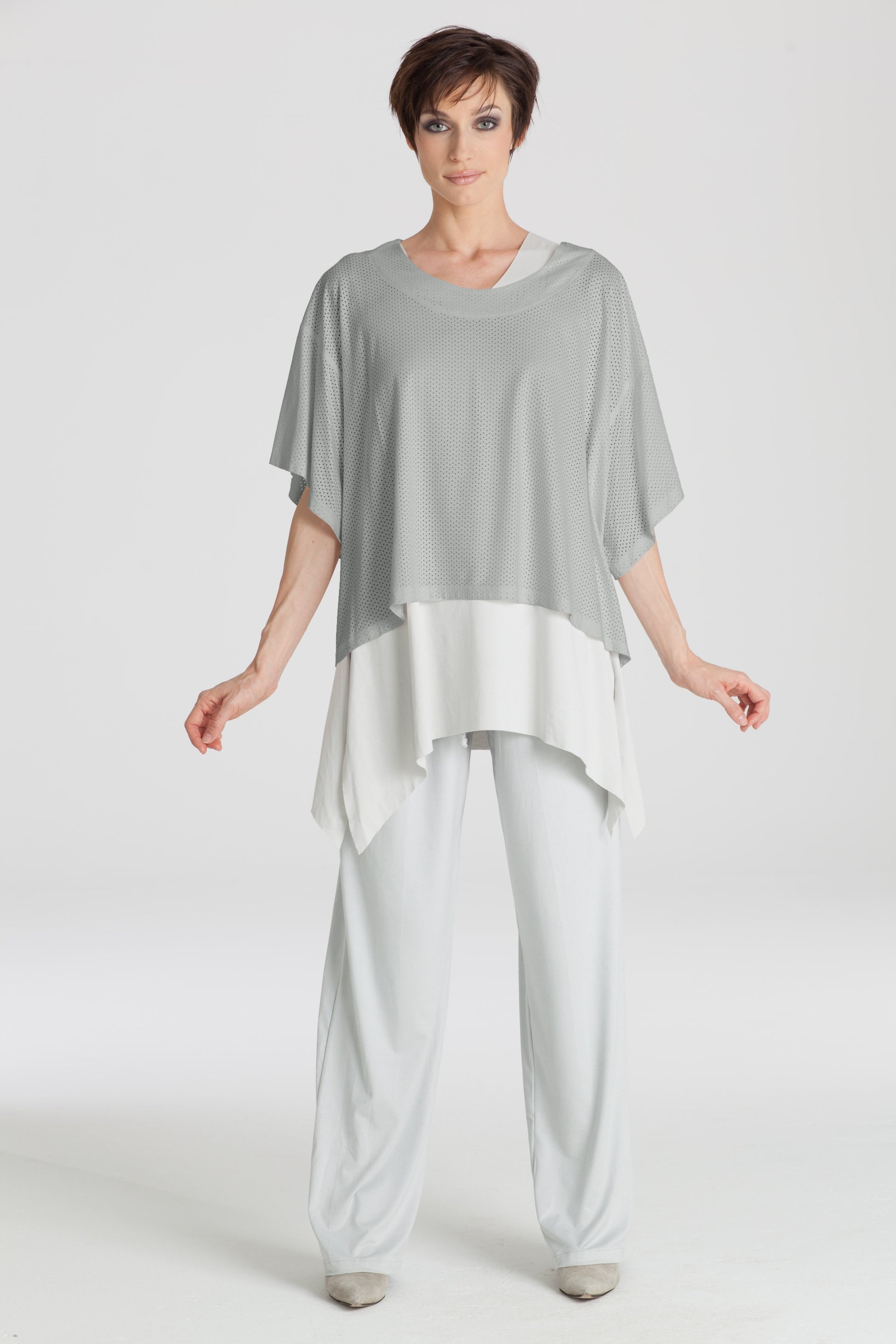 Crafted from soft perforated suede, this boxy tee brings an effortless blend of luxury and breathability. The oversized silhouette offers relaxed comfort while the unique texture adds dimension to any outfit. Its lightweight feel makes it perfect for layering or wearing on its own, giving you versatile styling options for any season. This top is the epitome of casual chic with a contemporary twist.