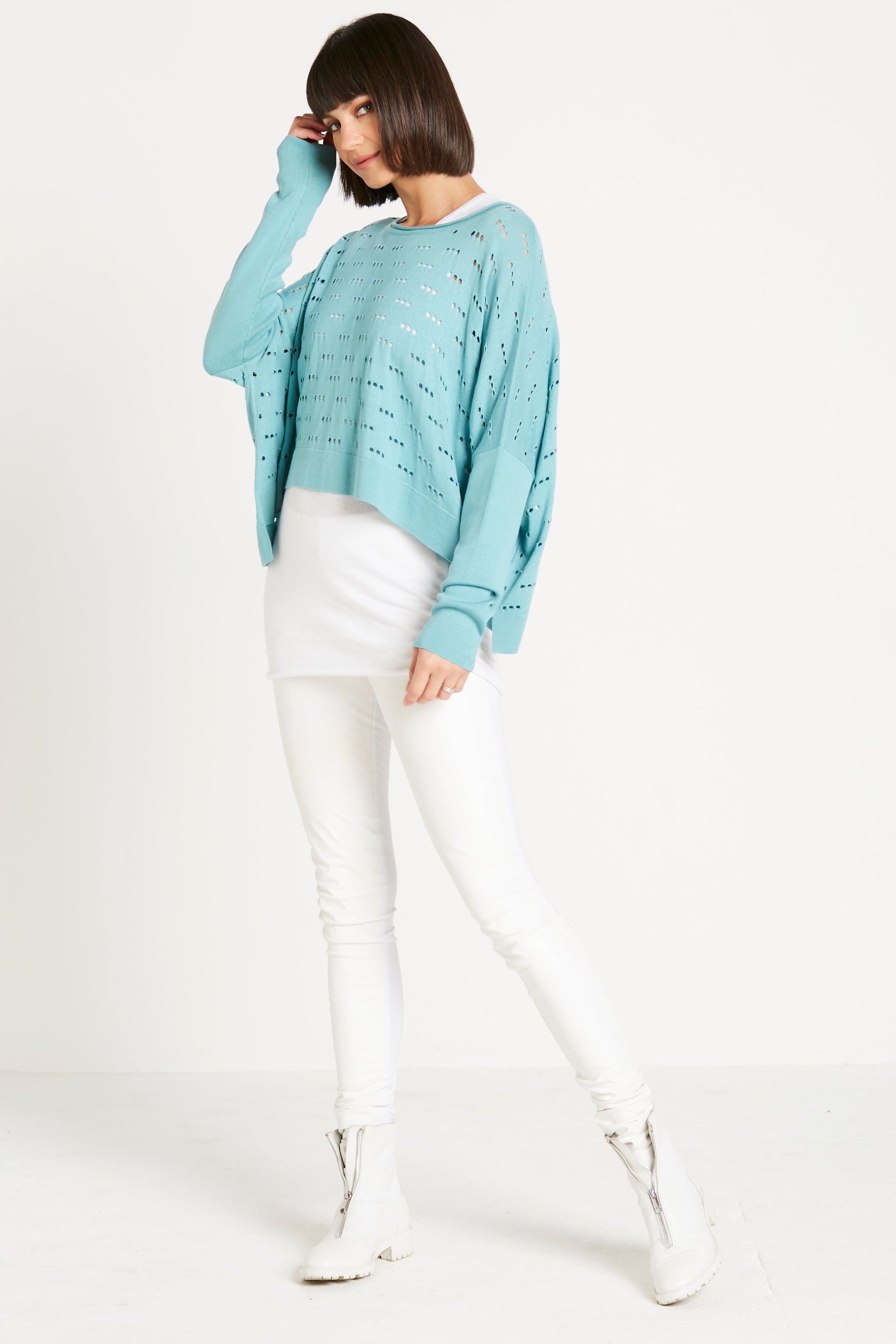 Pima Cotton 3 Hole Punch Boatneck Sweater