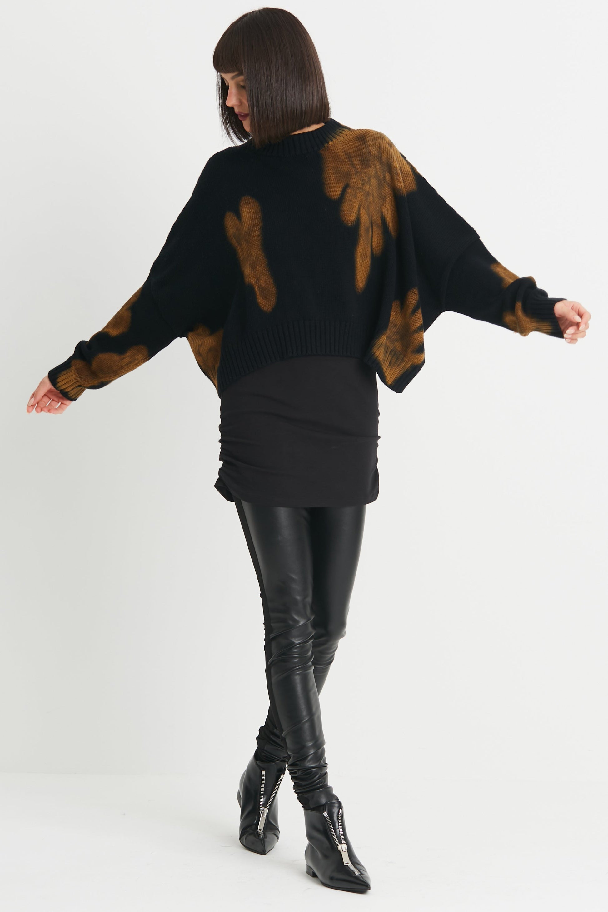 Captivating with a touch of edge! This isn't just any sweater. It's an homage to refined fashion, created for the woman who understands the essence of timeless style.??What sets this sweater apart is its unique bleached design. The distinctive pattern and color gradient lend an air of contemporary chic to the classic crewneck, allowing you to make a bold yet sophisticated fashion statement.?