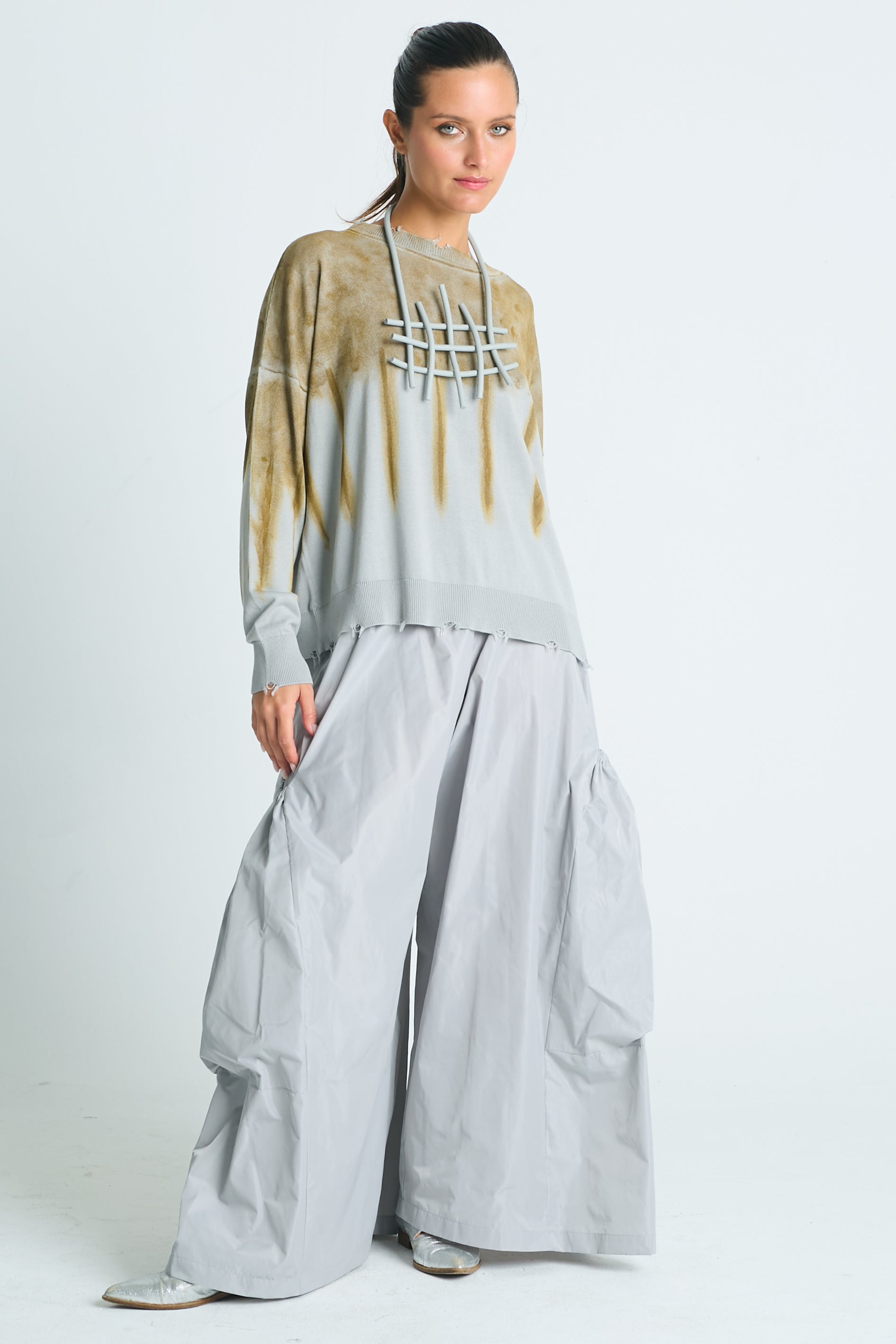 Pima Cotton Bled Out Tattered Crewneck Sweater