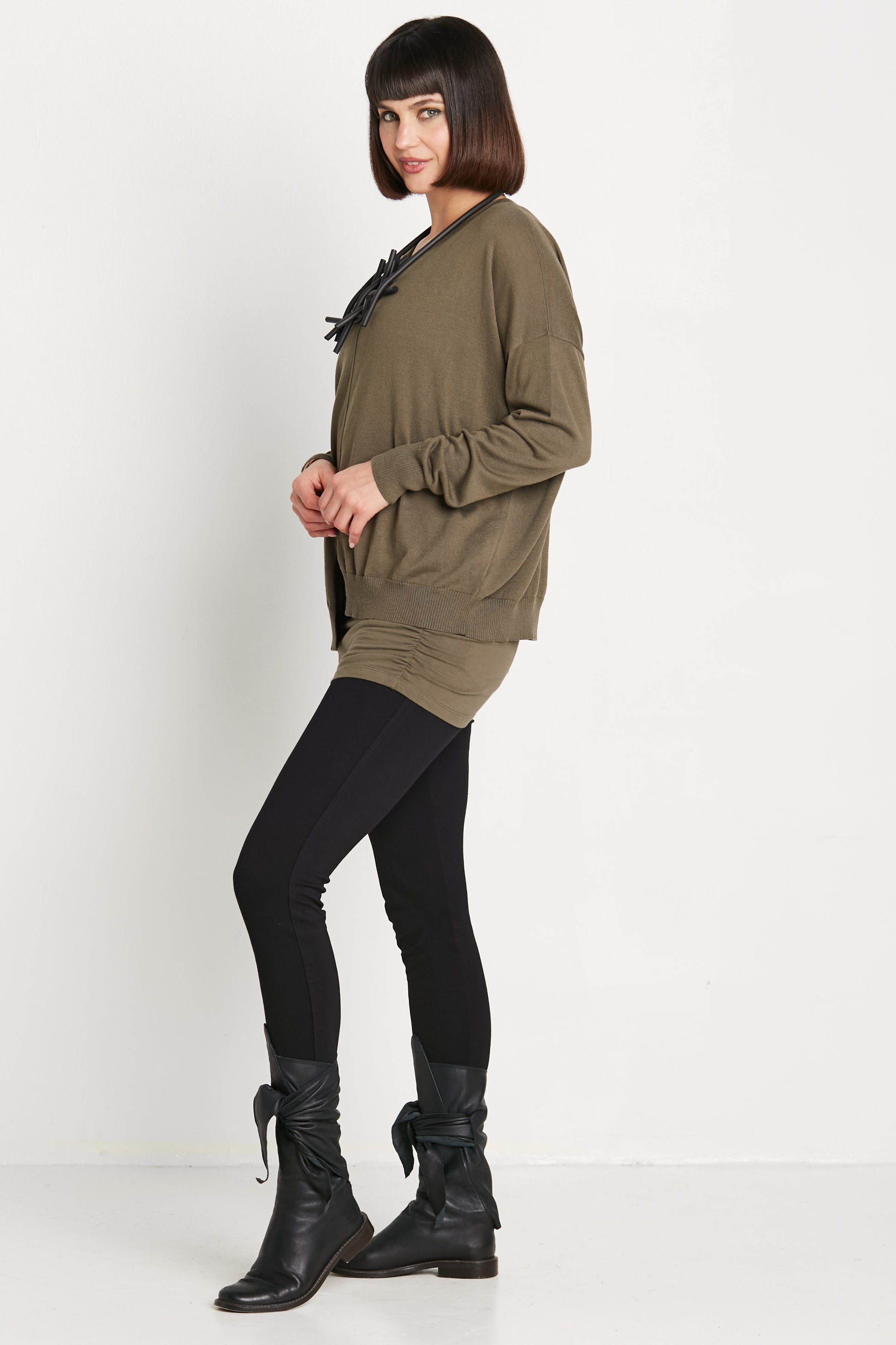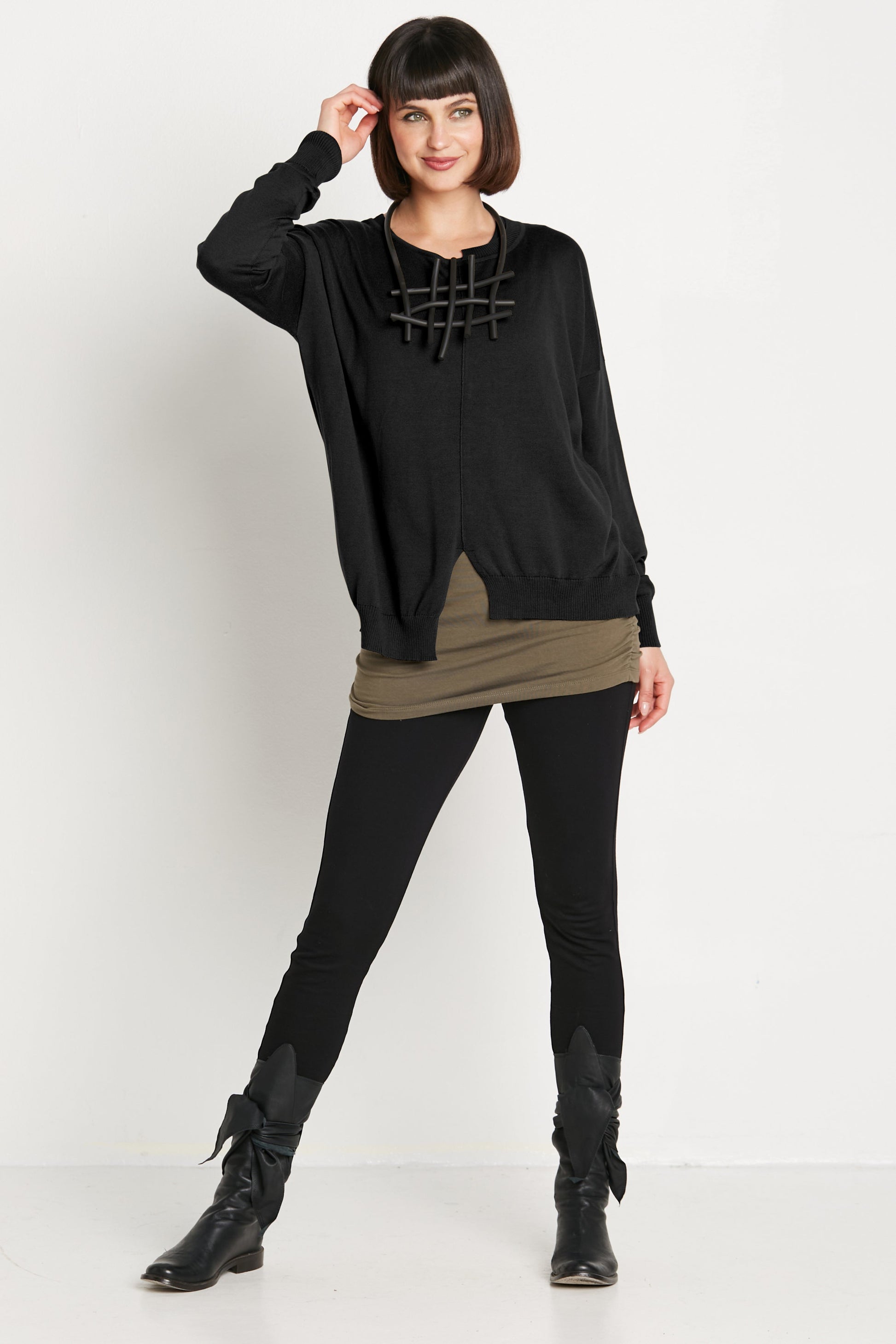 Indulge in contemporary elegance with this luxuriously soft crewneck sweater. Featuring a unique cutout design that adds a modern twist, this piece offers a relaxed yet stylish fit. Perfect for layering or wearing alone, it seamlessly transitions from casual days to chic evenings, ensuring you stay effortlessly fashionable and comfortable.