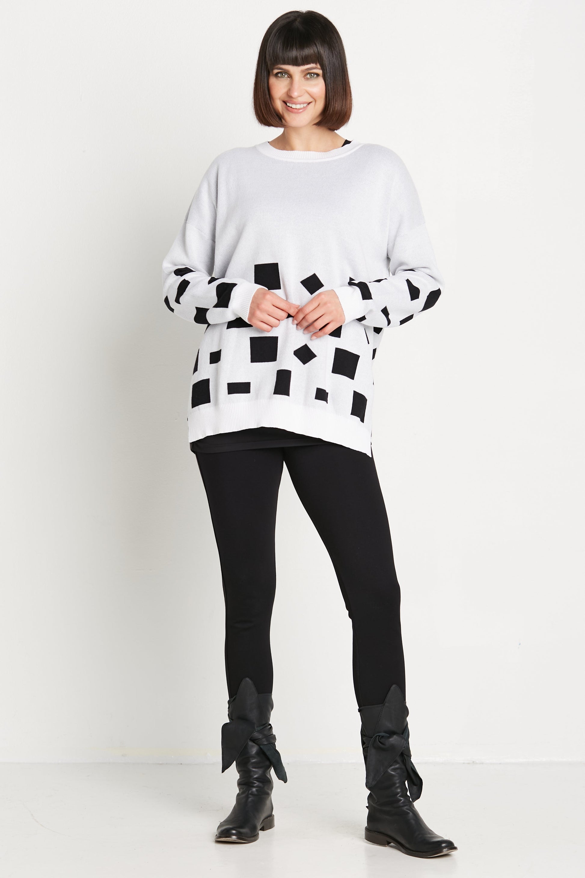 Experience the epitome of modern elegance with this luxuriously soft and breathable sweater. Its contemporary geometric patterns blend seamlessly with timeless sophistication, making it an effortless staple in your wardrobe. Perfect for any occasion, this piece drapes beautifully, ensuring you look chic and feel comfortable all day.