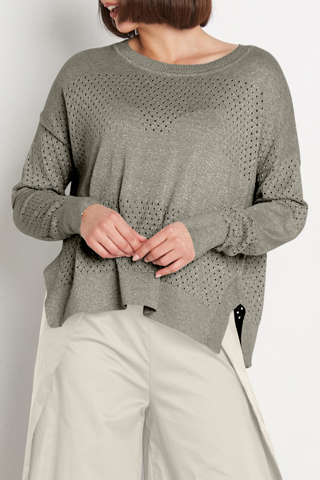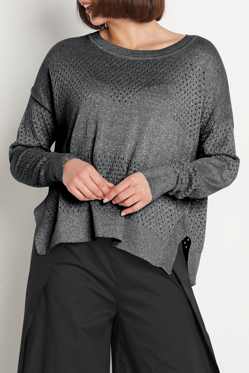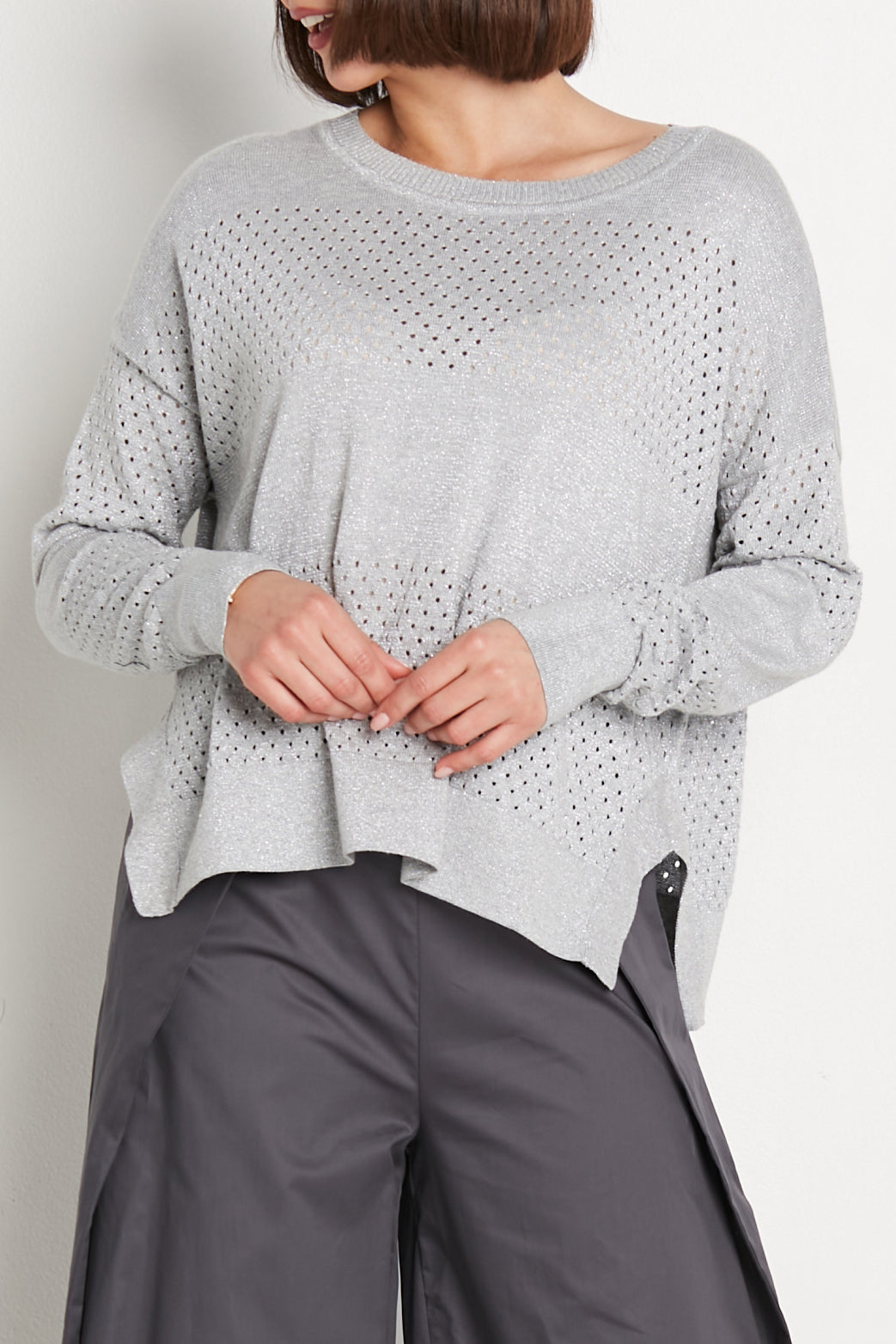 Add a touch of sparkle to your wardrobe with this elegant crewneck sweater. The soft and breathable fabric offers a comfortable fit, while the subtle glitter finish adds a playful yet sophisticated element. Perfect for layering or wearing alone, this versatile piece transitions effortlessly from casual outings to chic evenings.