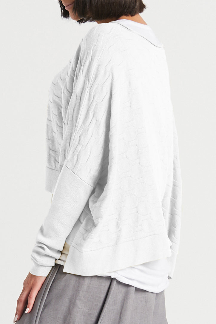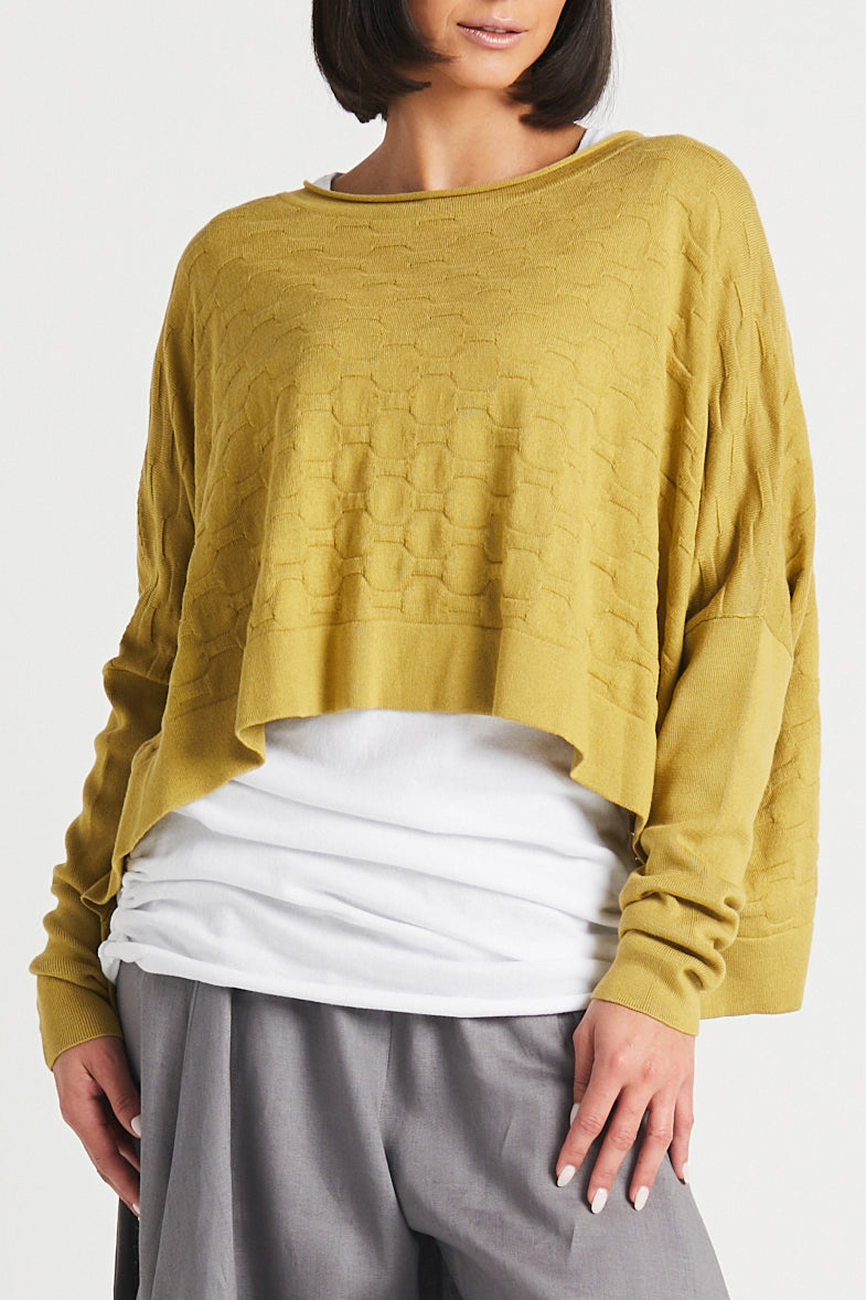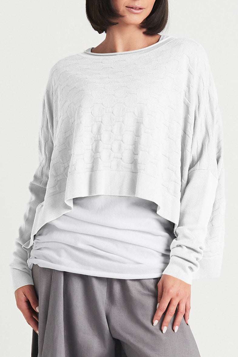 Elegant ease, found.? This luxe, pima cotton sweater is stitched with a honeycomb pattern for a textured take on a classic shape.? The stitch represented the hardworking nature of the honeybee.? Timeless piece to complete your wardrobe.? Soon to be your favorite new basic.