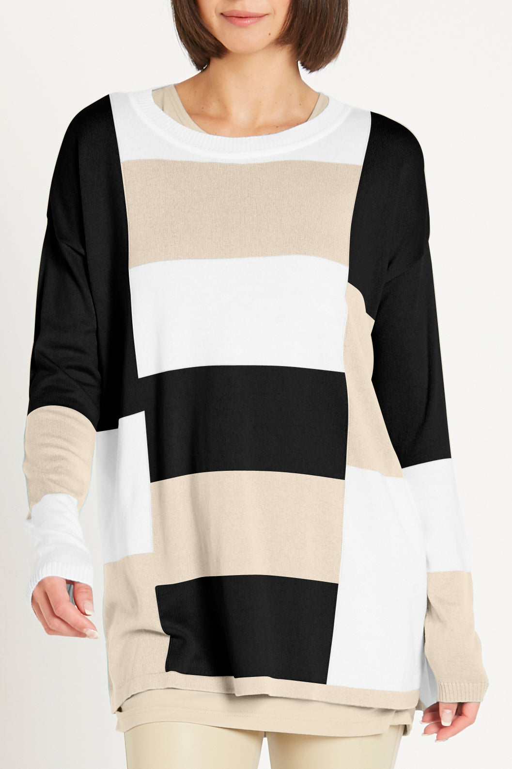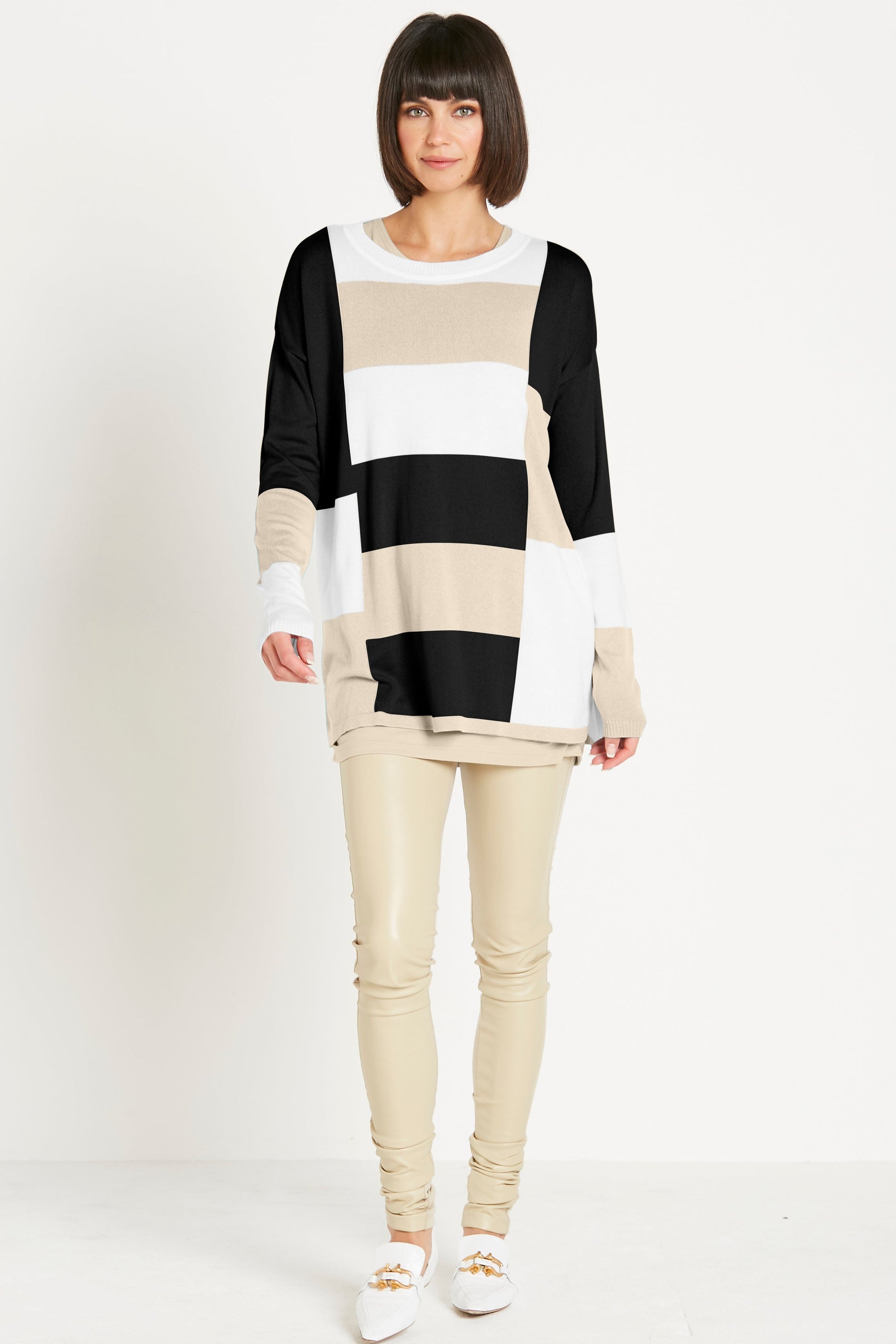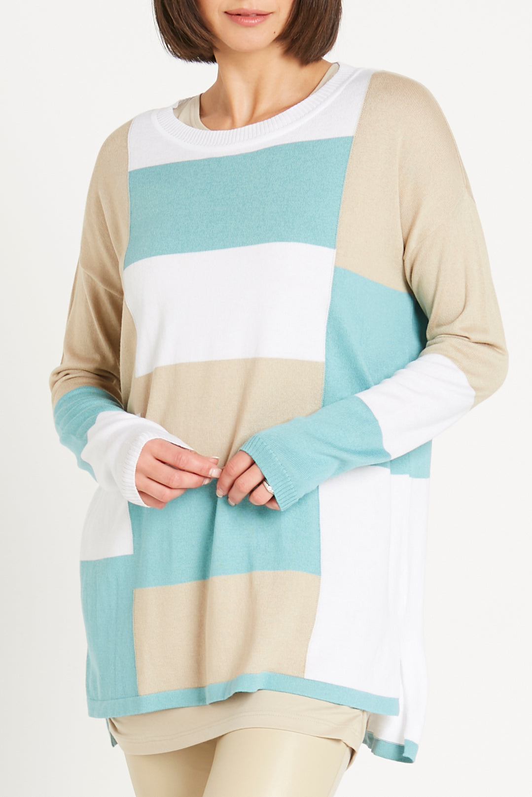 Our color block ties the fashion colors of the season together in beautiful Nile and Sand while mixed with White or is available in a neutral combo Black, White and Sand.