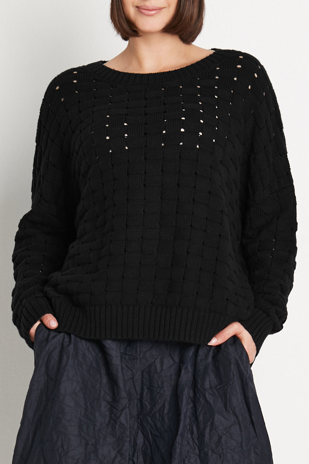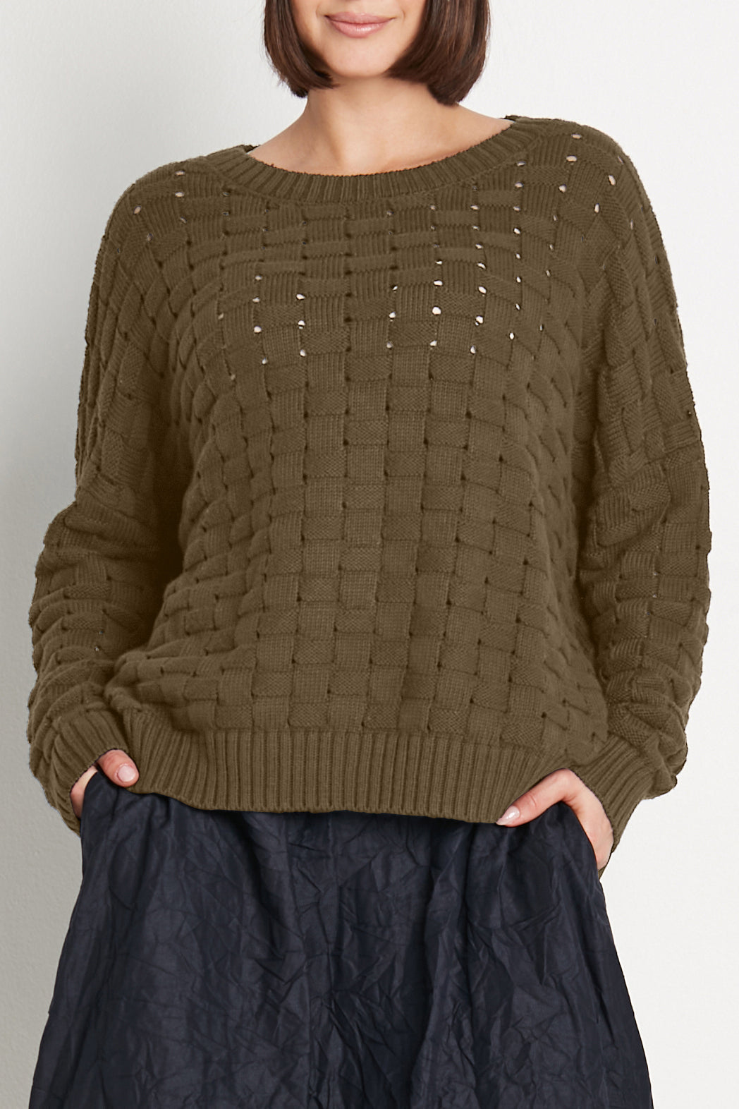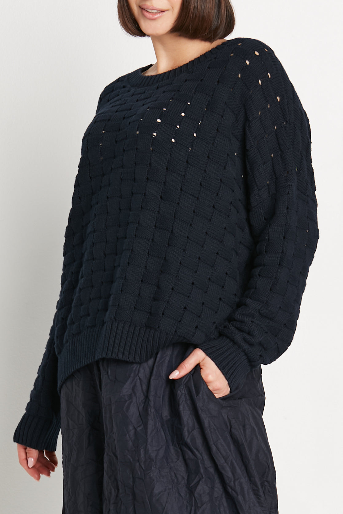 Intricate lattice design meets ultimate comfort in this chic sweater.