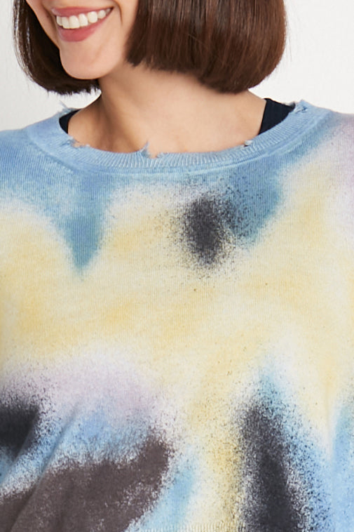 Embrace effortless chic with this tattered crewneck sweater, crafted from luxurious Pima cotton. The lightweight fabric offers a cozy embrace, perfect for leisurely days or creative outings. Its artful spray can design adds a modern twist, ensuring you stand out with minimal effort.? ?