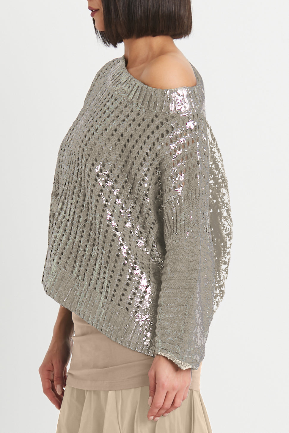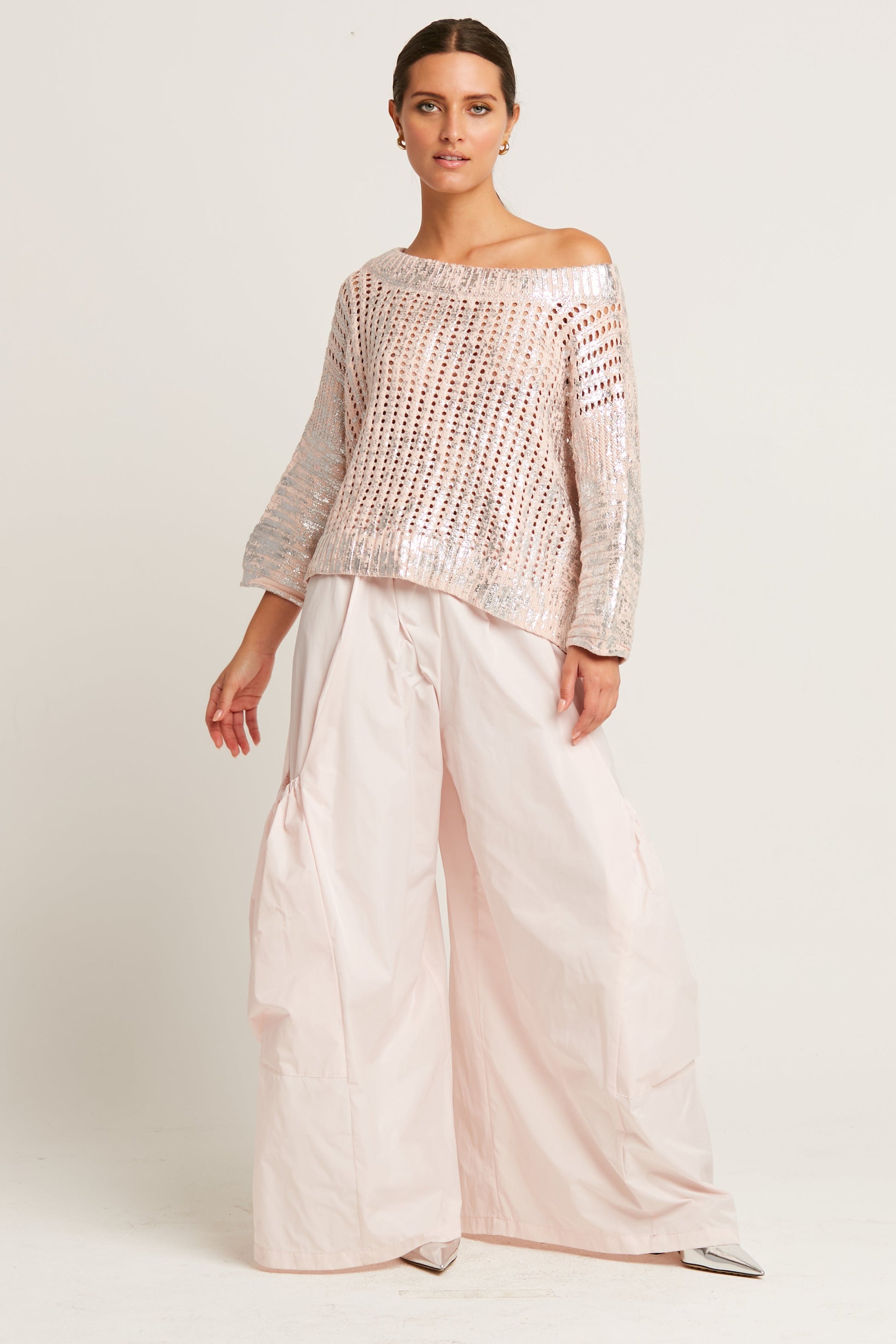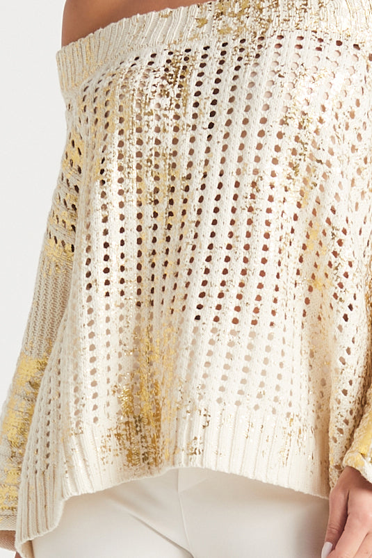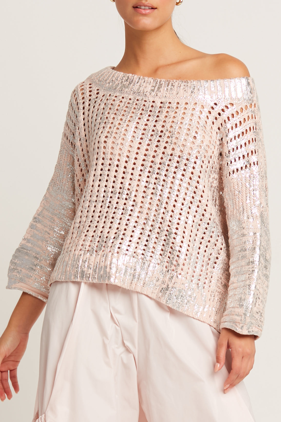 Pima Cotton Metallic Crochet Boatneck Sweater