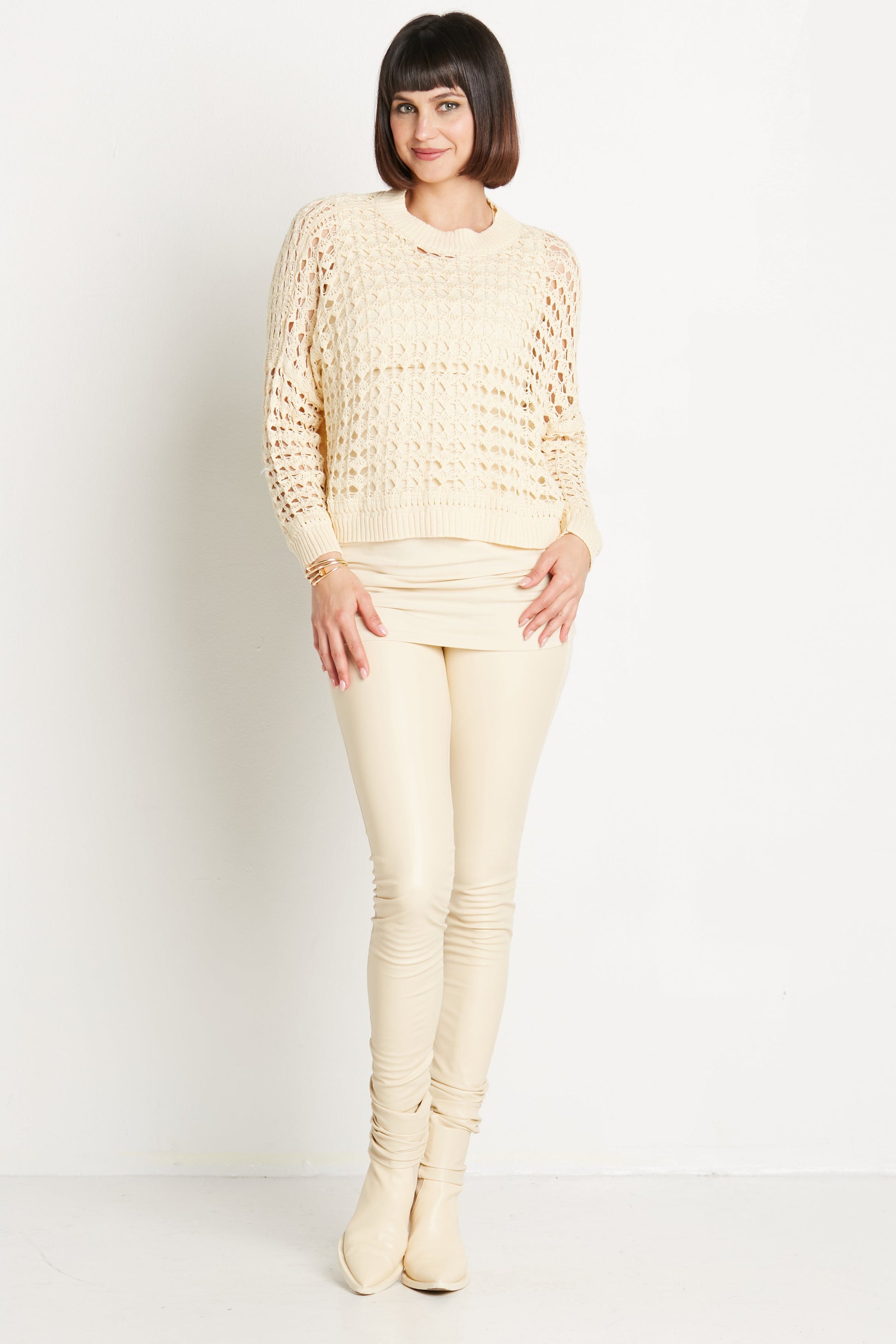 Embrace the delicate charm and artisanal allure of this handcrafted Pima cotton crochet creation. Its airy weave and gentle lavender hue infuse a touch of bohemian elegance into your ensemble. Meticulously designed, this piece pairs the comfort of Pima cotton with the grace of a bygone era, making it a versatile treasure for your wardrobe. Revel in its lightweight comfort and enchanting aesthetic, perfect for layering or as a standalone statement.?