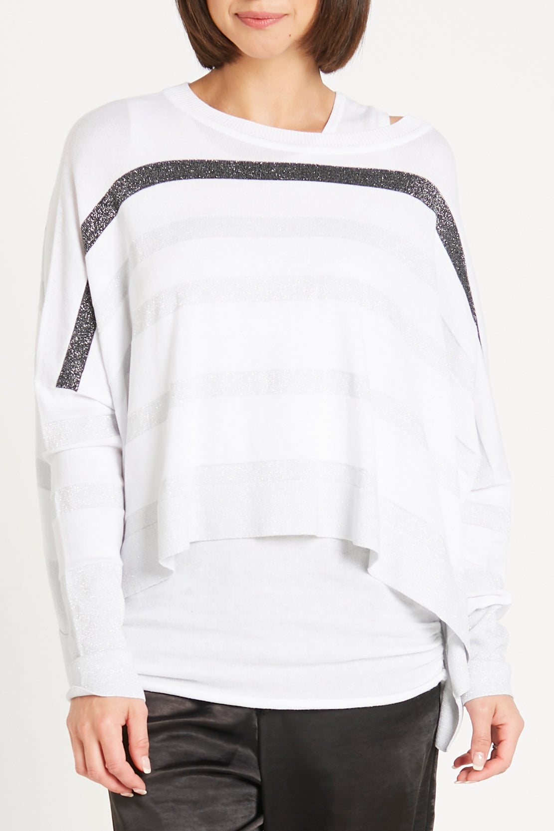 All that glitters is not gold or silver, It's a beautiful modern mix on stripes that will take you day into night! Easy and flowy, our mini glitter drapes away from the body and is ever so chic!?