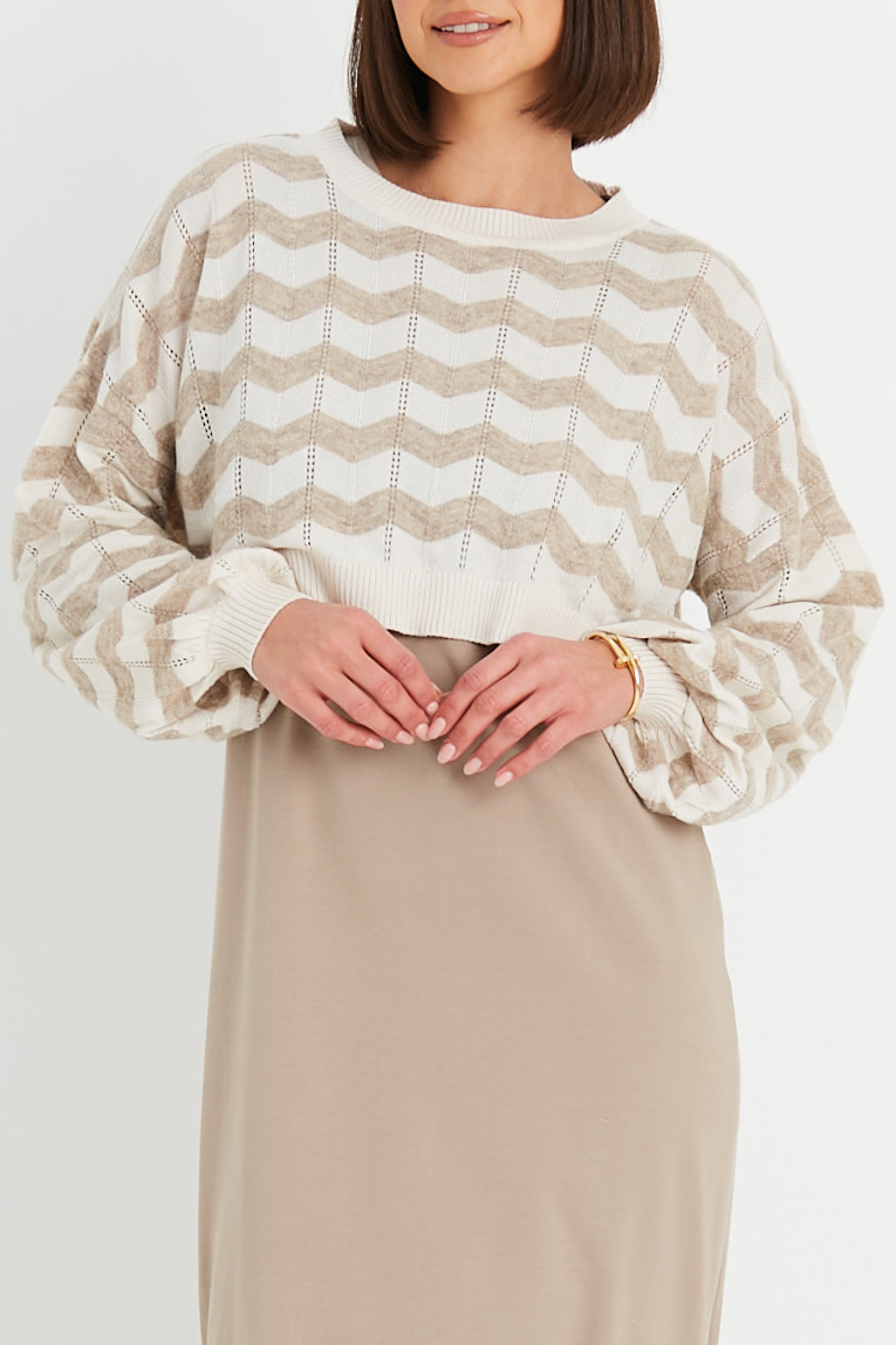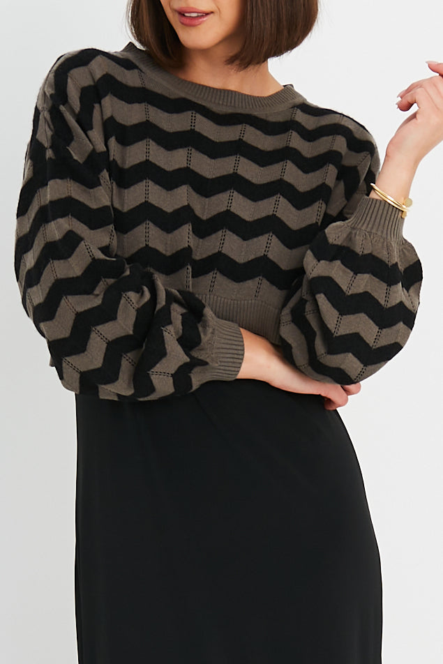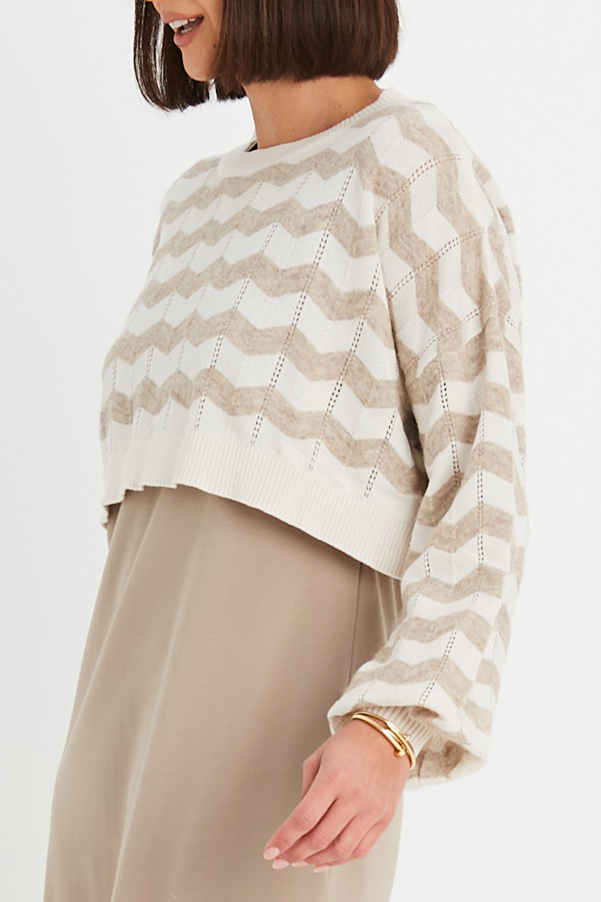 Pima Cotton Mix Mini Zig Zag Crewneck Sweater