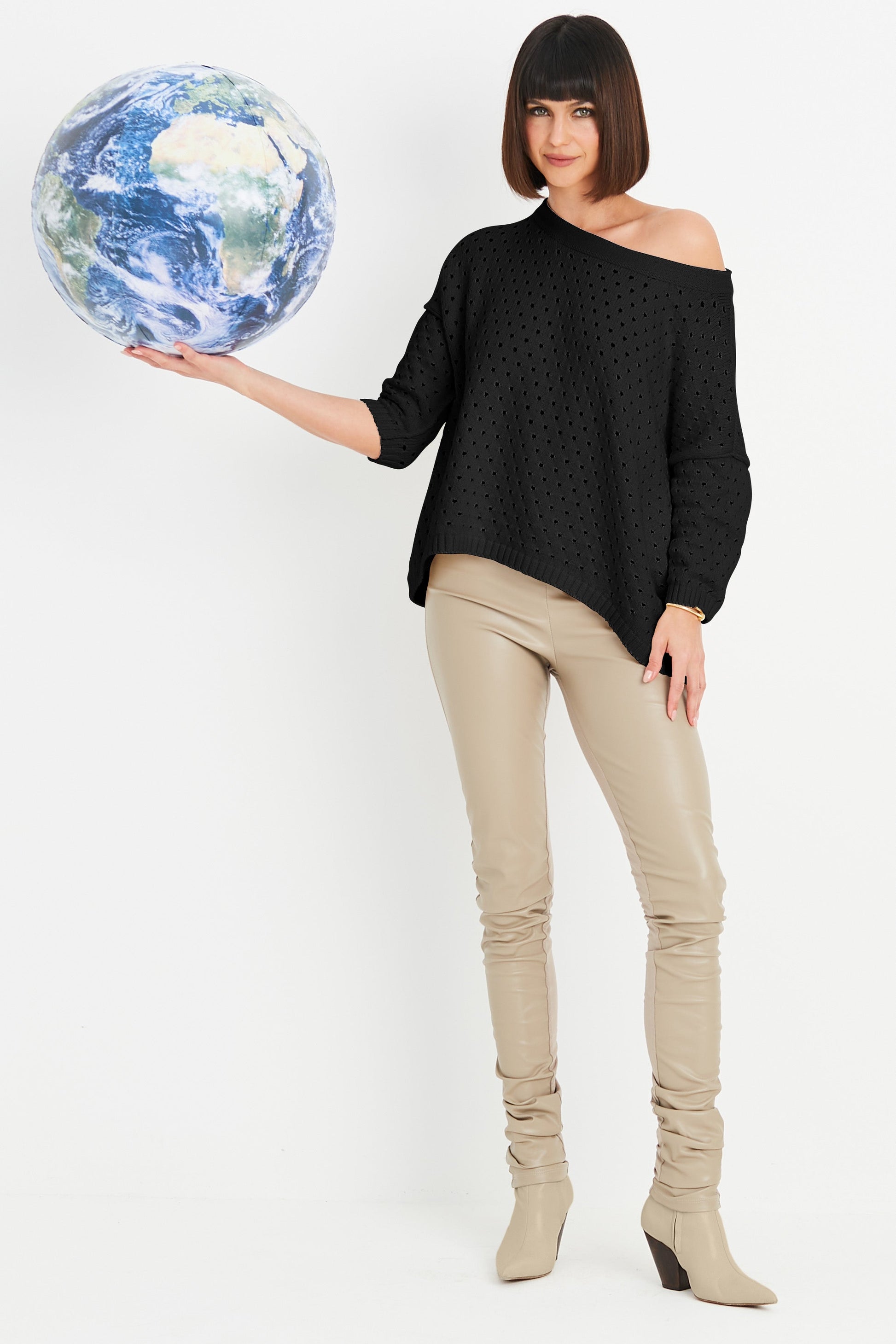 Elevate your style with our luxe Pima Cotton knit. Boasting intricate hole-knit detailing, this piece epitomizes elegance and comfort. Seamlessly blending sophistication with everyday wearability, it's a chic essential crafted for the discerning fashionista. Your wardrobe's newest statement awaits.