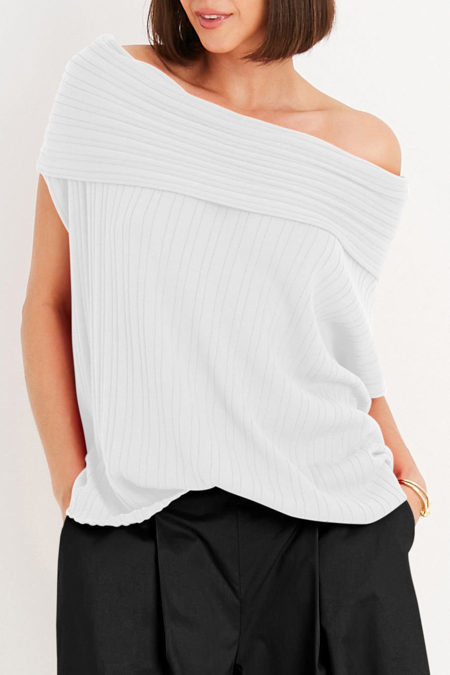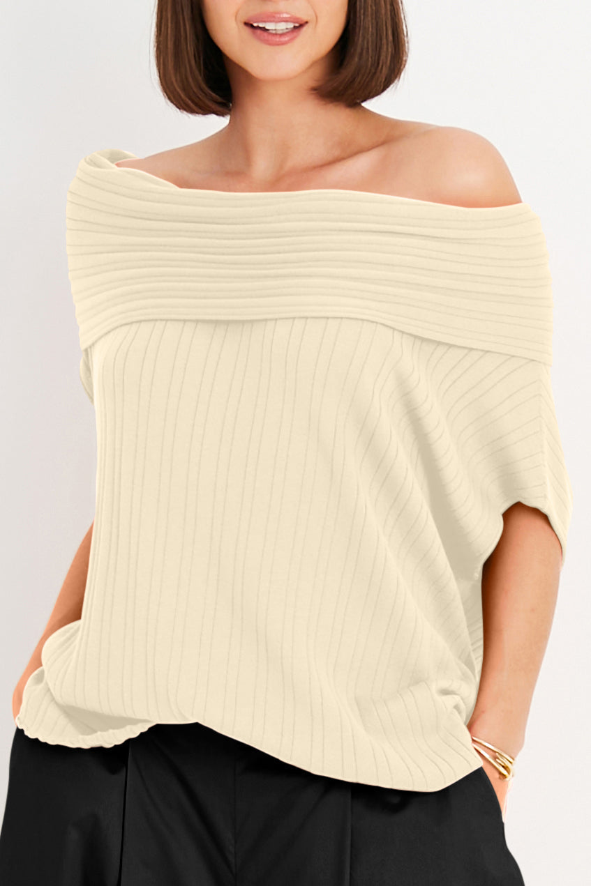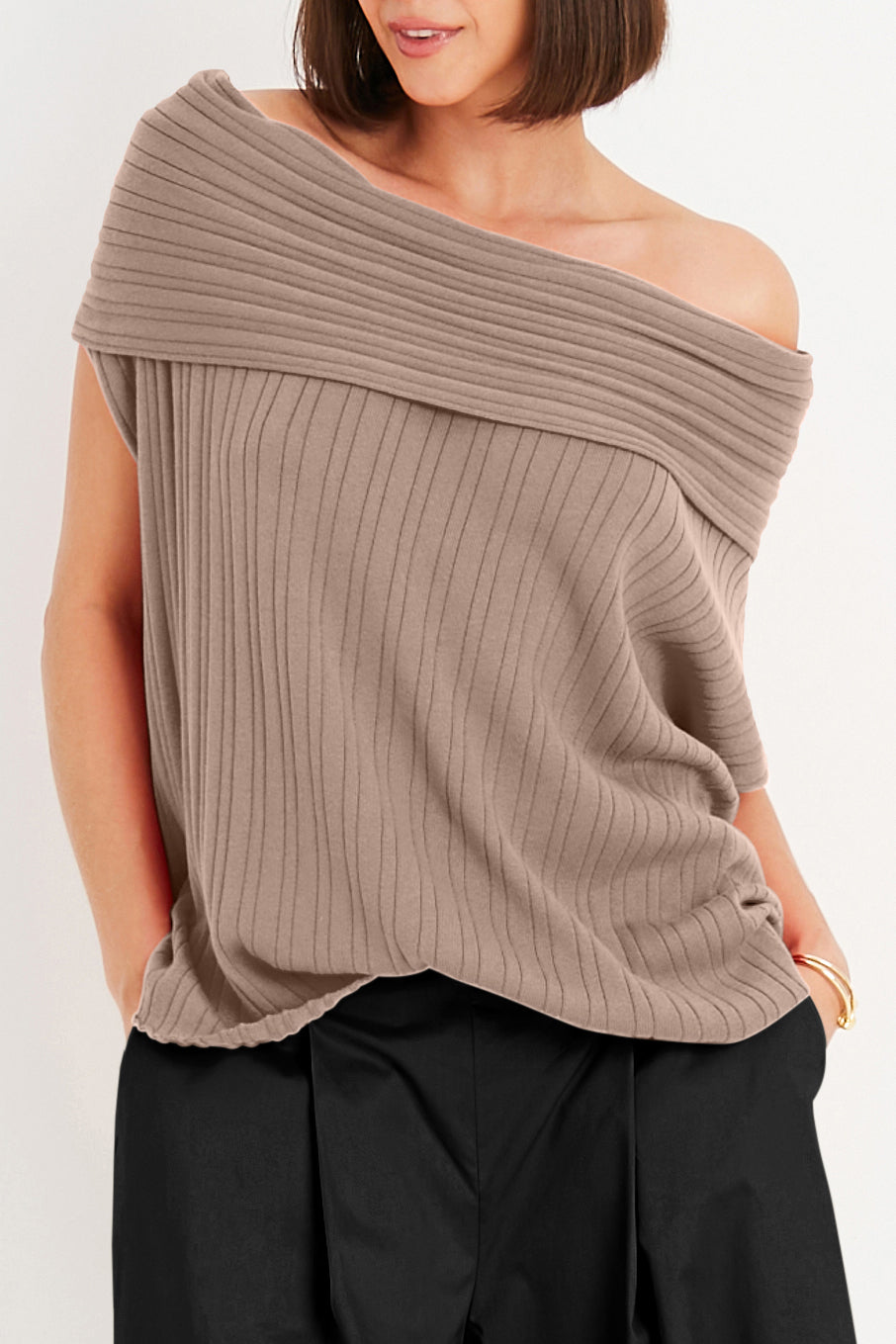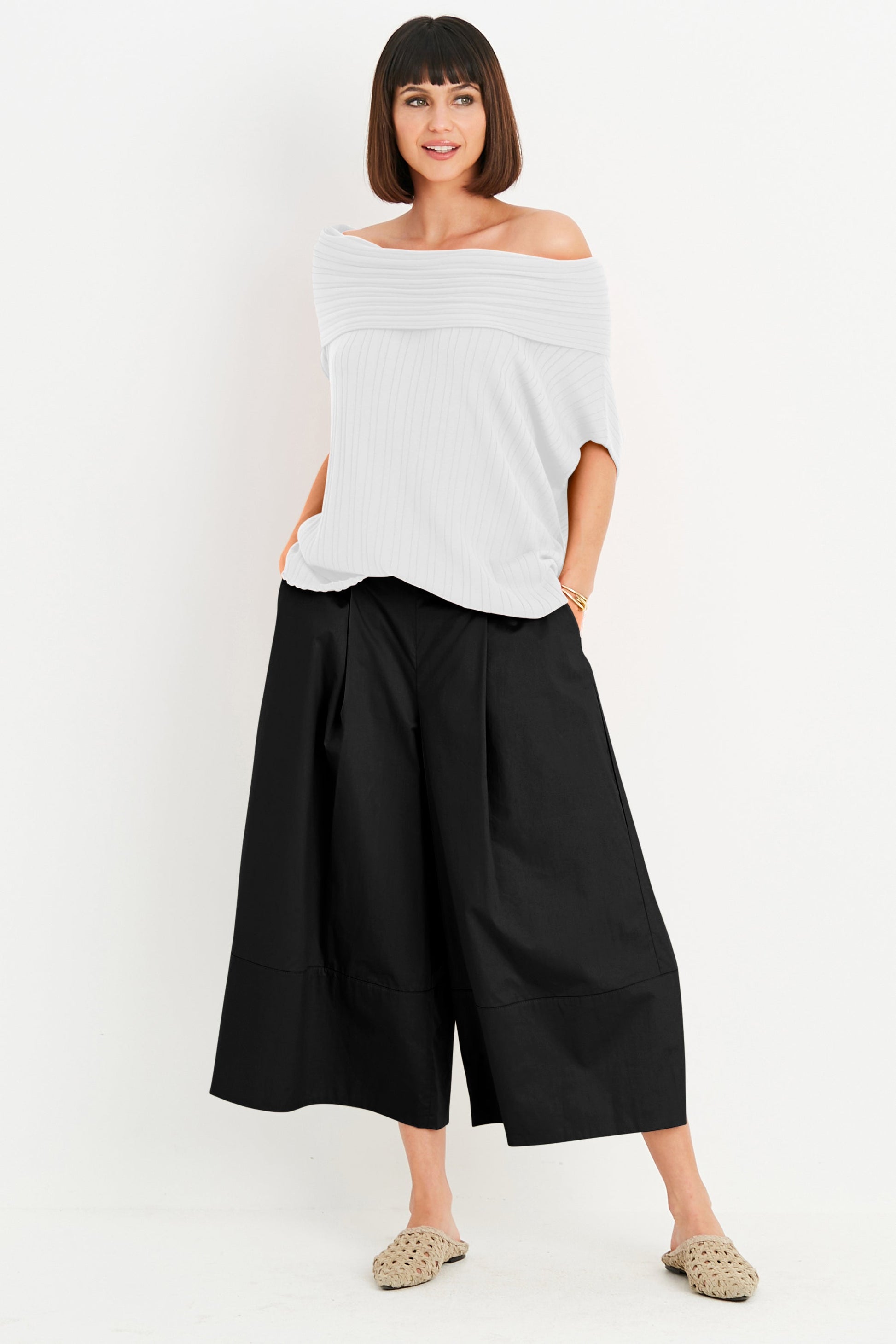 Pima Cotton Ribbed Off The Shoulder Sweater
