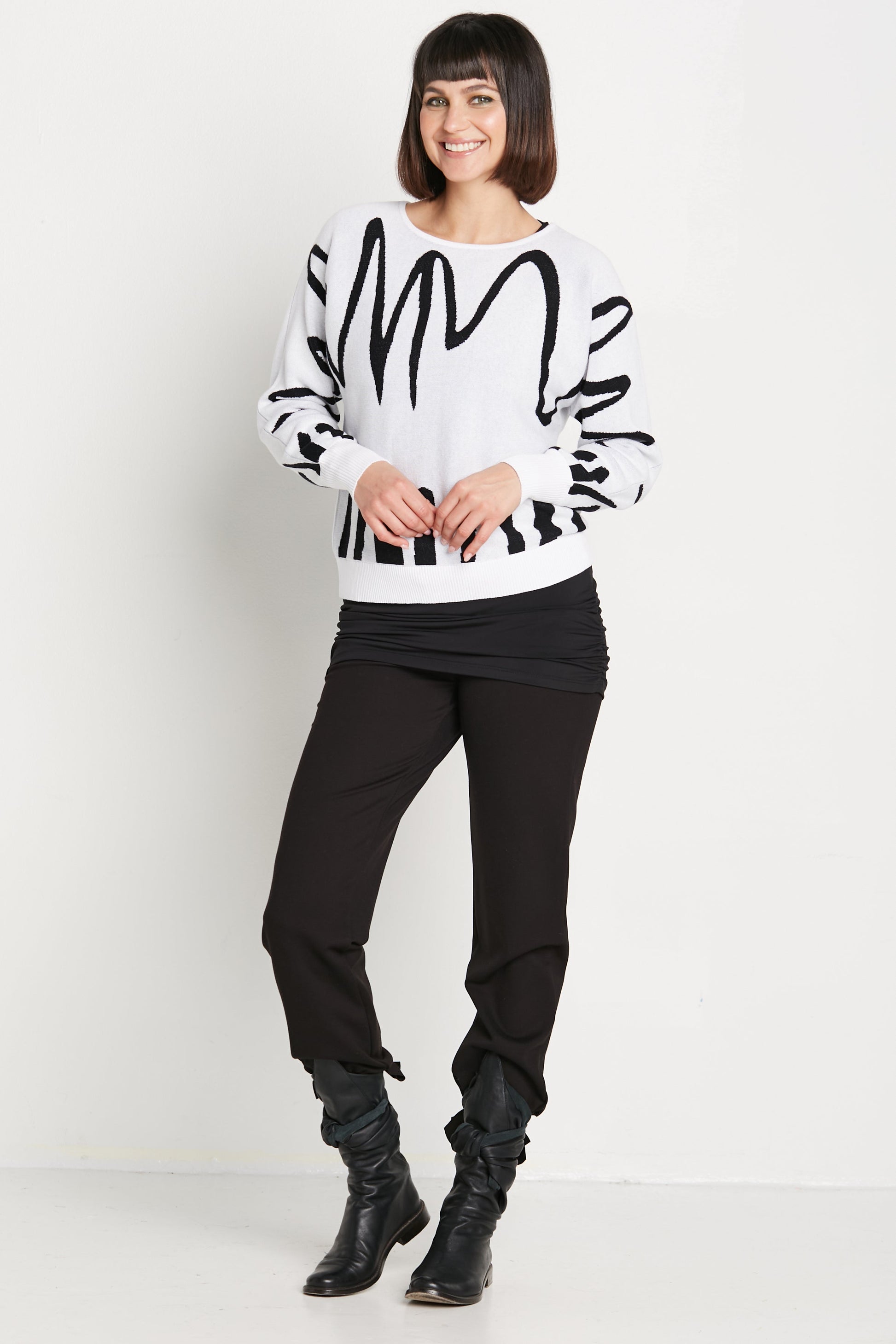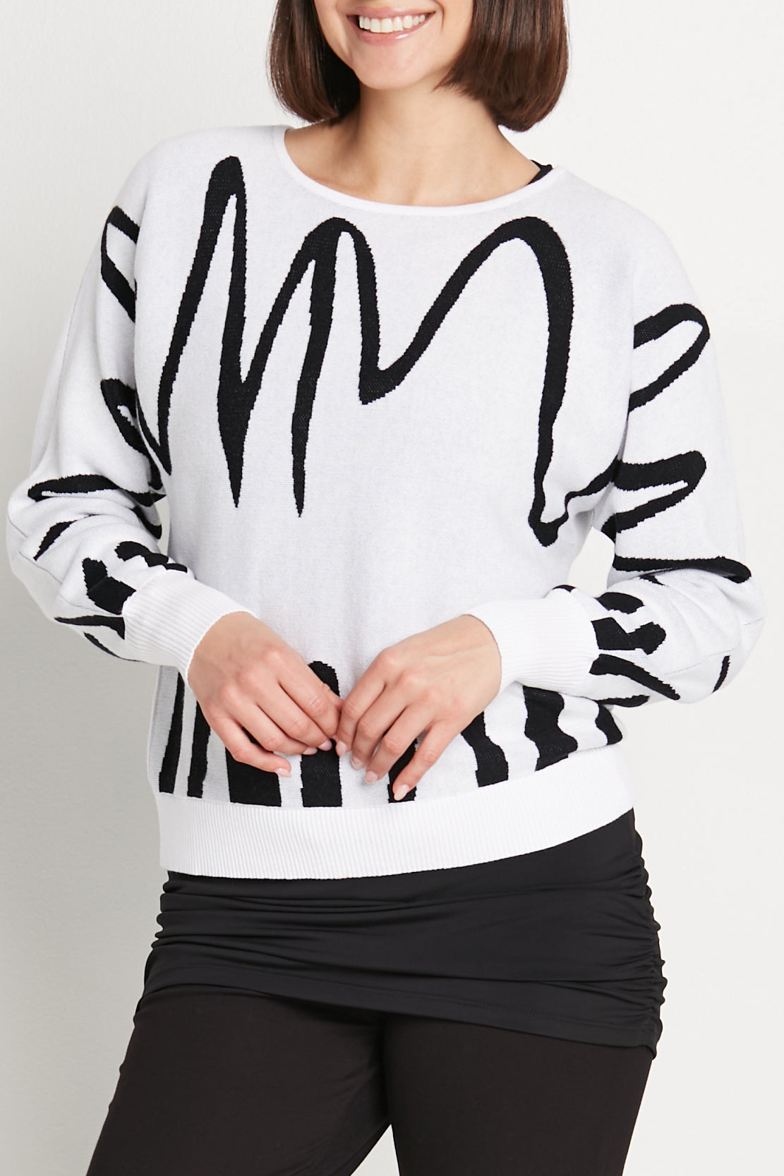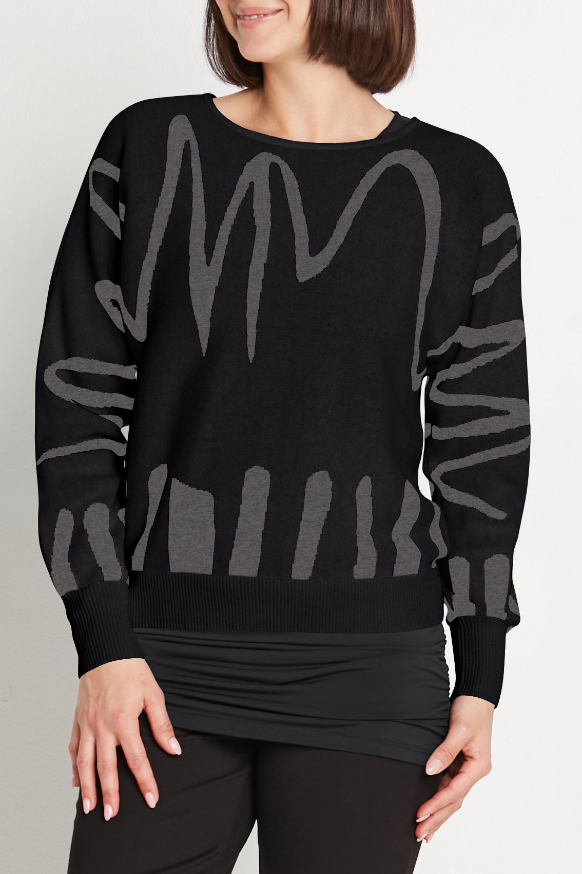 Artistic scribbles meet ultimate comfort in this chic crewneck sweater.