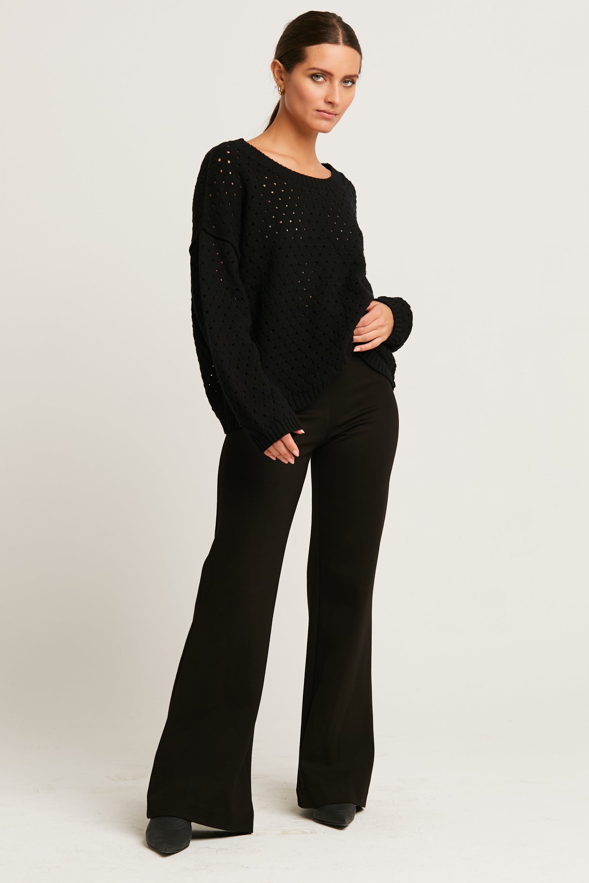 Indulge in cozy sophistication with this lightweight, textured crew neck sweater. Crafted from luxurious Pima cotton, this piece combines relaxed elegance with a hint of edge. The shot-up knit pattern lends a breathability perfect for layering, allowing subtle glimpses underneath while maintaining an effortless style. Embrace its soft, easy fit that enhances any outfit from day to night.