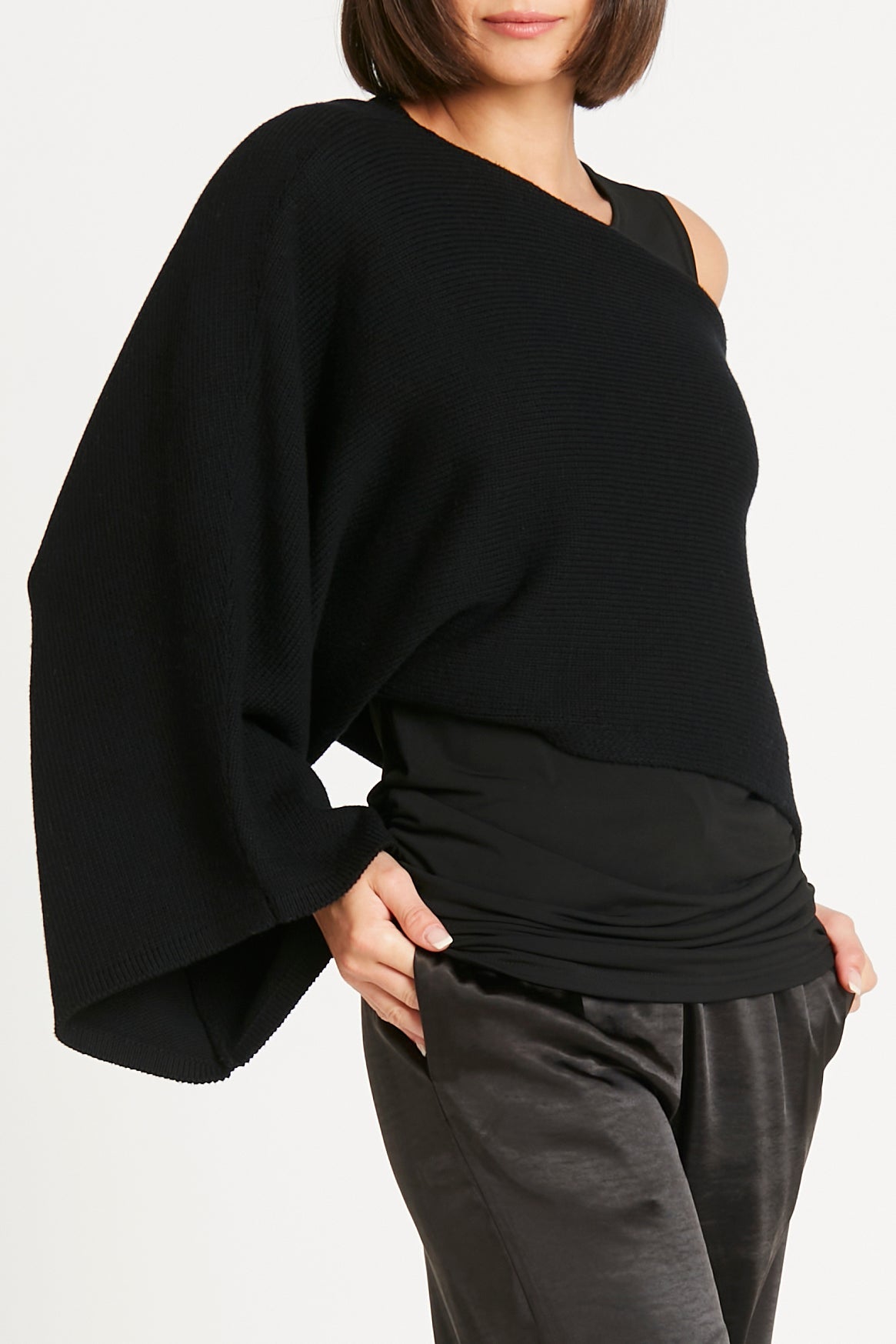 Our versatile chic layer can be worn as a poncho or a top.? Layer over our tanks.? Style with our new sateen drawstring pants, big pocket pants or simply a luxurious spa dress. Closet-worthy essential.?