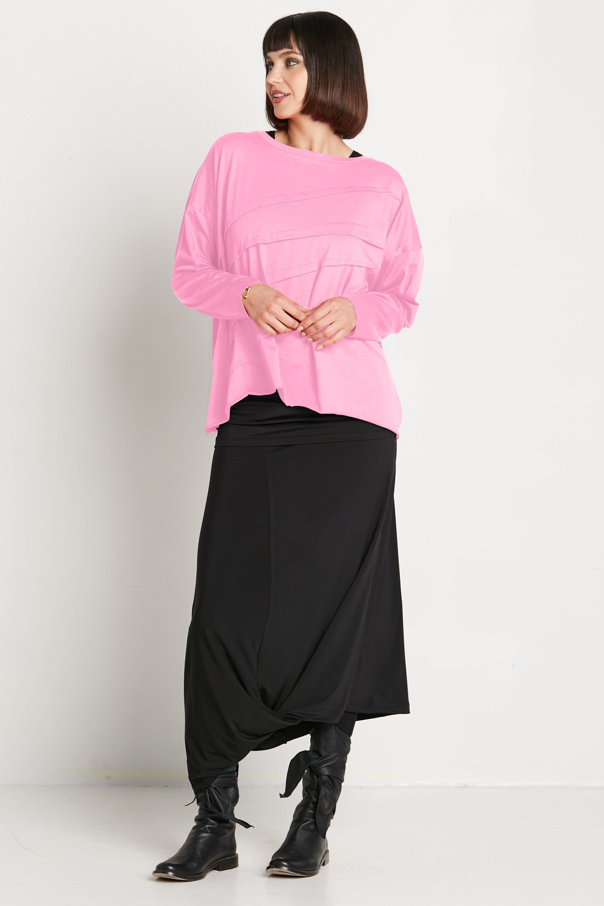 With a modern twist of raw edges, you'll be looking stylish and sophisticated with tucking details all around. Plus, the buttery-soft fabric and easy-care tick all the boxes! And who doesn't love a tee that comes in every color??
