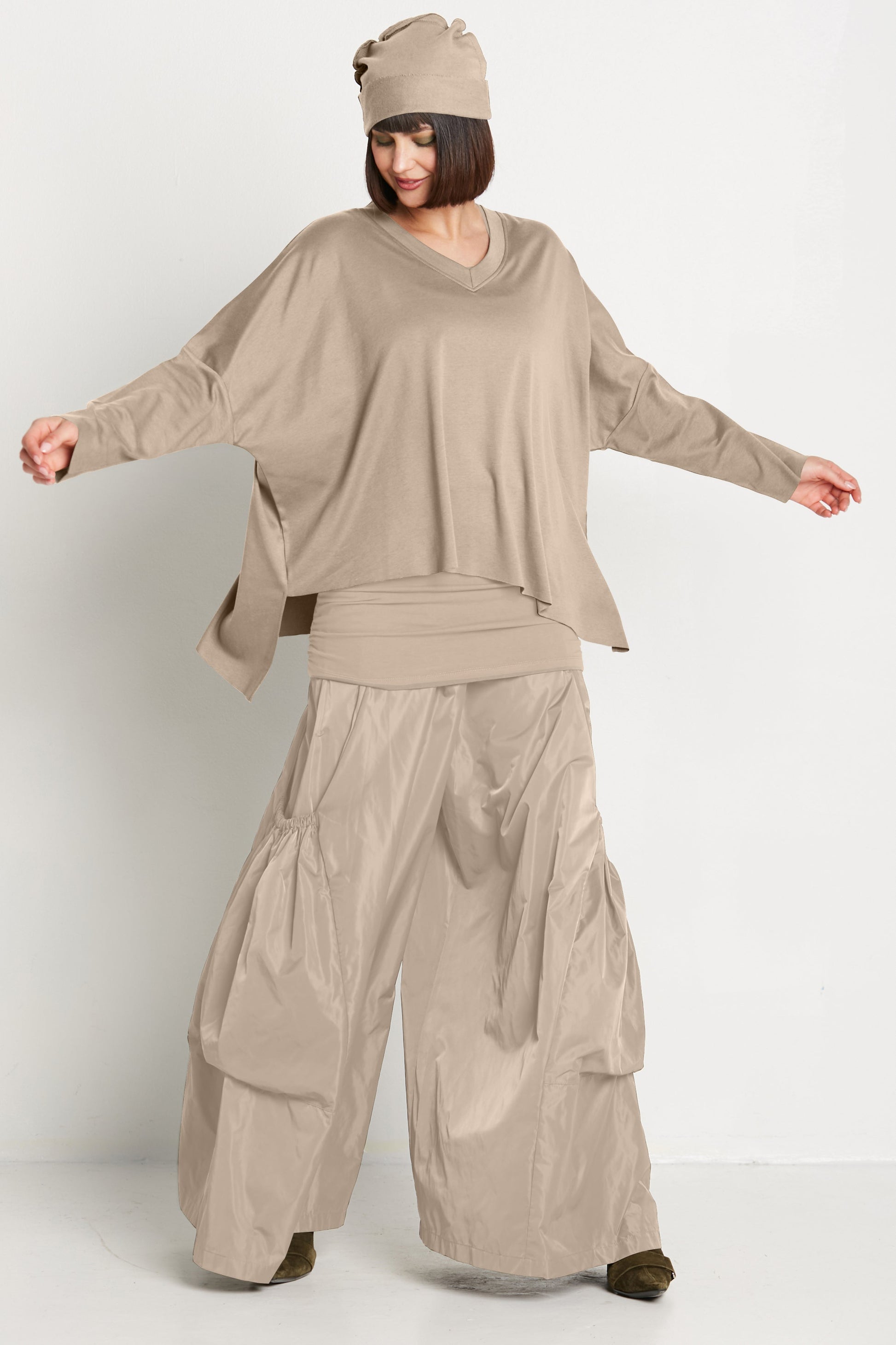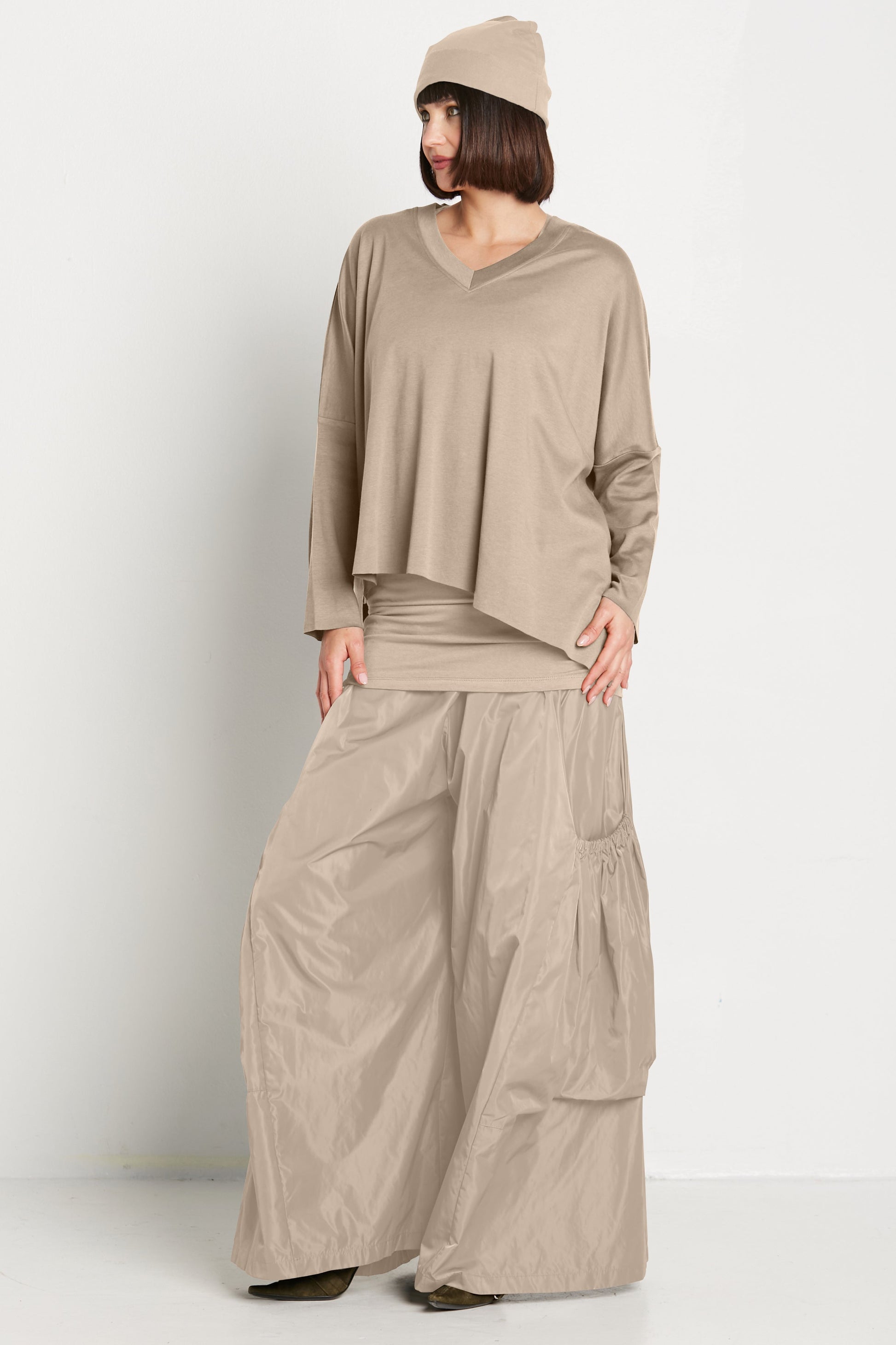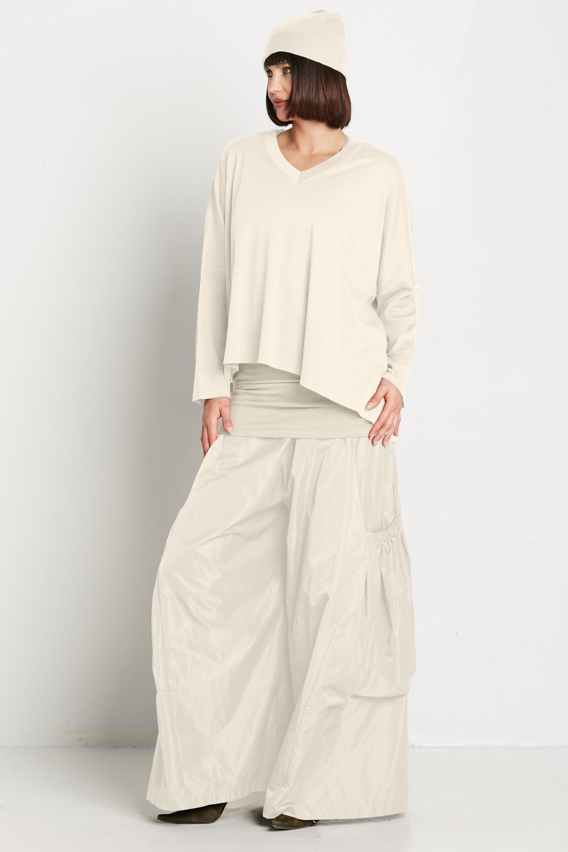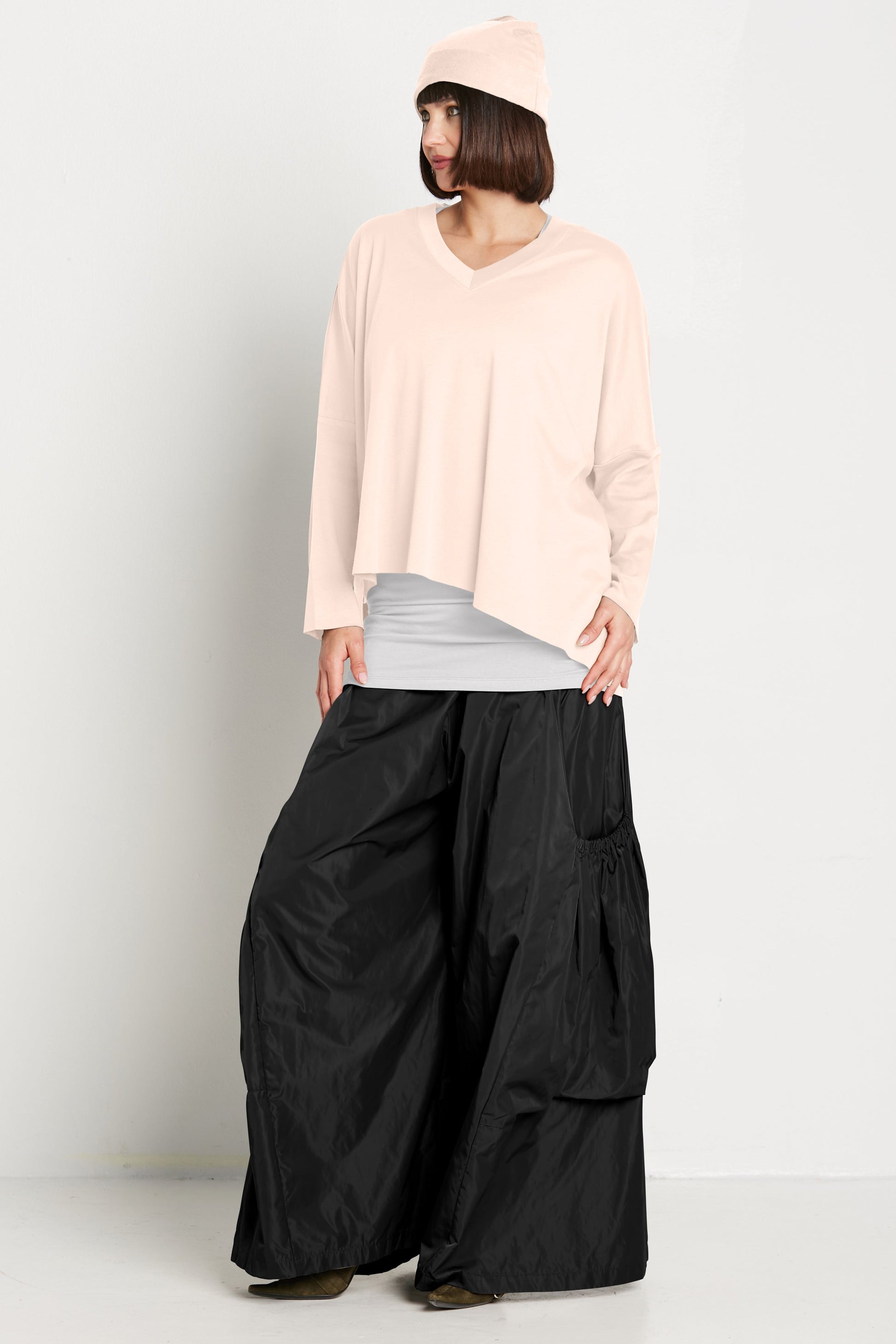 Experience the soft, breathable luxury of this V-neck tee, crafted from premium Pima cotton. Its relaxed fit and subtle asymmetrical hem offer a modern touch, while the fabric's smooth texture ensures comfort throughout the day. Perfect for layering or wearing solo, this tee effortlessly transitions from a casual brunch to a relaxed evening at home.?