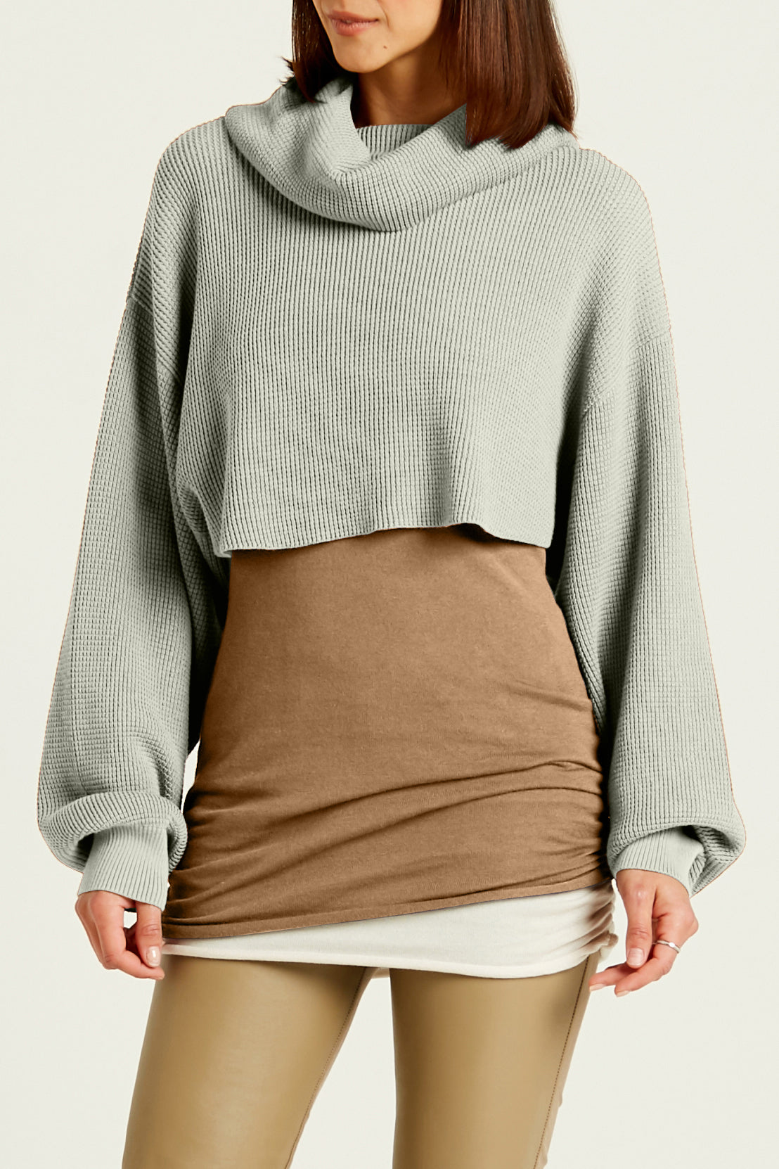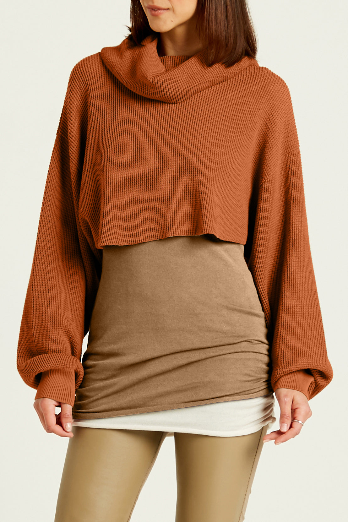 Our Pima Cotton Waffle Shrug is the quintessence of versatile layering. With its lightweight feel and thermal properties, it's a travel essential that transitions effortlessly from a cozy morning at home to a stylish evening out. The shrug features drop shoulders and ribbed blouson sleeves for a blend of comfort and chic sophistication.