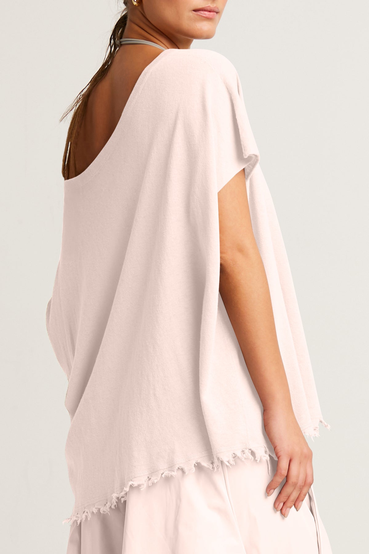 Delicate yet bold, this knit combines elegance with comfort. The Pima Linen fabric offers an airy feel, while the wide butterfly sleeves and subtle raw edge add effortless movement and charm. Designed for versatility, it drapes beautifully for an off-the-shoulder look or a relaxed classic silhouette. Perfect for layering or wearing solo, this style exudes timeless ease and modern sophistication.