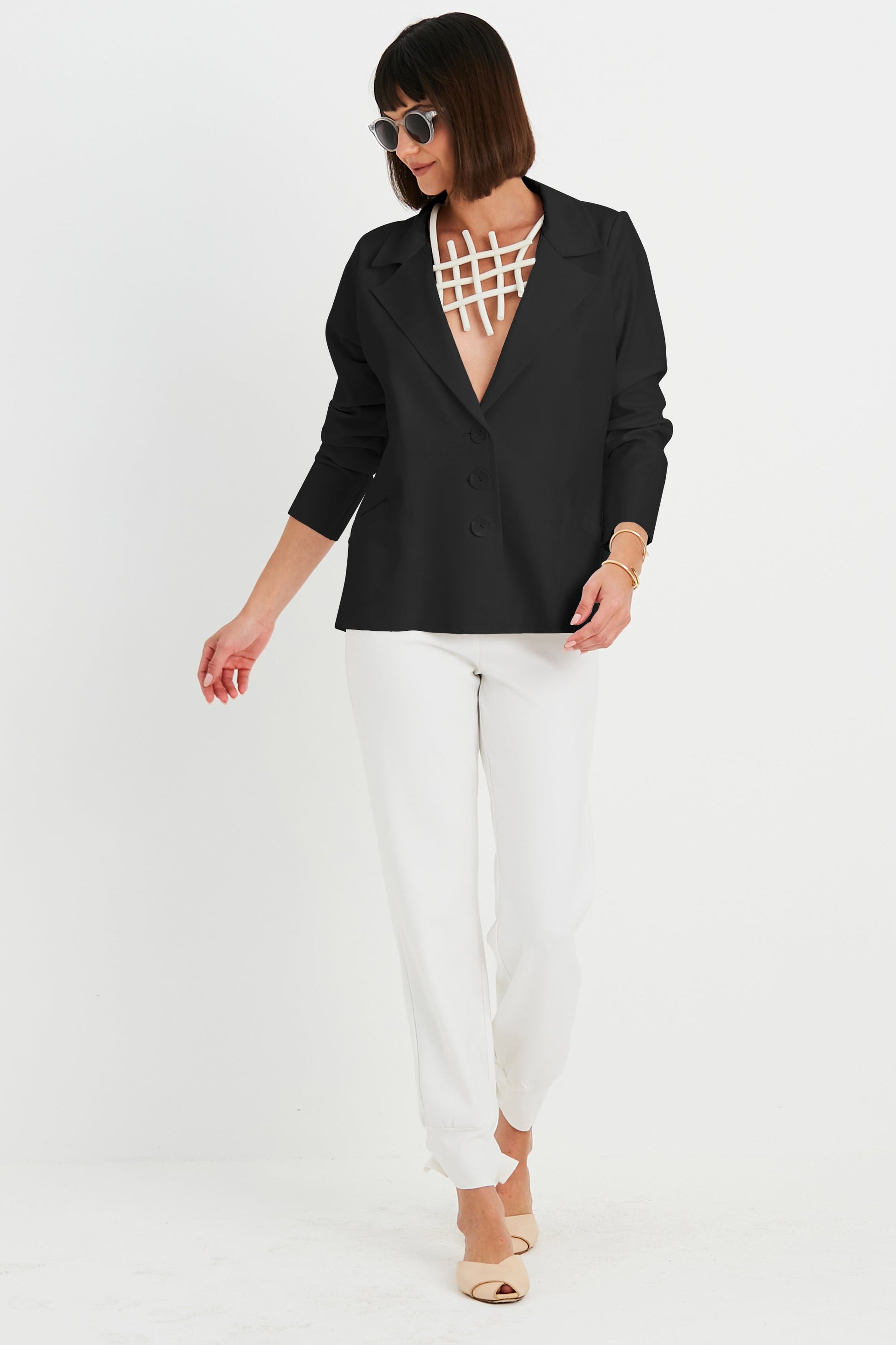 Experience the fusion of luxury and leisure with our?"Boyfriend" Blazer - a modern twist on classic tailoring. Its relaxed yet structured silhouette, accentuated by the bold side buttons, makes for a versatile piece that embodies confident ease. With a nod to traditional design through a boxy cut, it's the perfect blend of comfort and high-end fashion.
