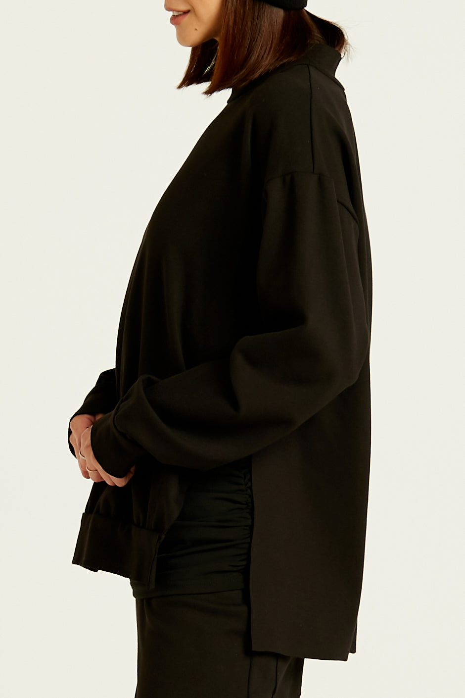 On the hunt for your next favorite top?! Look no further! Our side slit top made of scuba feels and looks divine. Designed with side slits and banded neckline, cuffs and hem. Fashion basic wonder is made for layering and loads of style!??