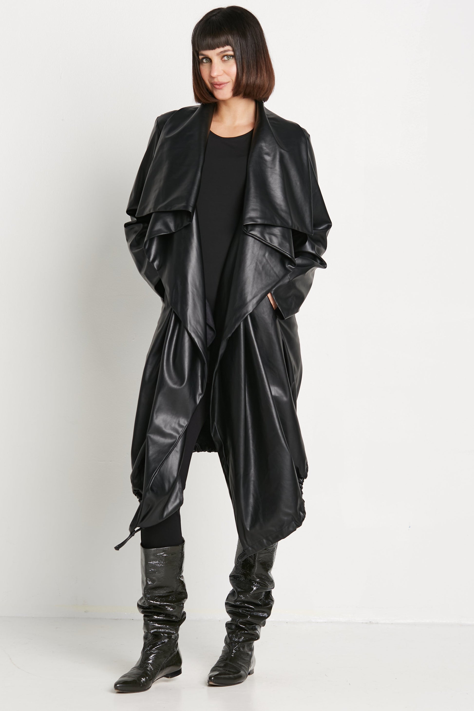 Vegan Leather Cascade Coat