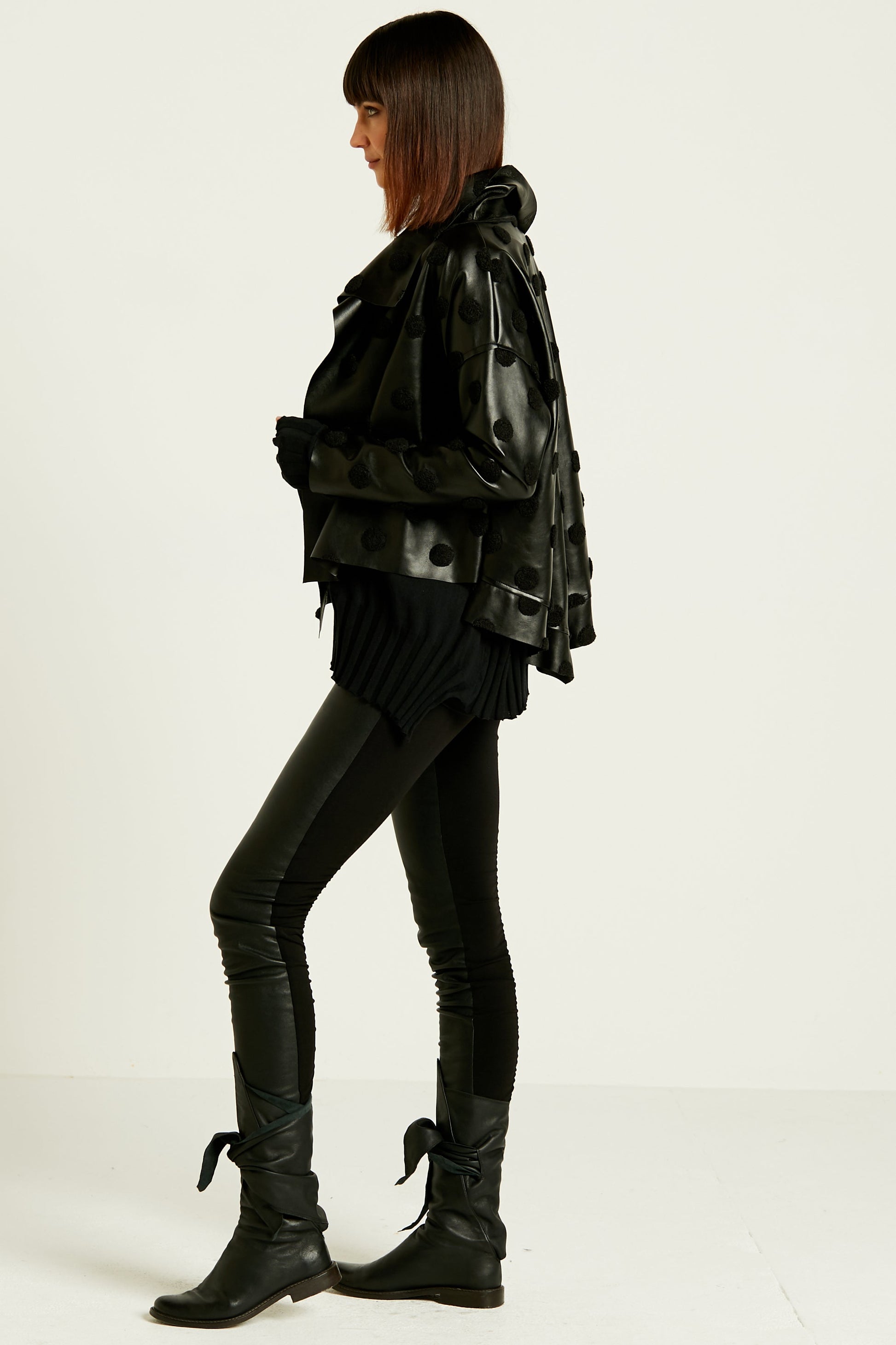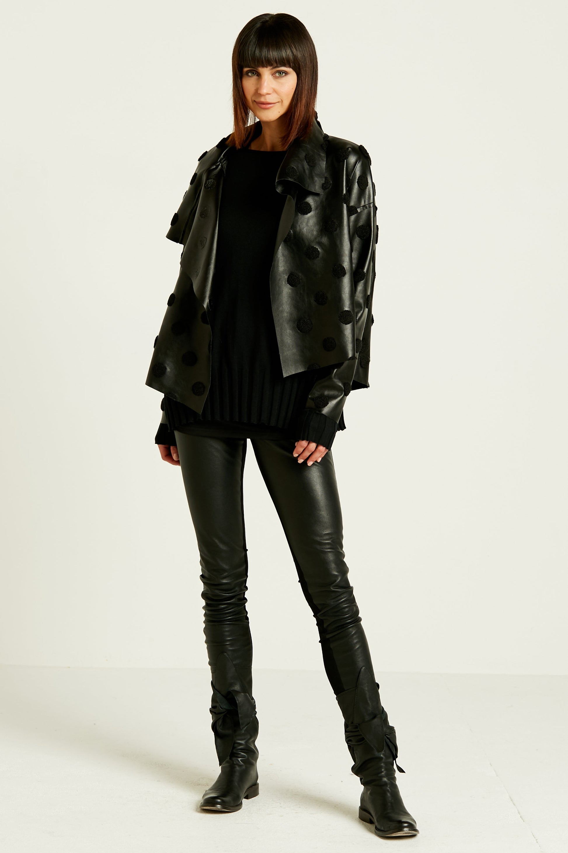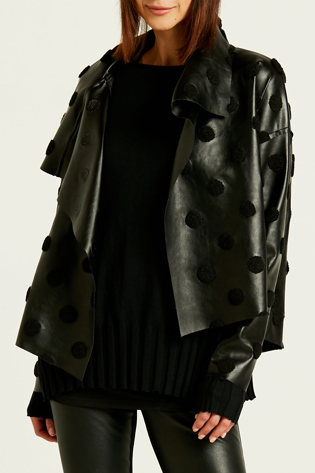 Vegan Leather Cropped Asymmetrical Dots Jacket