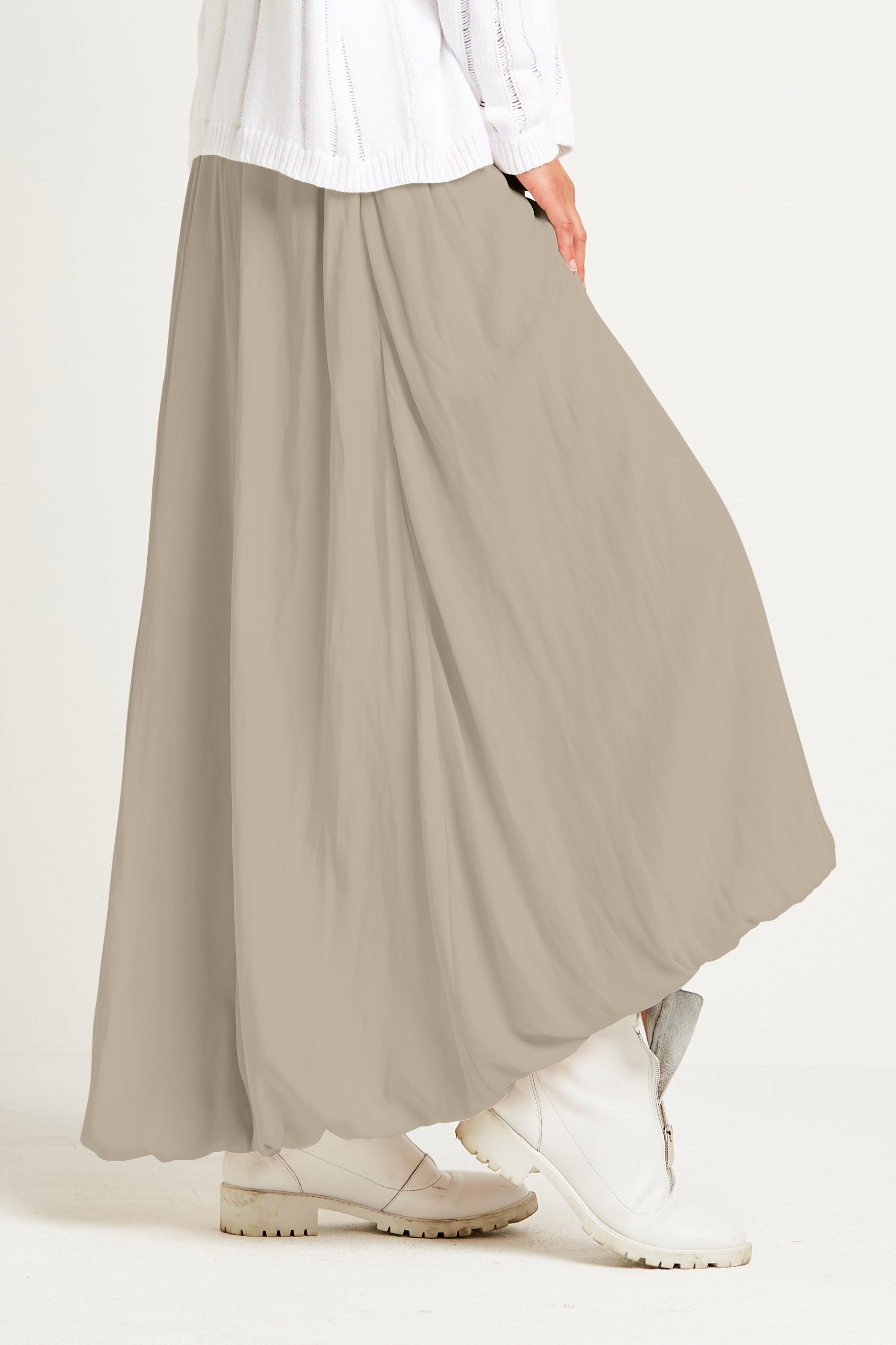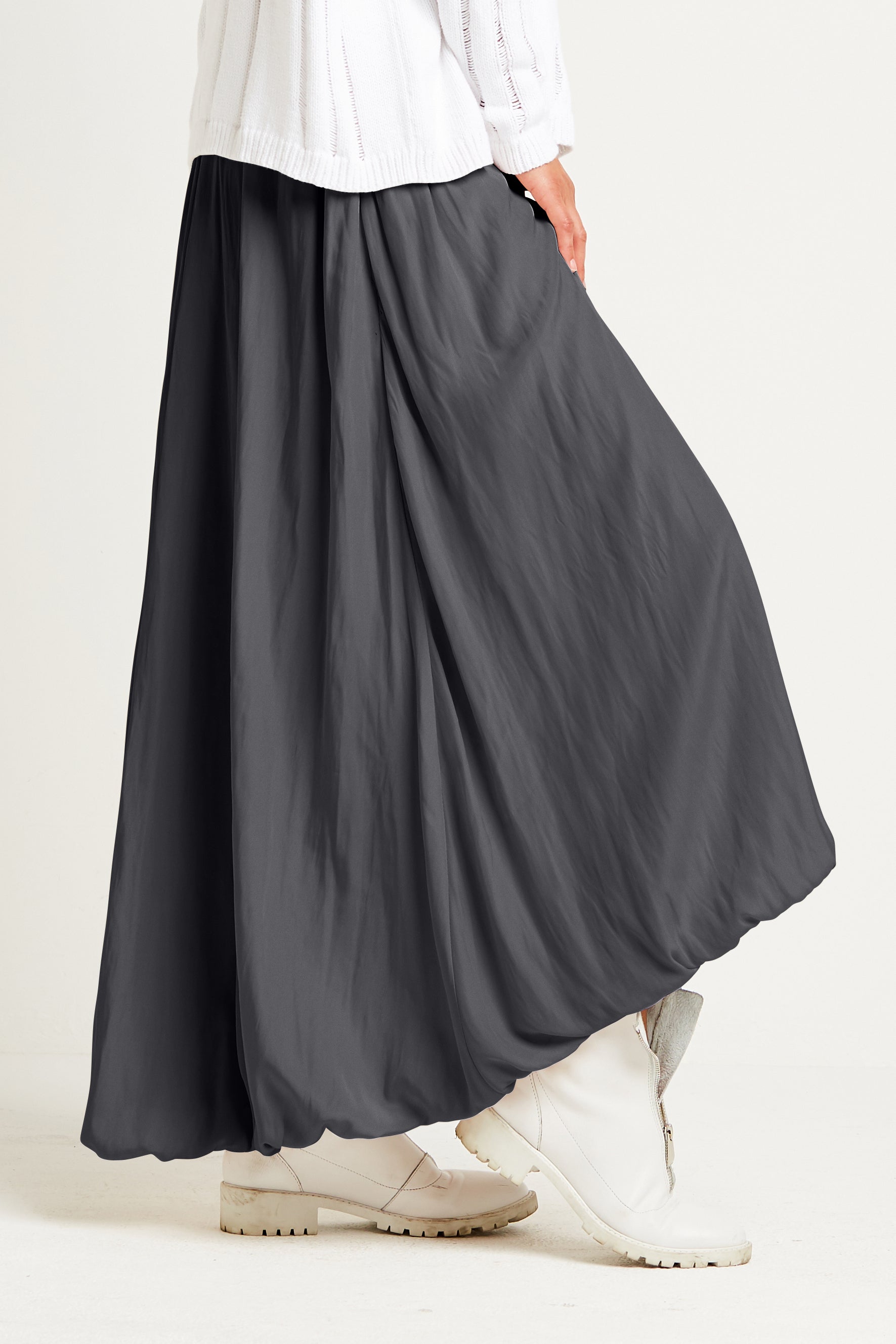 In a bubble all day, every day, every way!? Our washable silk skirt in a fluid blend fabric is quite versatile, as it gives tees and sweaters an elegant yet edgy slant.? Features a modern hi-lo hem and comfortable pull-on waistband.?